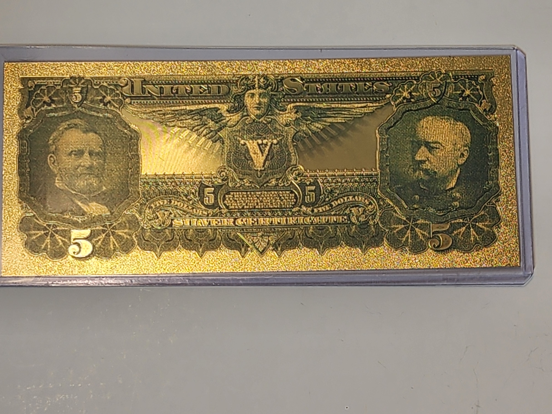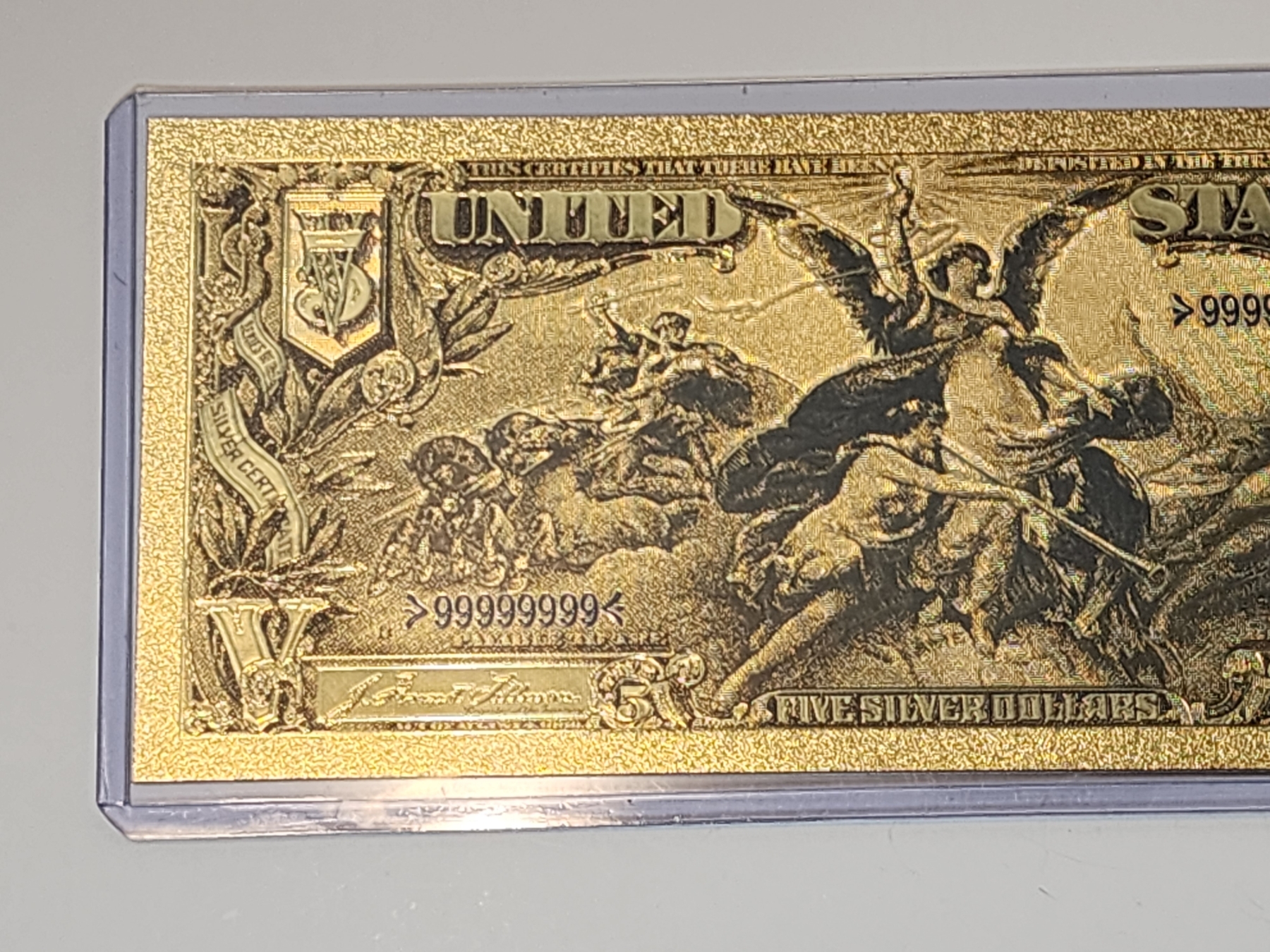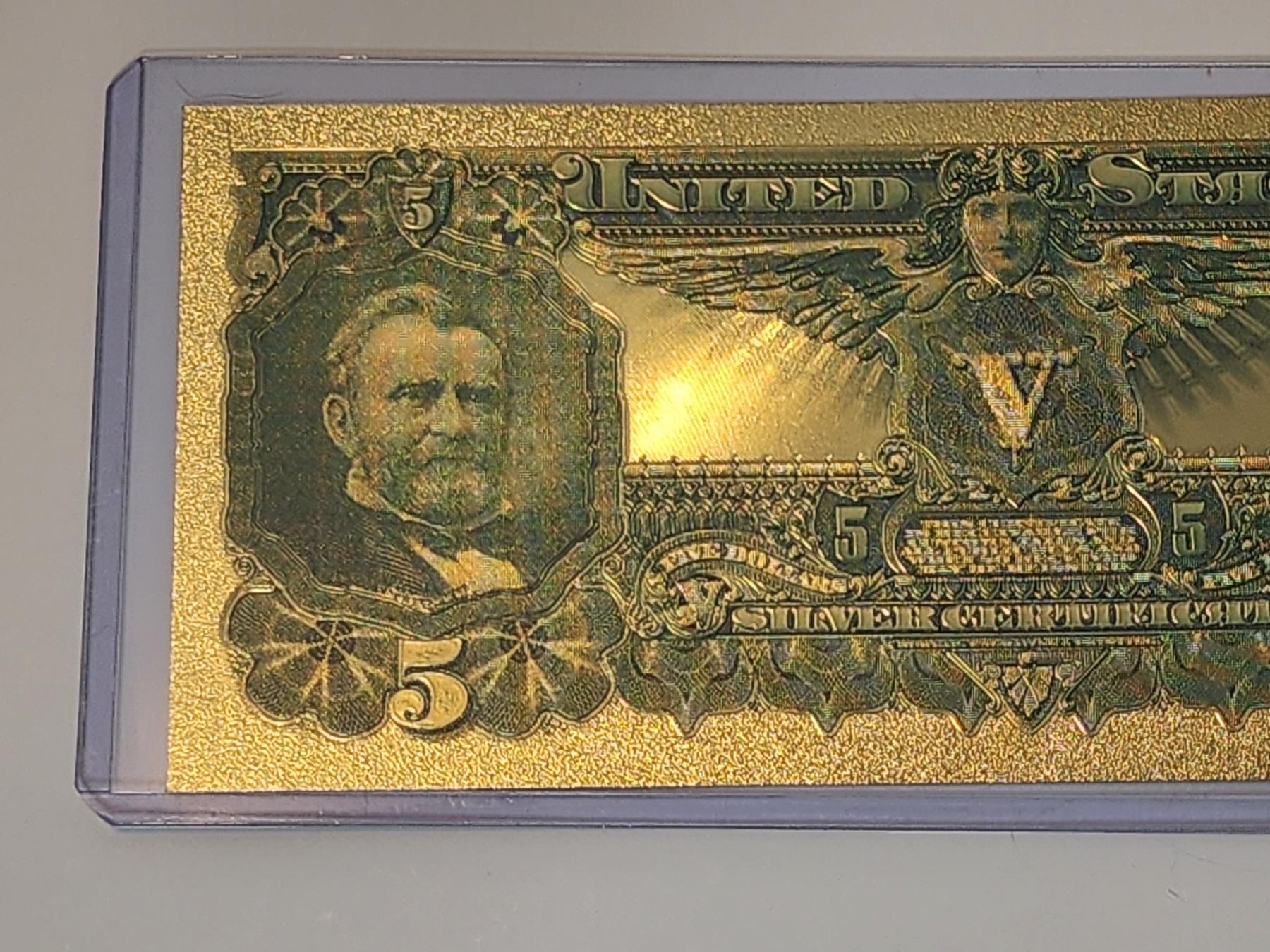 United States $5.00 Silver Certificate Gold Foil .99999999 - 24K Note In Protective Holder - Mint Condition