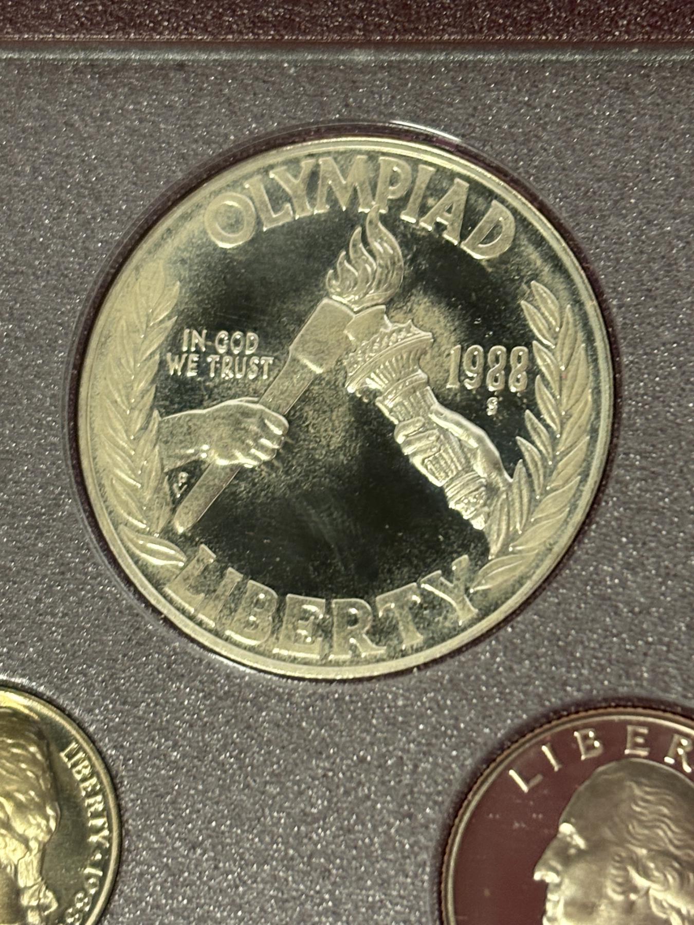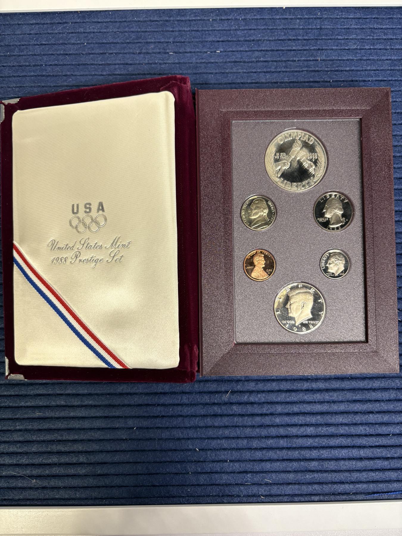 United States Mint 1988 Prestige Set - Includes 1988 Olympiad Liberty Olympics Silver Dollar - 1988 Kennedy Half Dollar - 1988 Quarter Dollar - Dime - Nickel & Penny