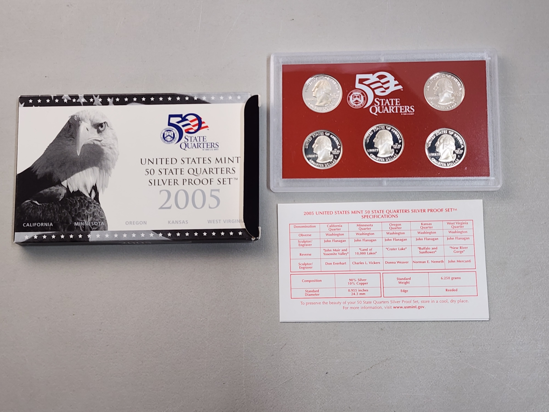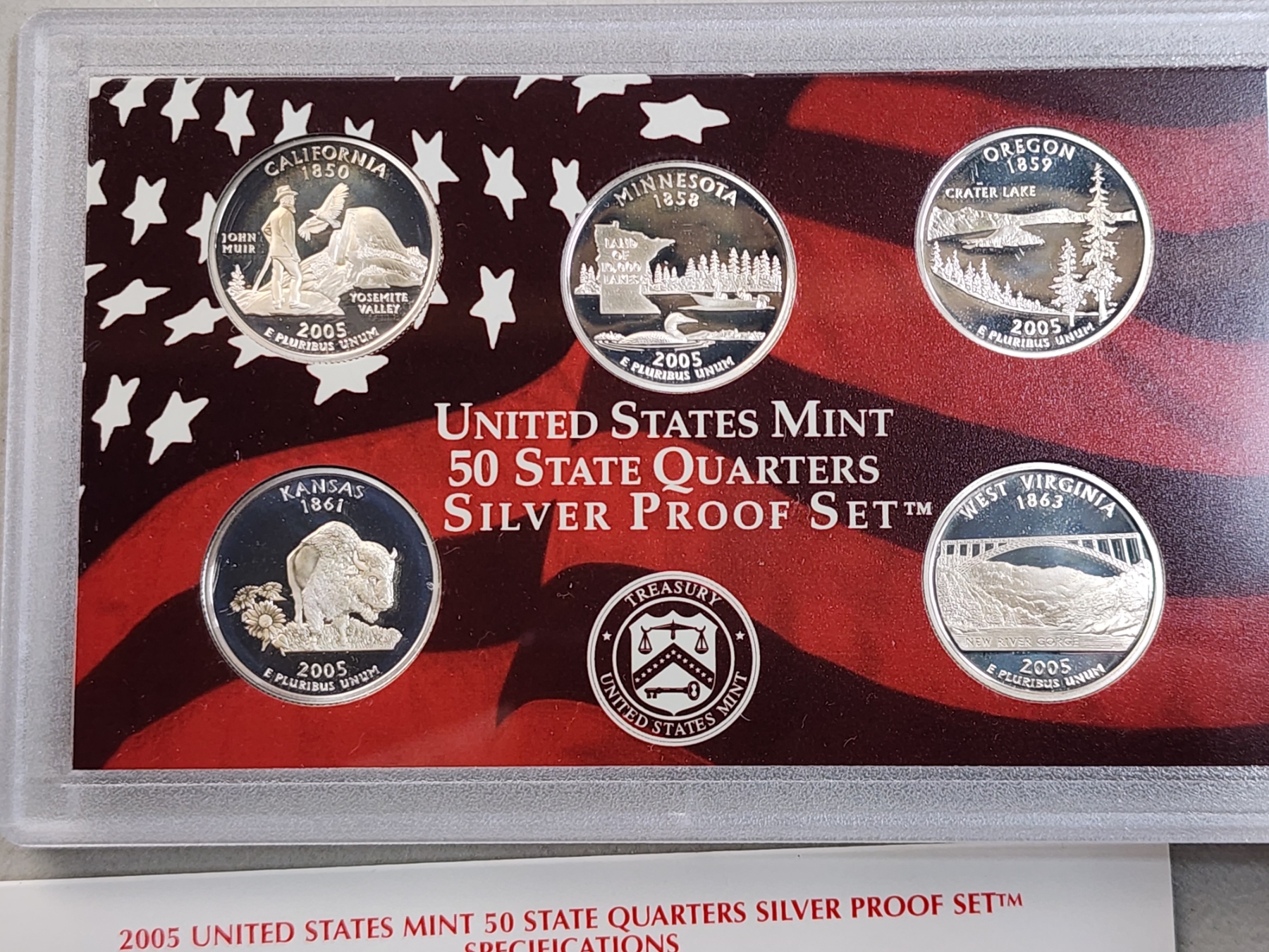 United States Mint 50 2005 State Quarters Silver Proof Set - Original Packaging and COA