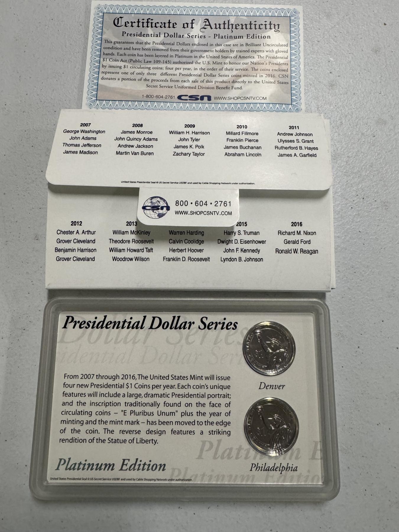 United States Presidential Platinum Dollar Collection - 7 Sets - Mint In The Box