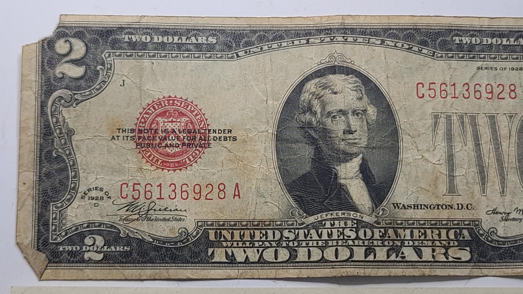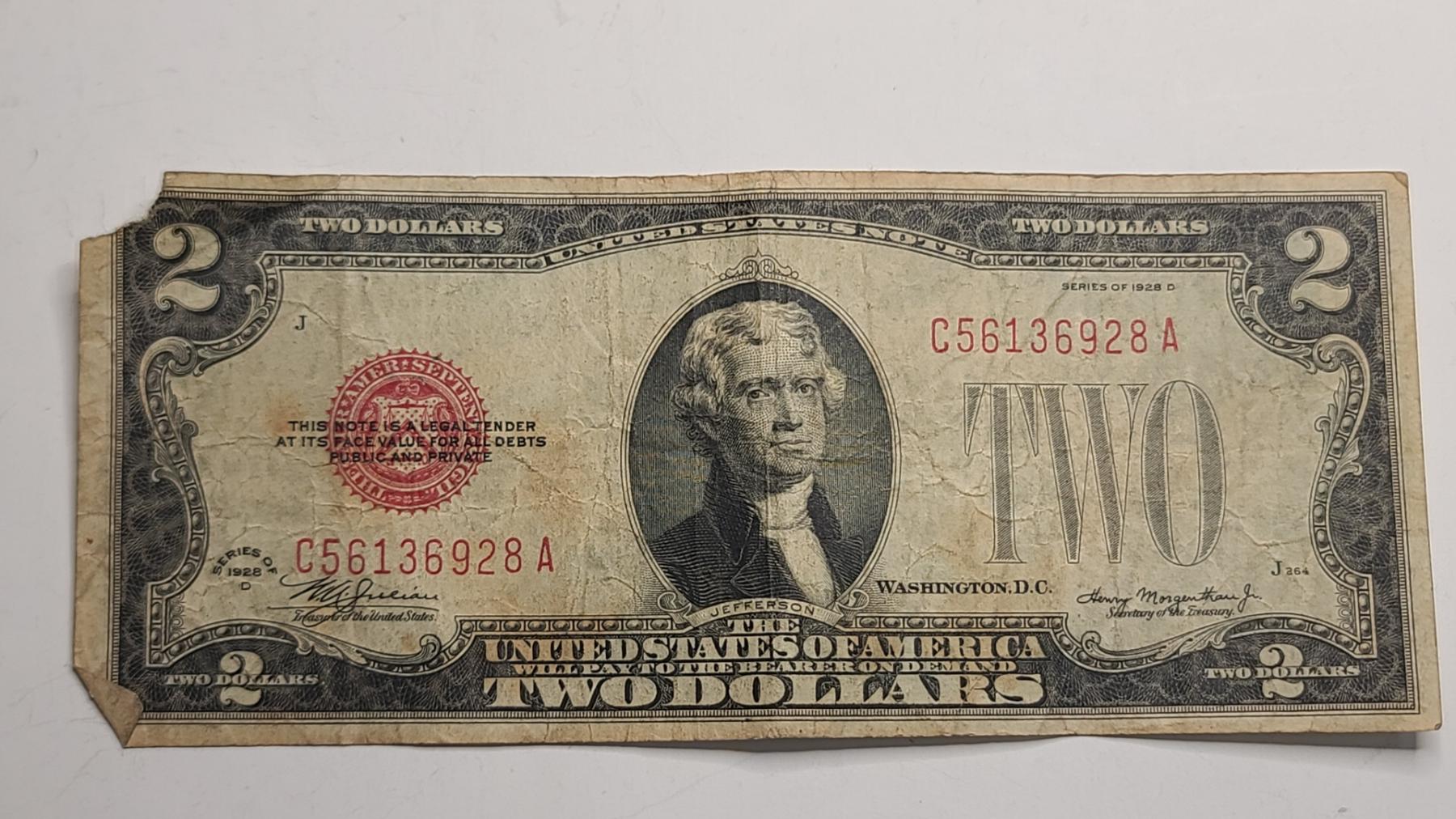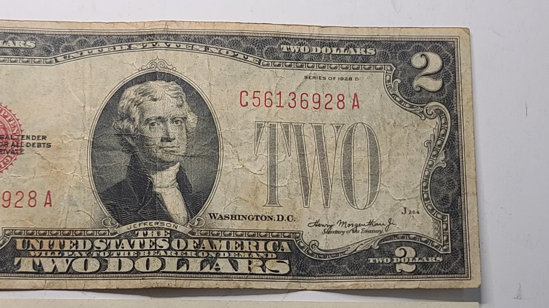 United States Series 1928D $2 Red Seal Bank Note With Julian And Morgenthau - Face Value: $2.00