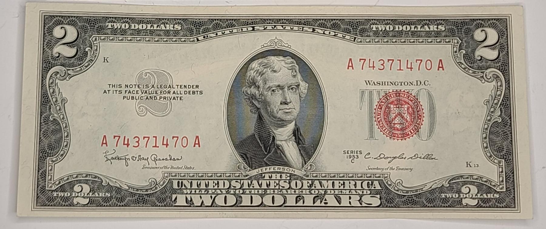 United States Series 1953C $2 Red Seal Bank Note With Granahan And Dillon - Face Value: $2.00