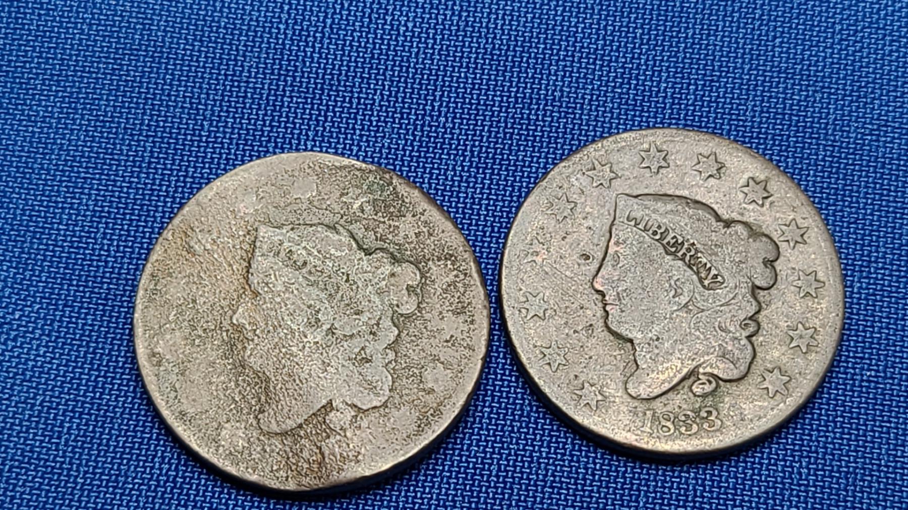 Unknown Year Coronet Head Large Cent & 1833 Coronet Head Large Cent