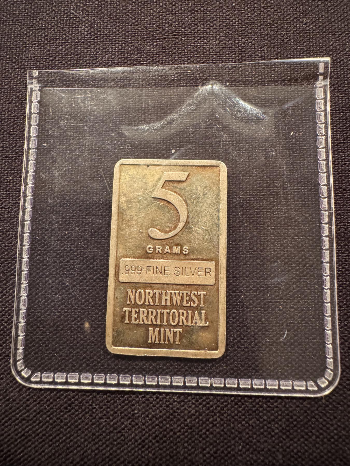 VINTAGE Rare Northwest Territorial Mint 5 Gram .999 Fine Pure Silver Bar - Mint Condition