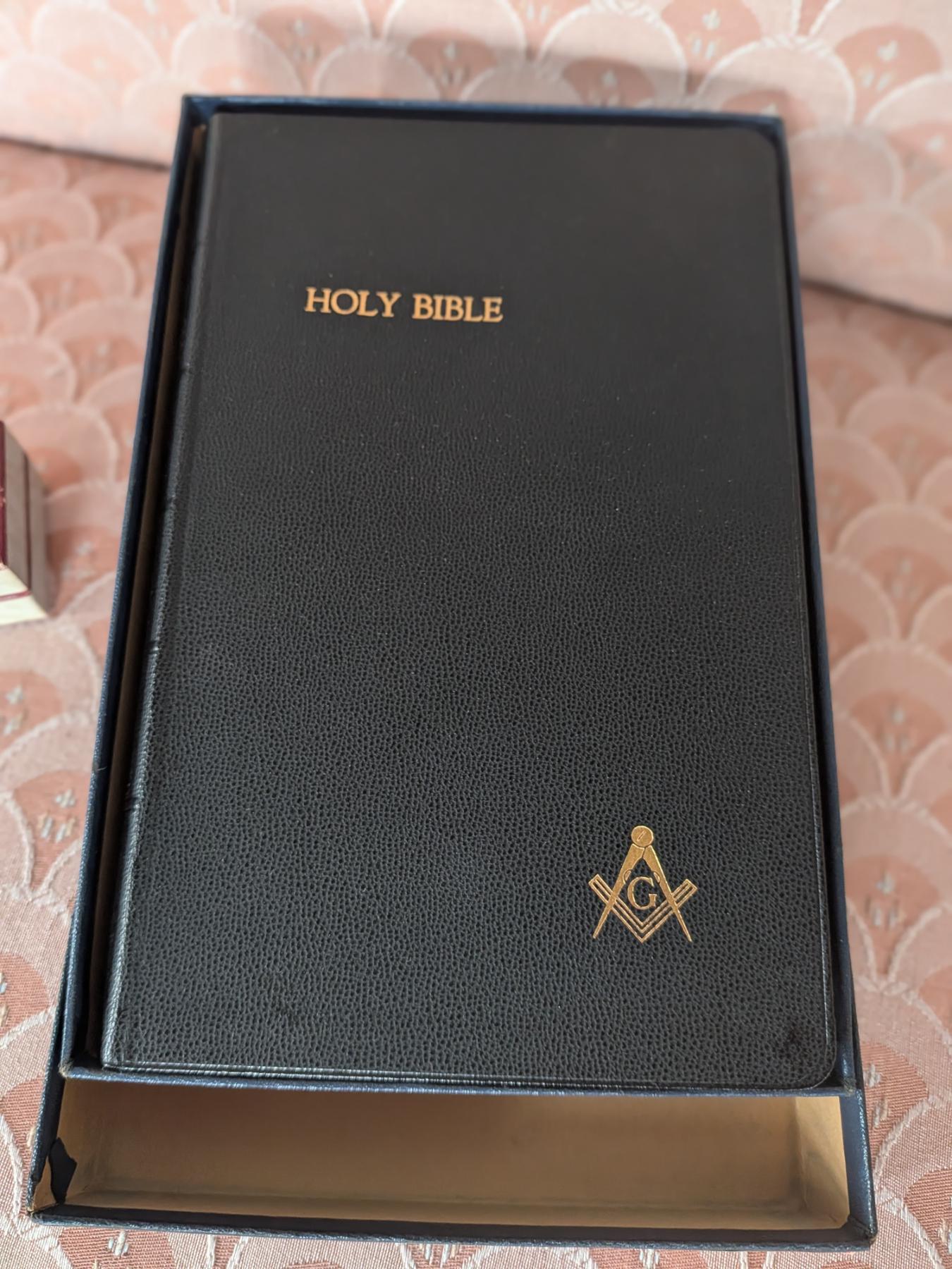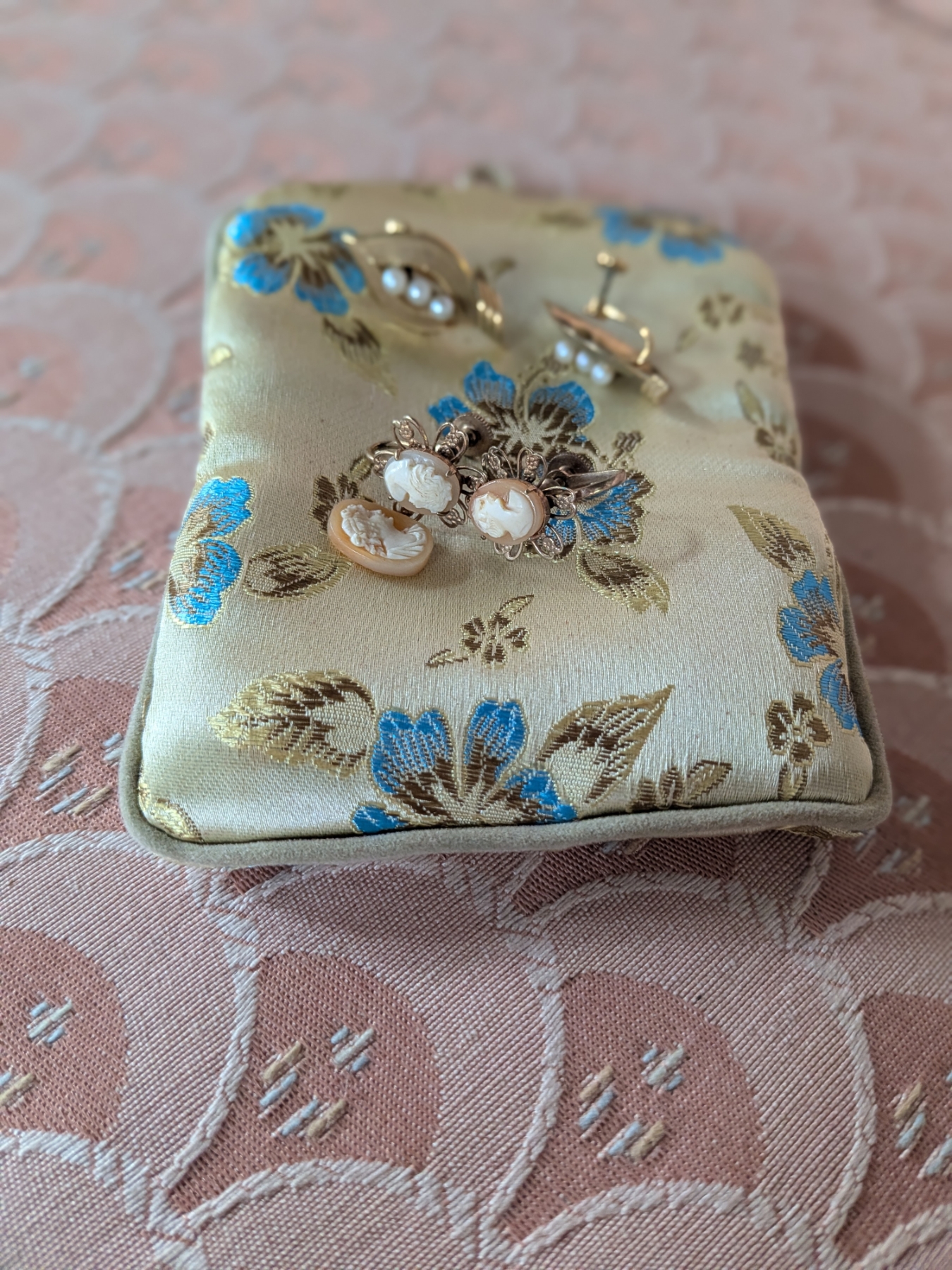 Very Nice Boxed Black Leather Bible, Unique Vintage Medicine Box From The 50's, & 2 Pair Of Extraordinary Vintage Clip On Earrings W Satin Jewelry Pouch
