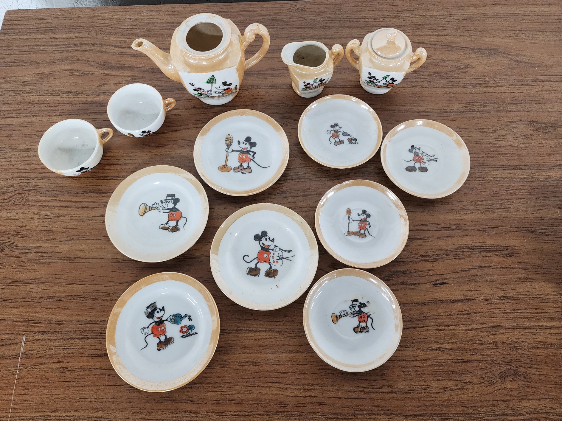 Vintage 1930's Walt Disney Mickey & Minnie Porcelain Child's Tea Set - Made in Japan