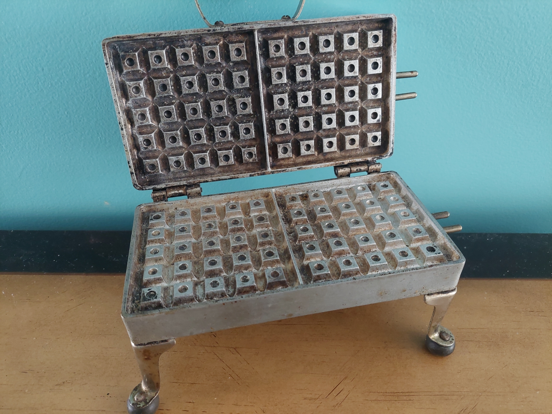Vintage 1950s Stainless Steel Electric Waffle Iron - See Pics