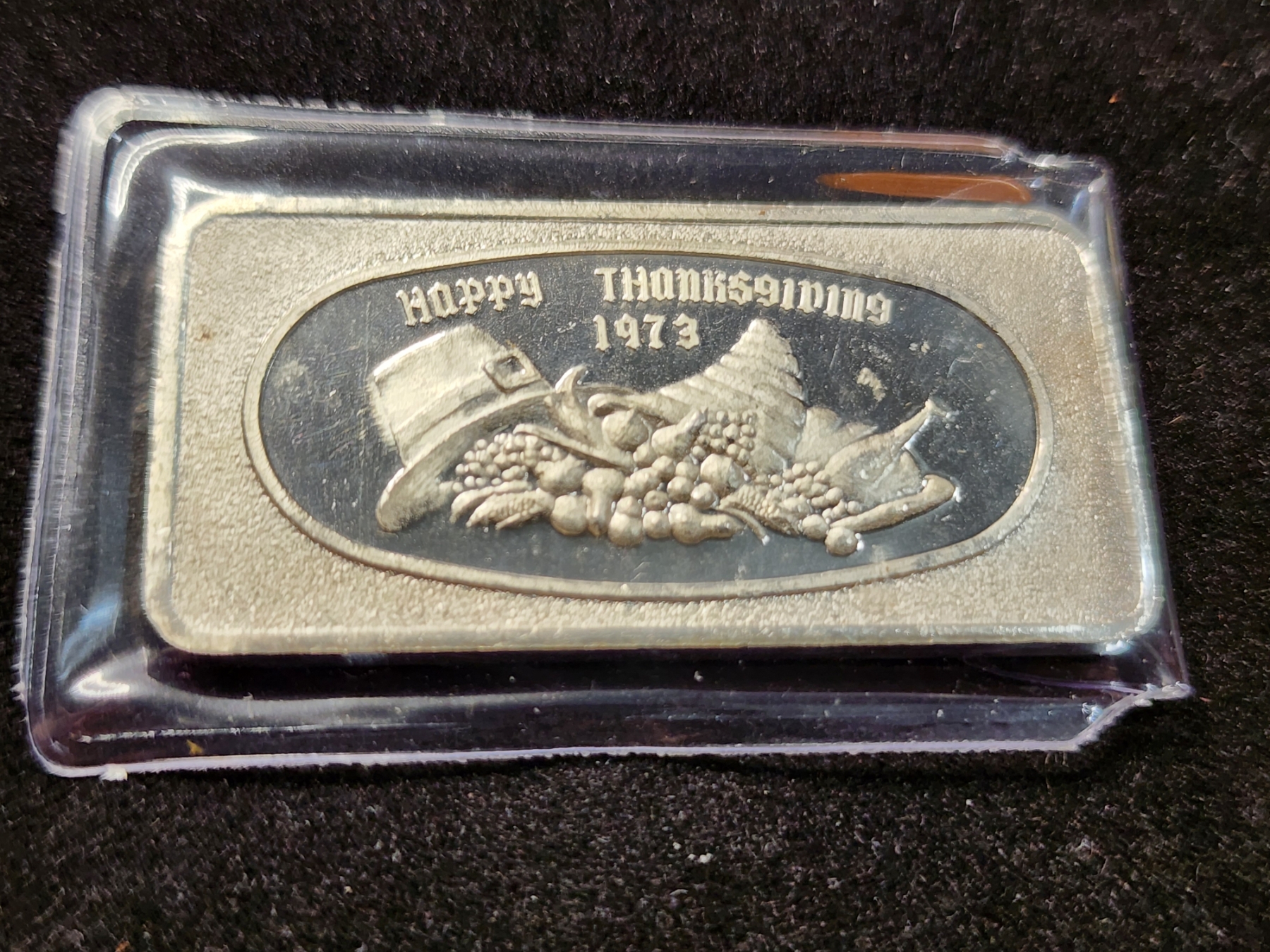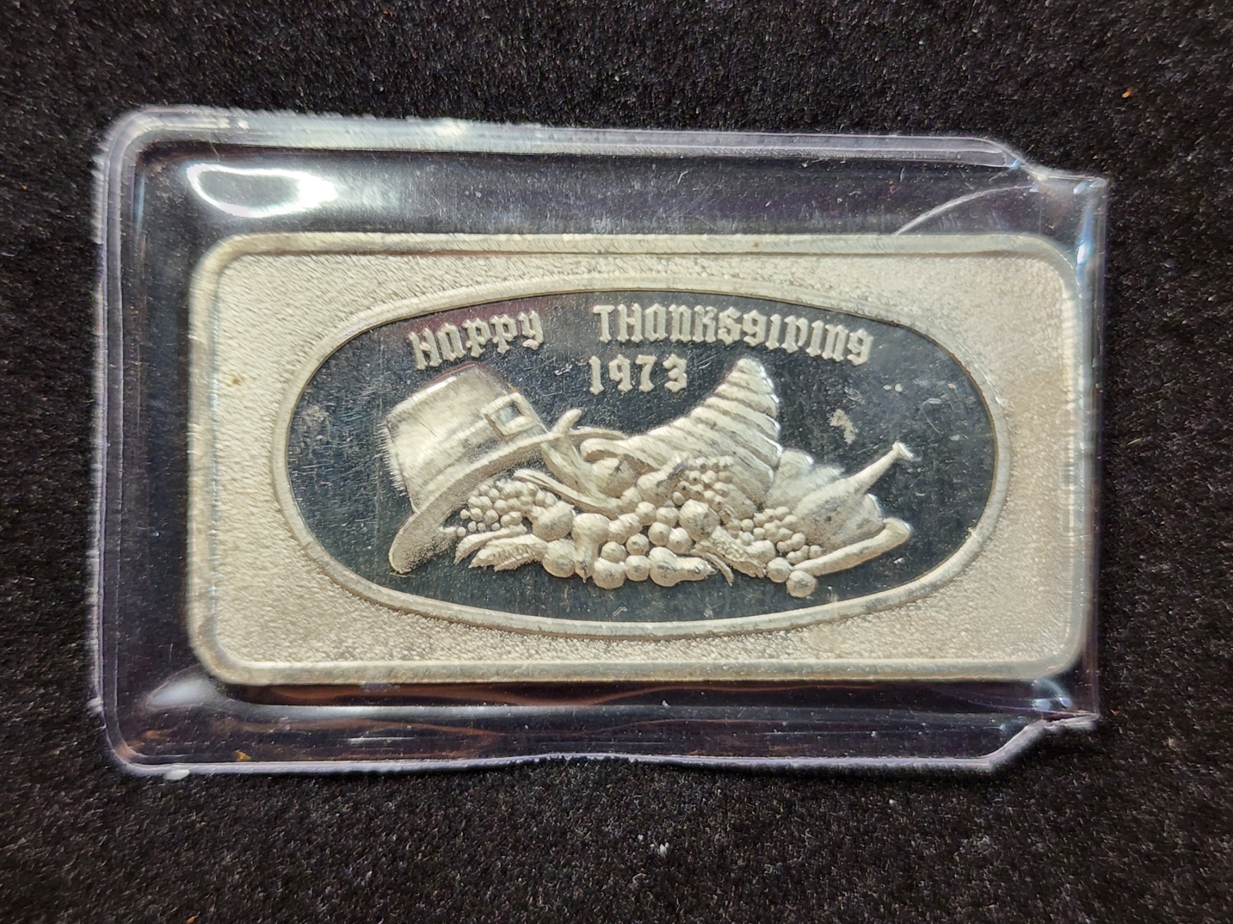 Vintage 1973 Happy Thanksgiving Great Lakes Mint 1 Troy Ounce .999 Fine Silver Bar