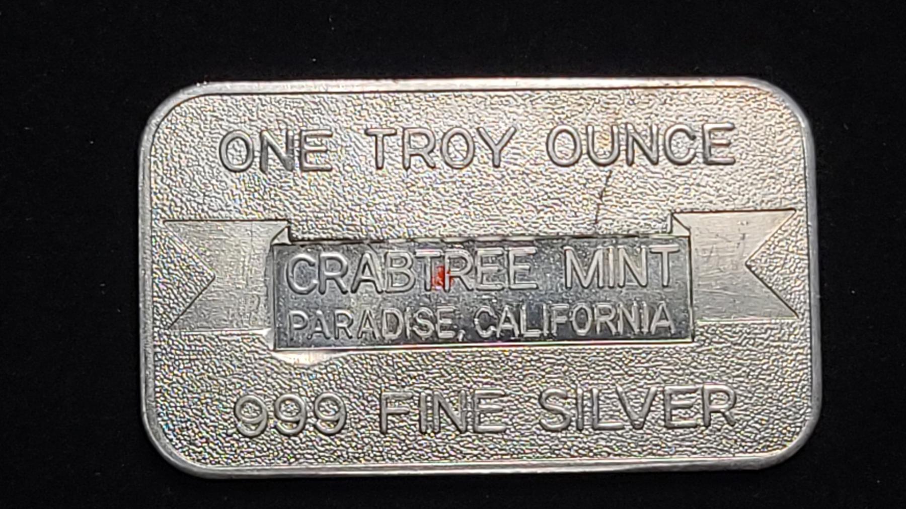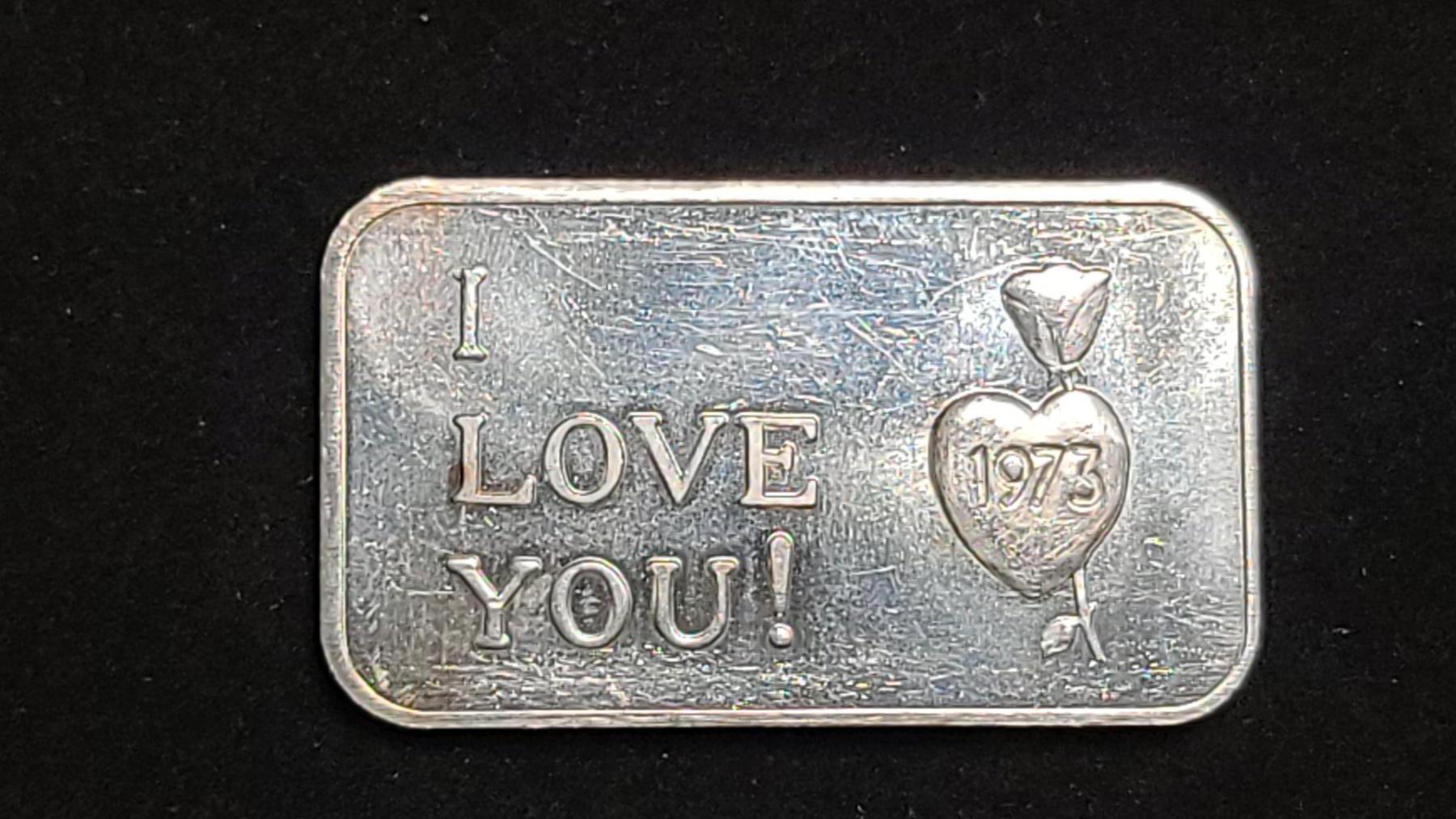 Vintage 1973 "I Love You" 1 Troy Ounce .999 Fine Silver Art Bar From The Crabtree Mint