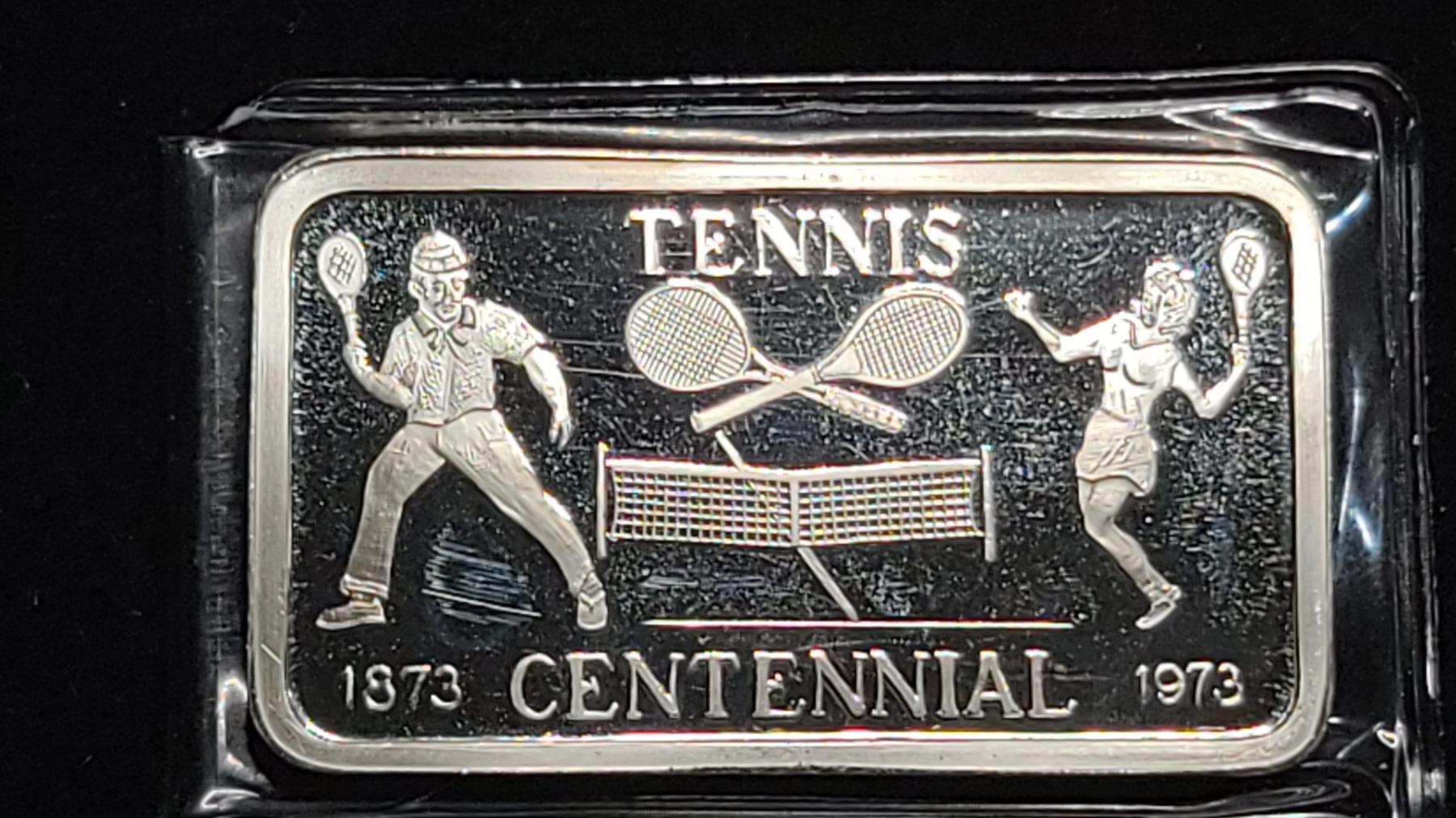 Vintage 1973 J.S Love & Associates Co. Tennis Centennial 1 oz .999 Fine Silver Art Bar -10,000 Minted