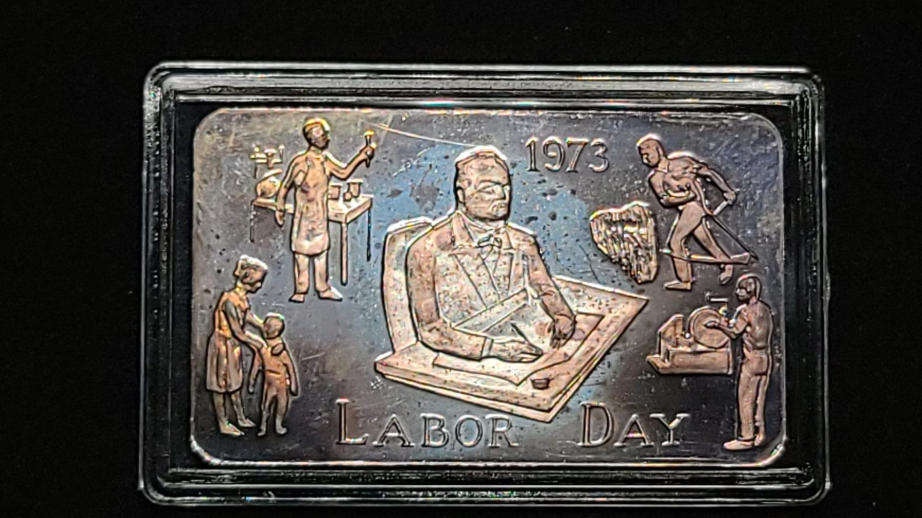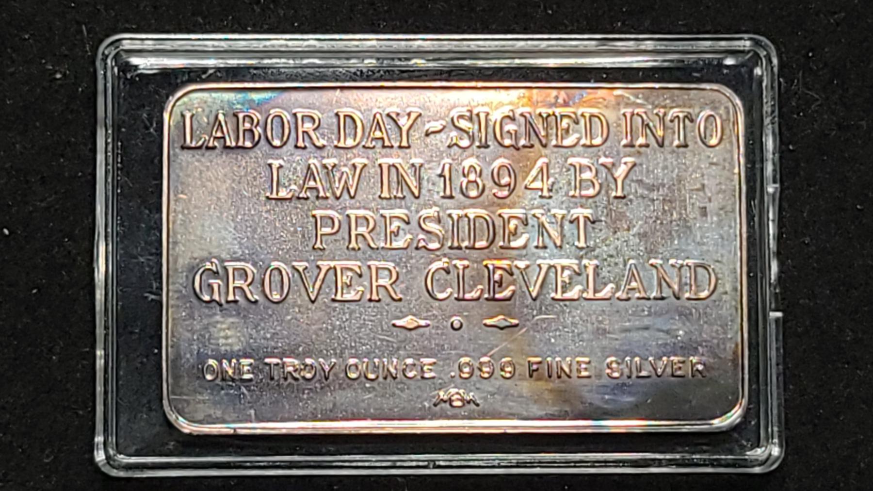 Vintage 1973 Labor Day President Cleveland 1 Troy Ounce .999 Fine Silver Bar - Nicely Toned
