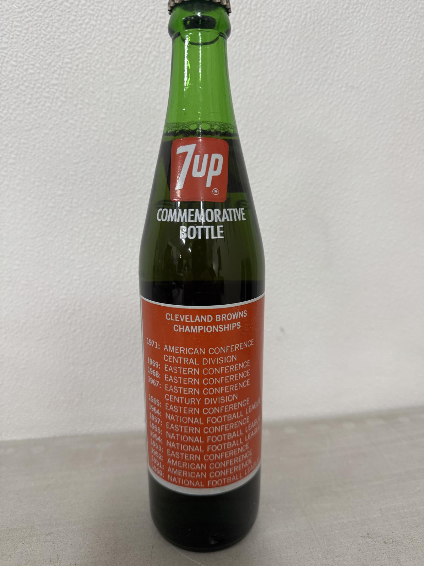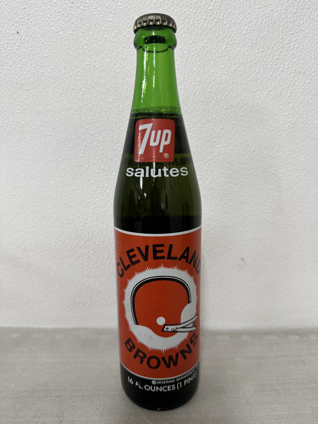 Vintage 1974 Cleveland Browns 7UP Full Bottle - Excellent Condition