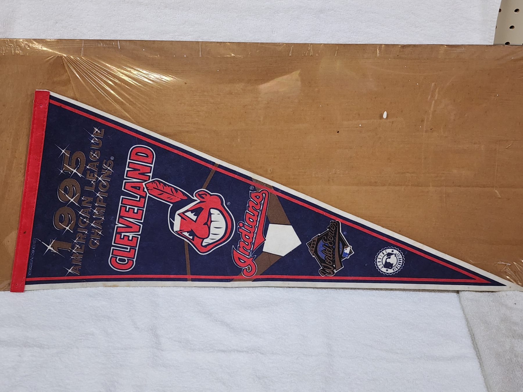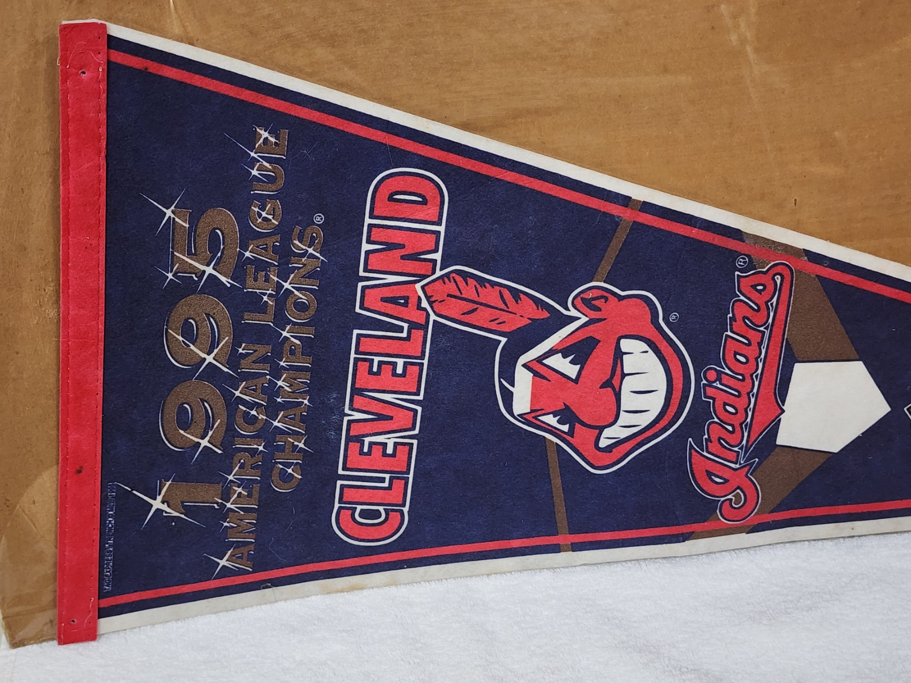 Vintage 1995 American League Champions Cleveland Indians Pennant Banner ~ About 30" Long