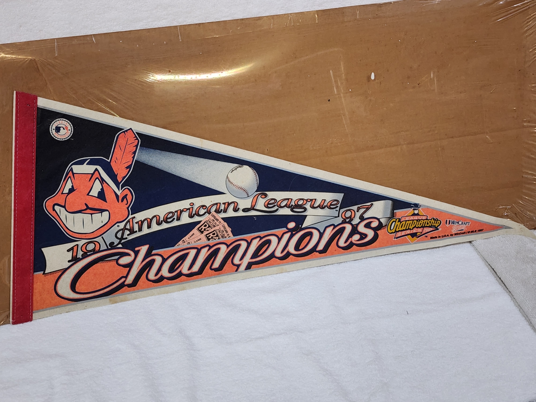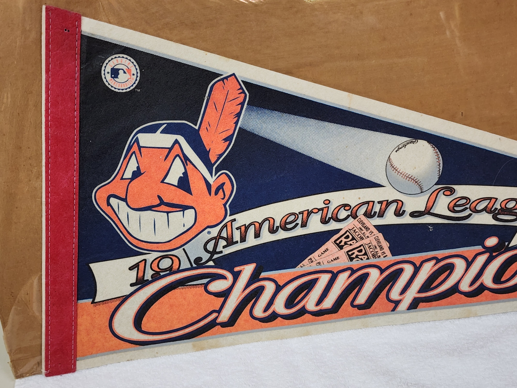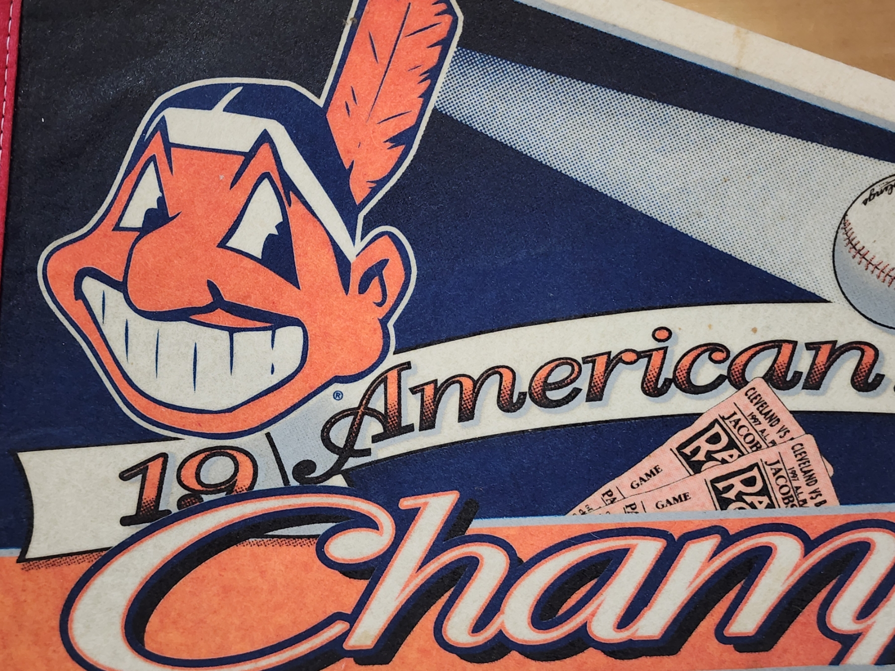 Vintage 1997 American League Champions Cleveland Indians Pennant Banner ~ About 30" Long ~ Officially Licensed!