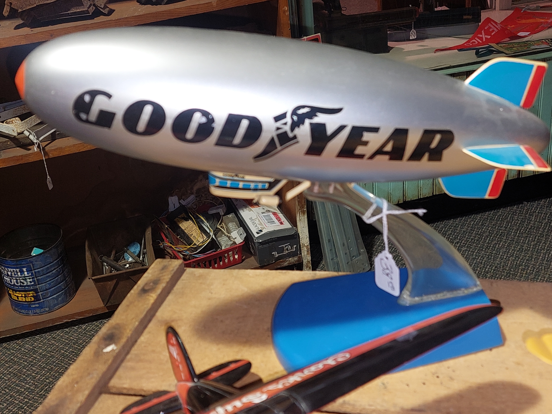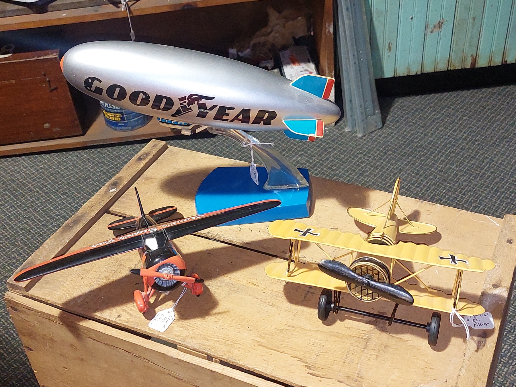 Vintage 3 Pcs Aircraft Collection - Metal Goodyear Blimp & 2 Metal Aeroplanes - As Shown