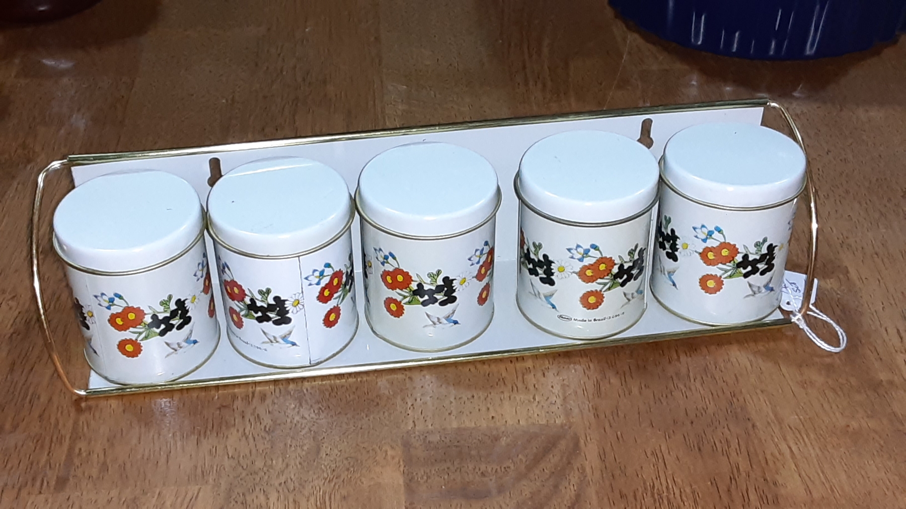 Vintage 5 Pc Tin Spice Set With Rack - See Pics