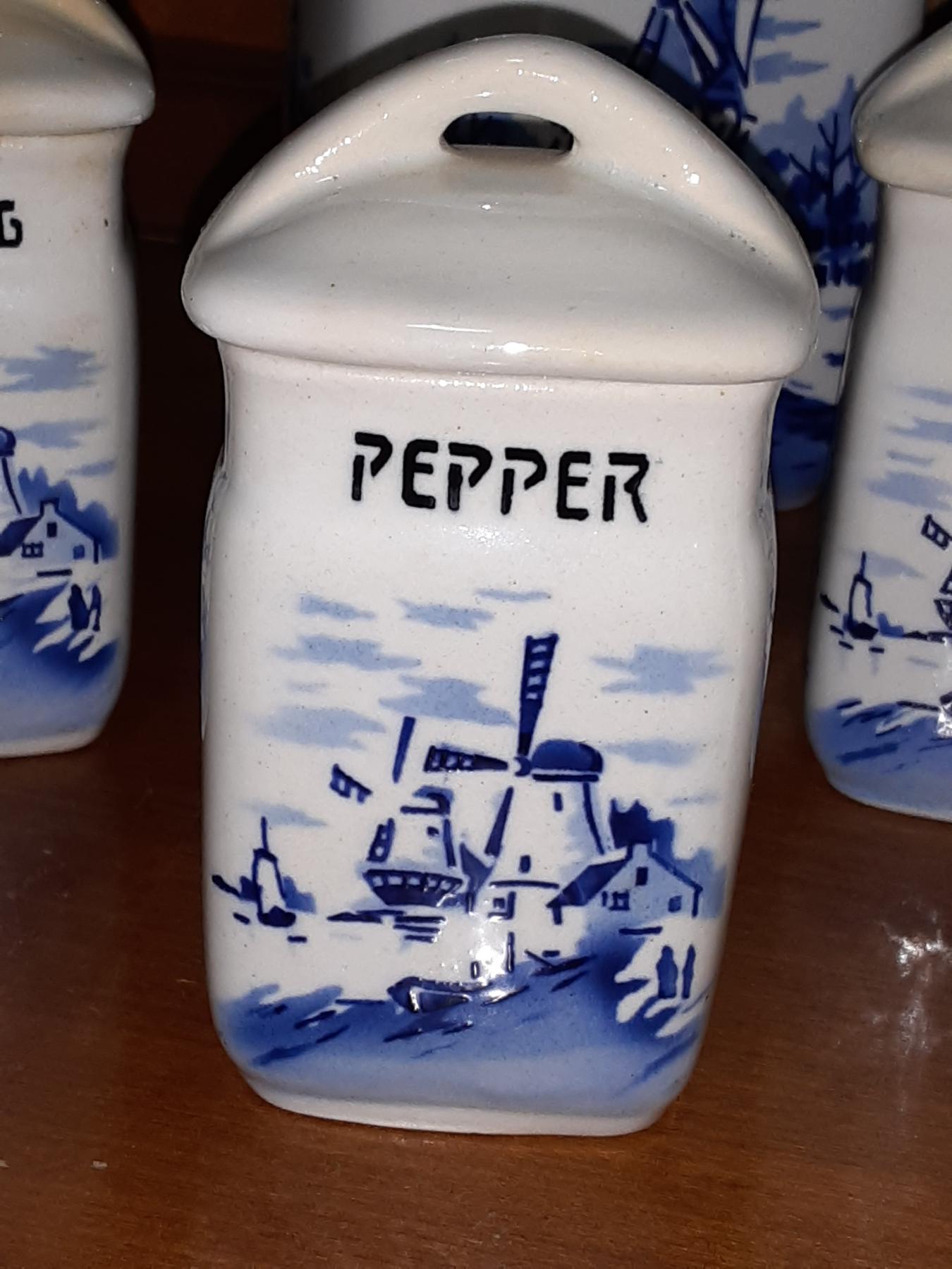 Vintage 7 Pc Delft Themed Porcelain Spice Set - Made In Czechoslovakia Before The Split - Superb Condition