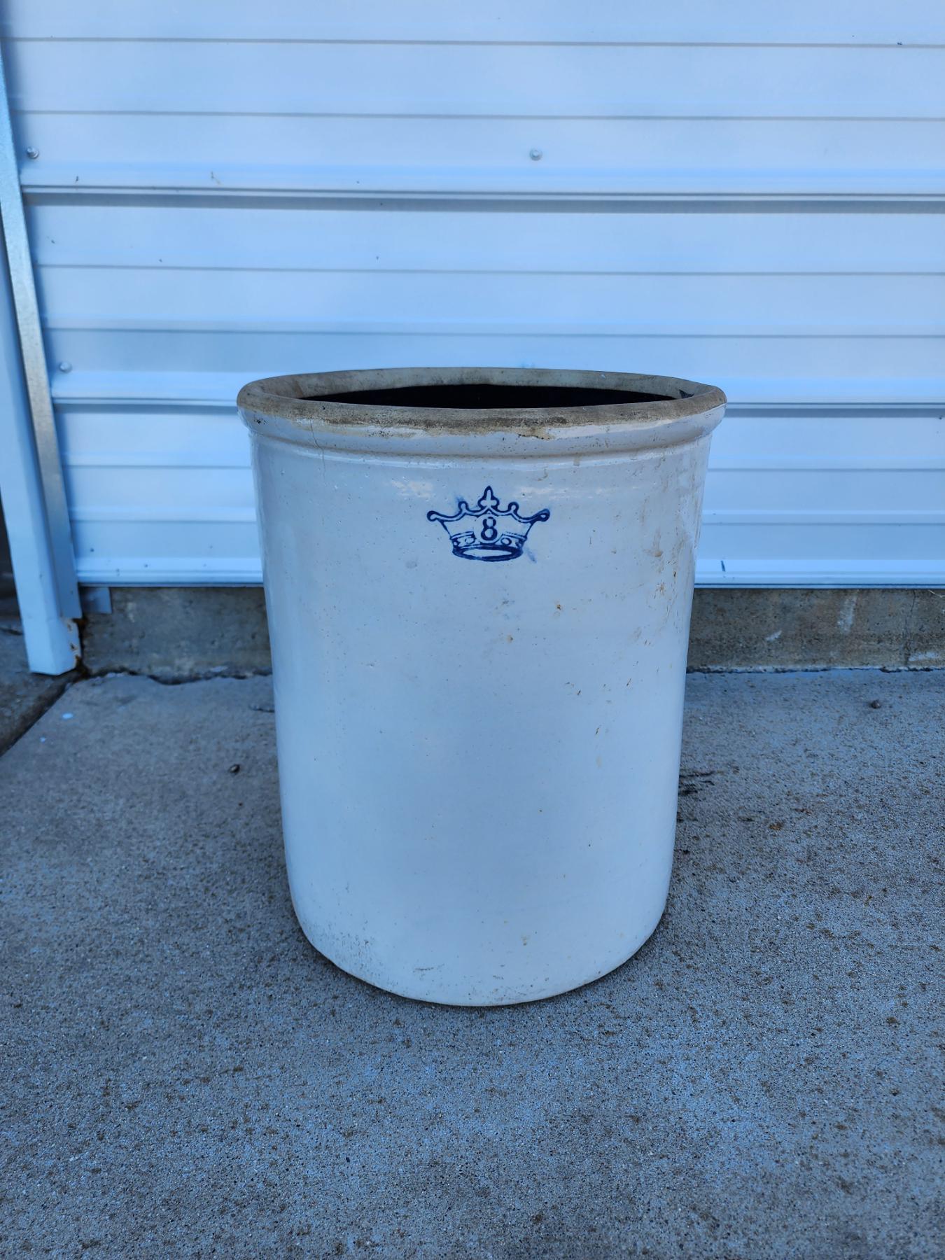 Vintage 8-Gallon Robinson Ransbottom Stoneware Crock