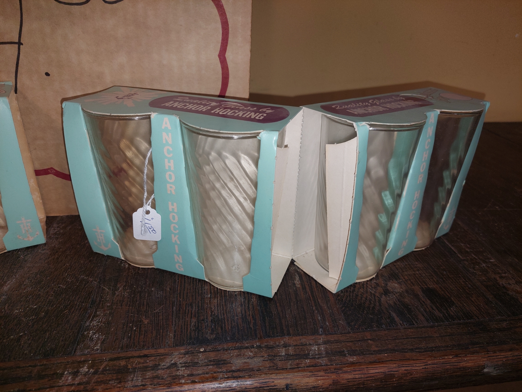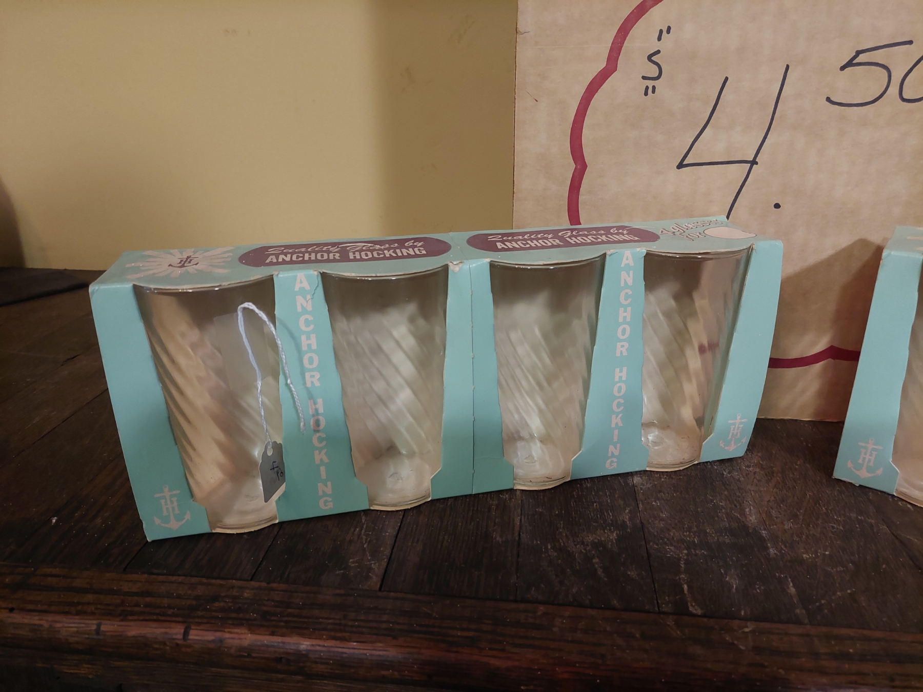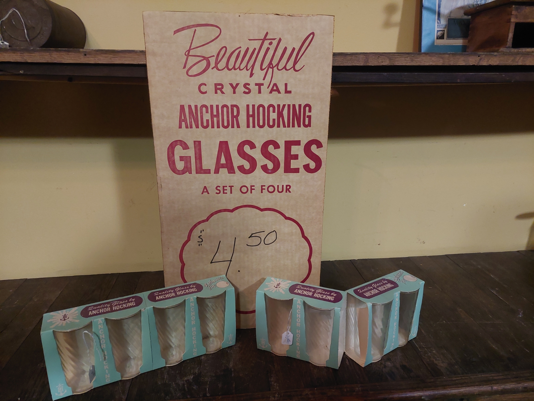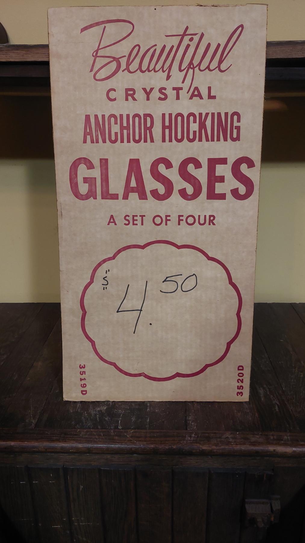 Vintage Anchor Hocking Glassware 23 x12 Store Poster/Display & Glass Sets As Shown - See Pics