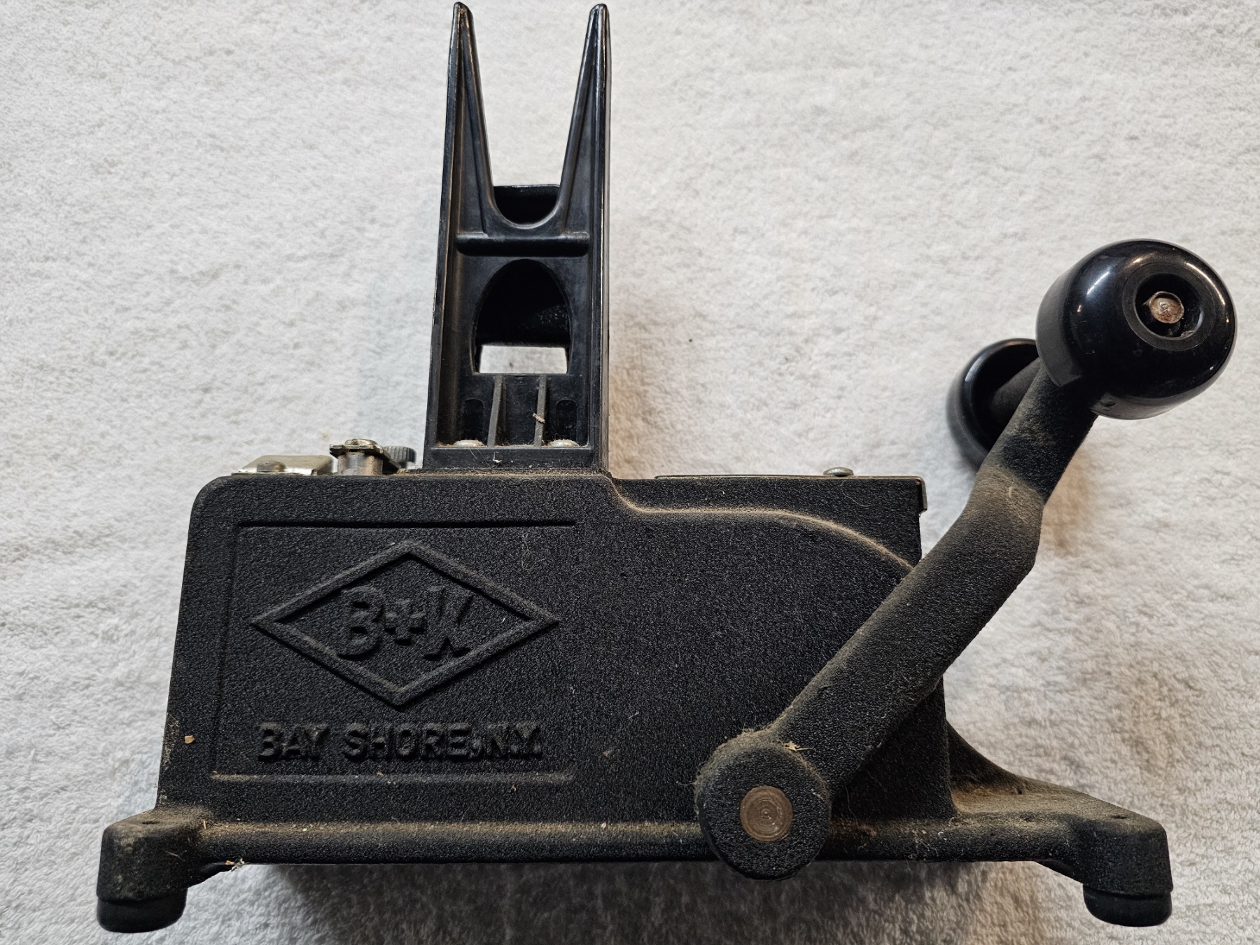 Vintage B&K Floral Stemming Machine/Wreath Wrapper Tool - Heavy-duty cast iron body with a lever-operated clamping mechanism - Used by florists to crimp metal picks onto flower stems for secure placement in arrangements. A RARE FIND!!! PLACE A BID AND MAKE IT YOURS TODAY!!!