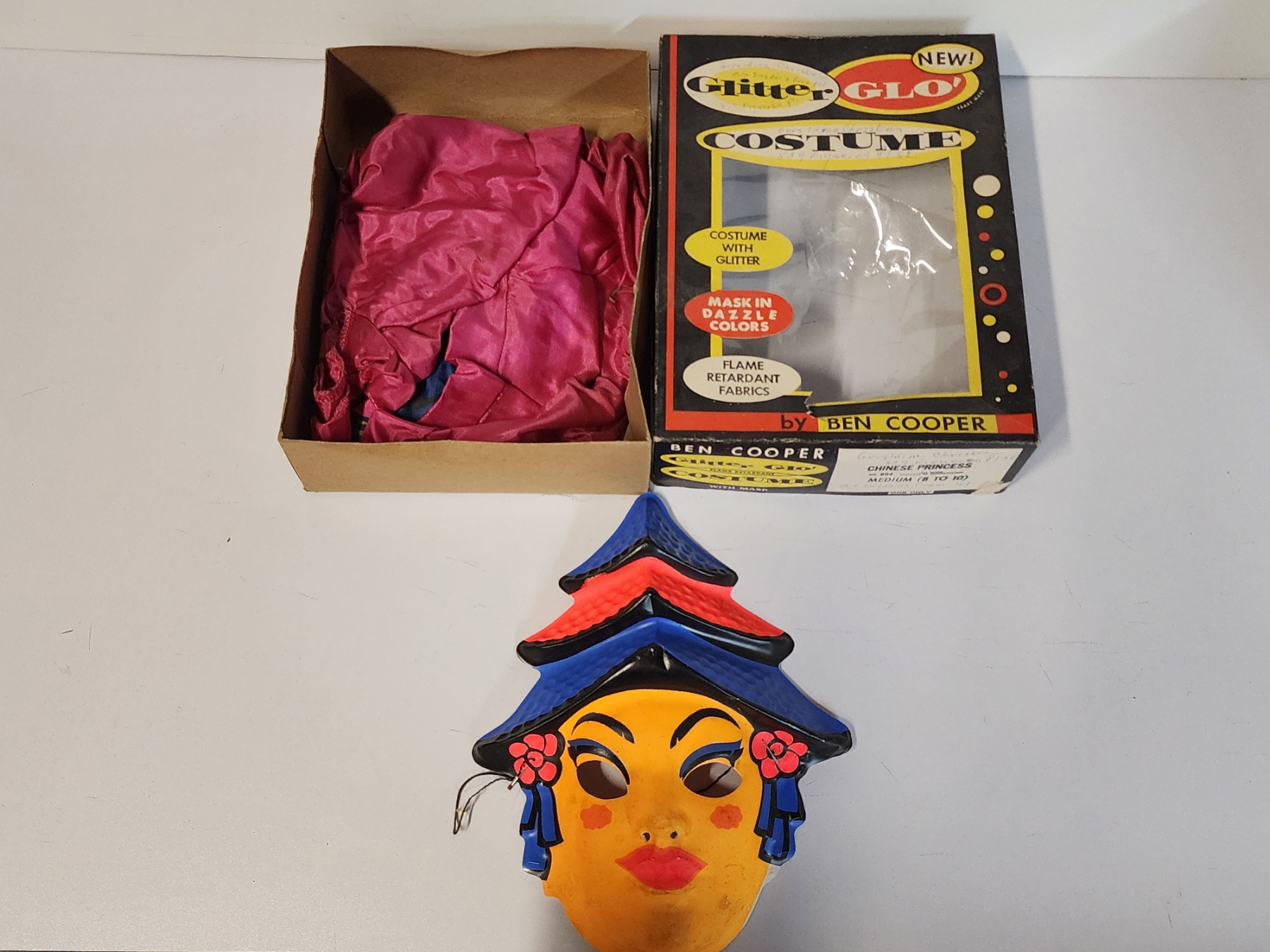 Vintage Ben Cooper Glitter Glo Halloween Costume and Mask:Chinese Princess