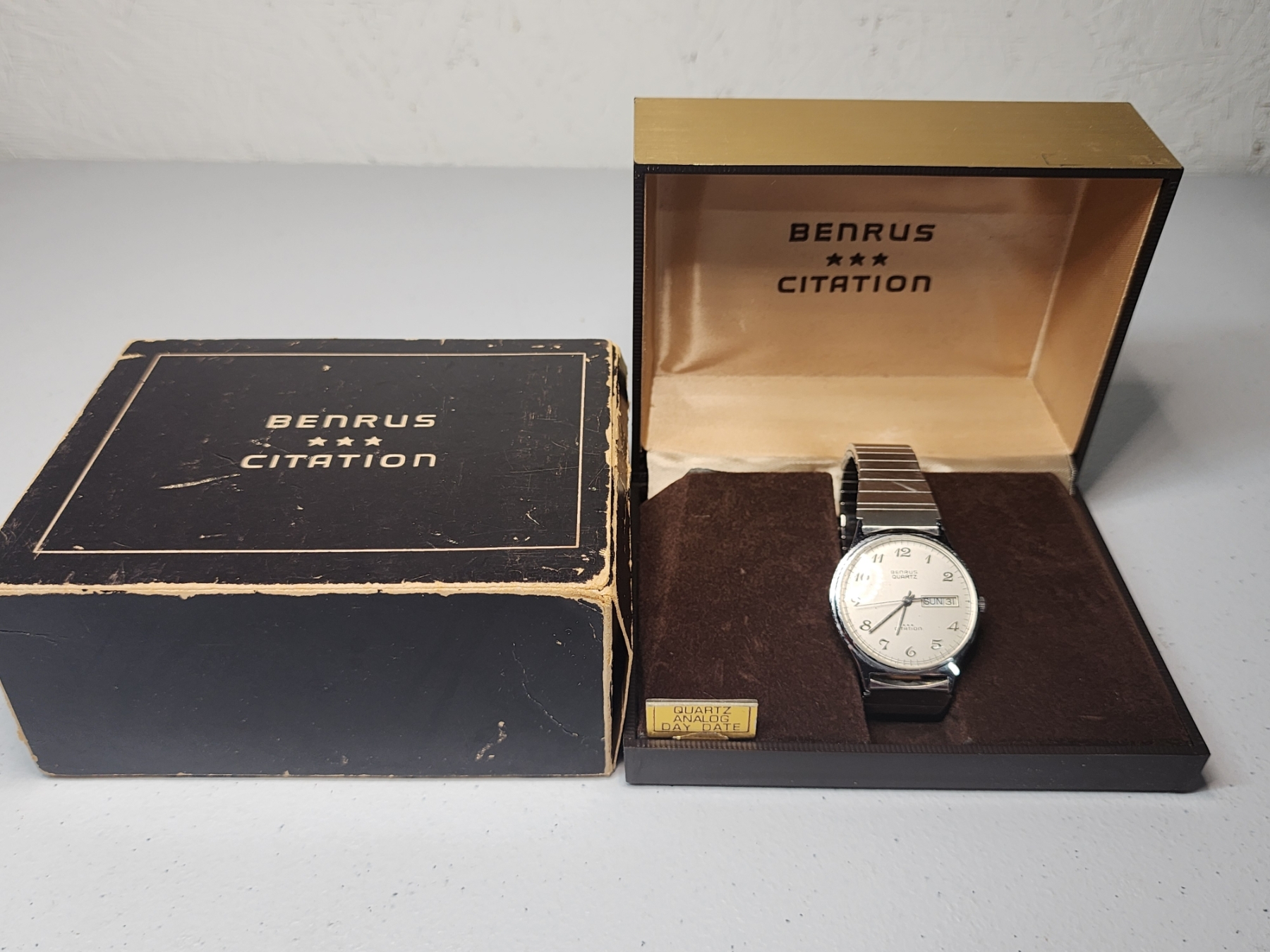 Vintage Benrus Citation Quartz Silver-Tone Watch with Original Box