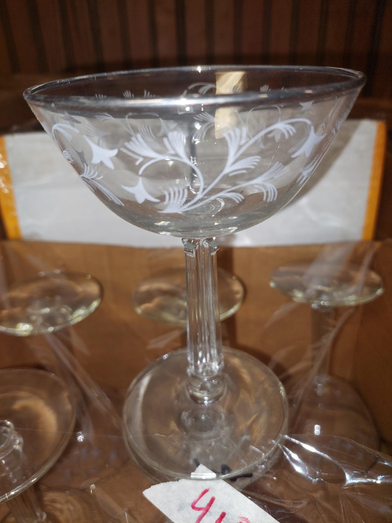 Vintage Box Lot - Etched Crystal Goblets - Nice Lot
