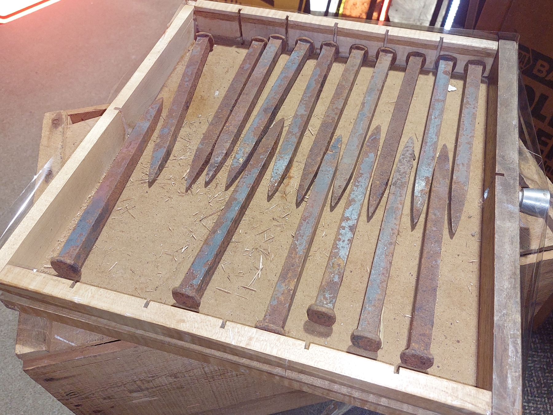 Vintage Box of Large 10" Timber Spikes (16 Pcs ) In Box - See Pics