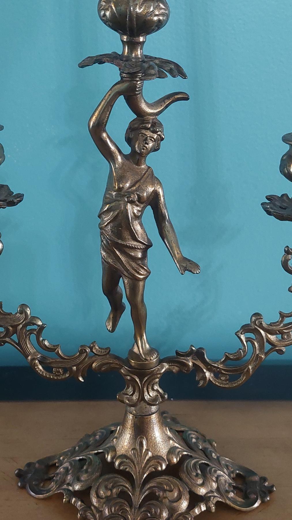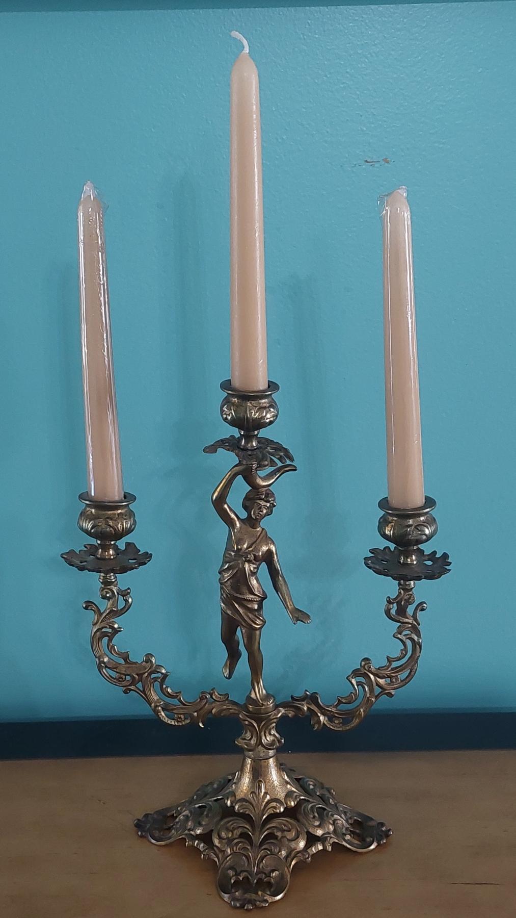 Vintage Brass / Bronze Candelabra 11" Tall - Candles Included