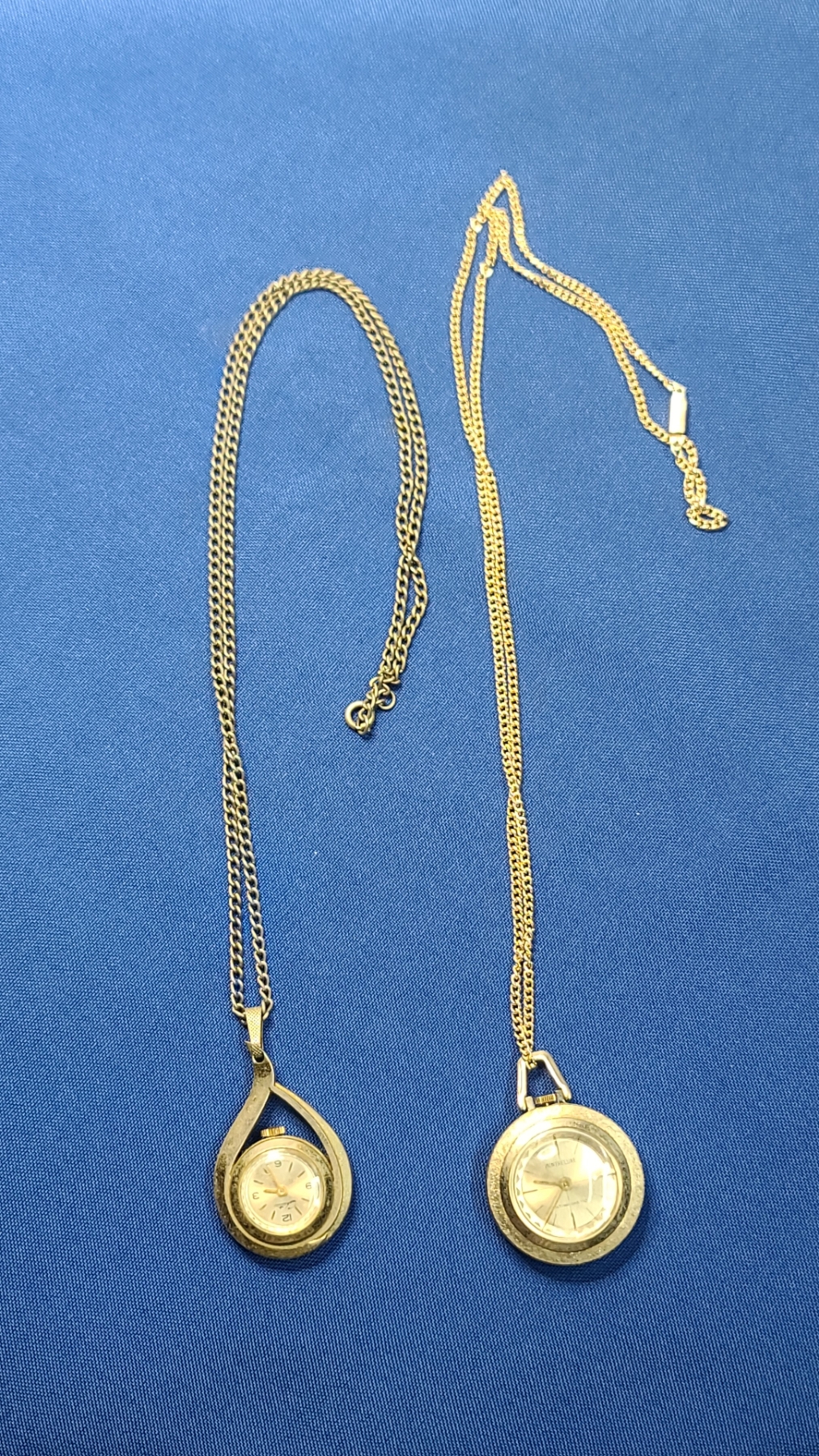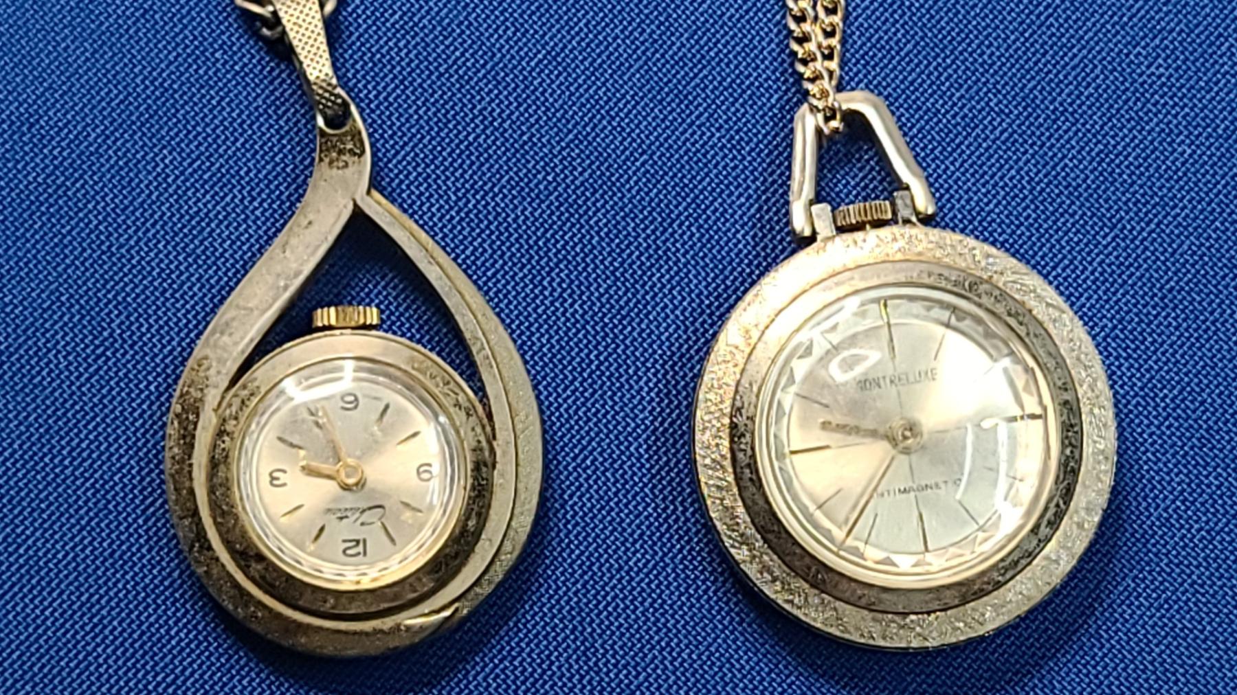 Vintage Chateau Swiss Made Gold-Tone Tear Drop Watch Necklace & Montreluxe Antimagnetic Watch Necklace