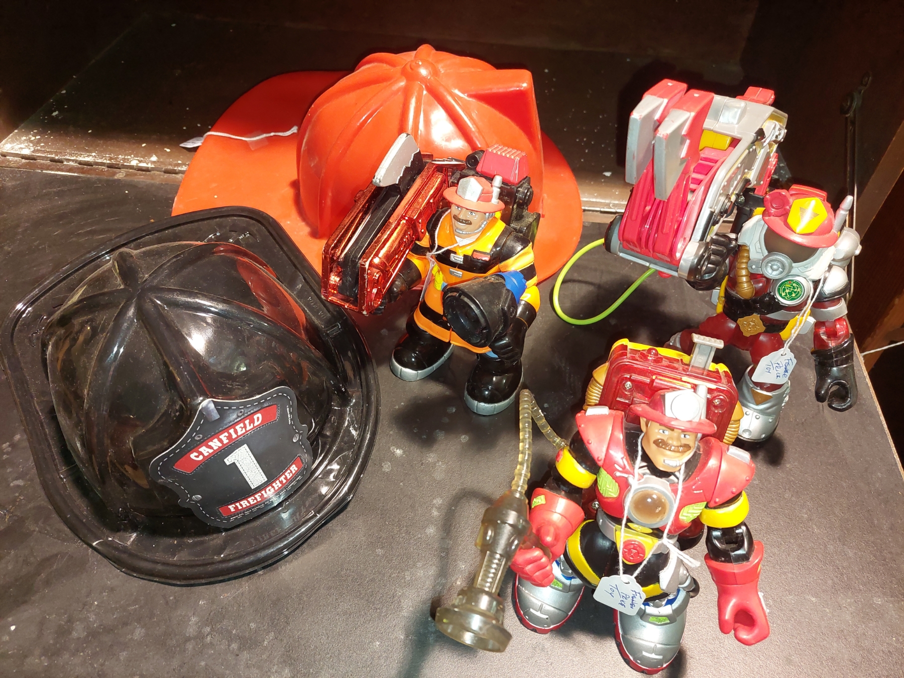 Vintage Child Fireman Toys Including Helmet - See Pics