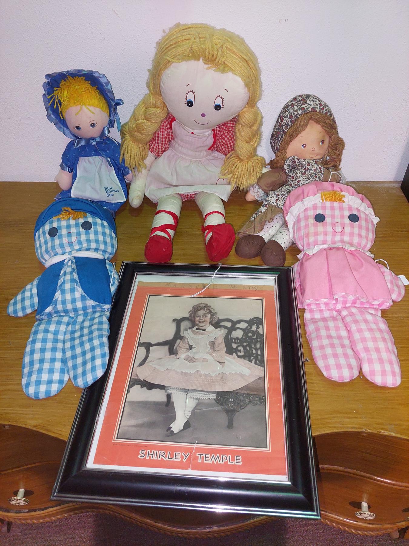 Vintage Cloth Doll Group With Original Photo Of shirley Temple - See Pics