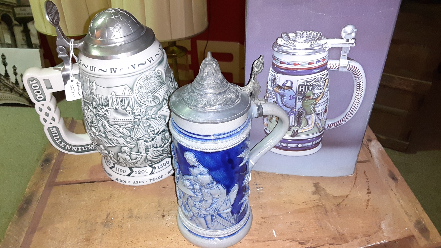 Vintage Collector Beer Steins - One From Germany All App 8" Tall - See Pics
