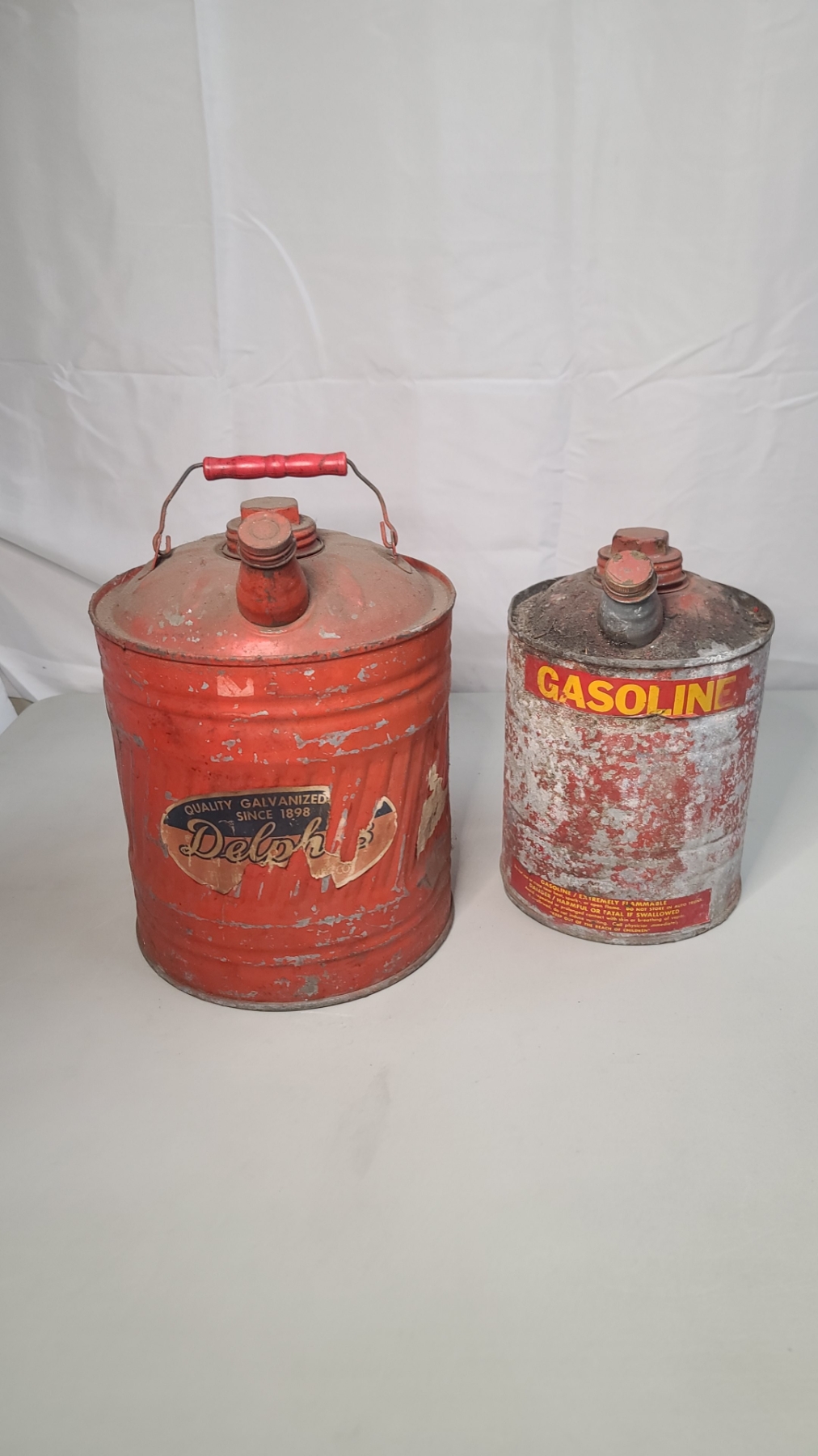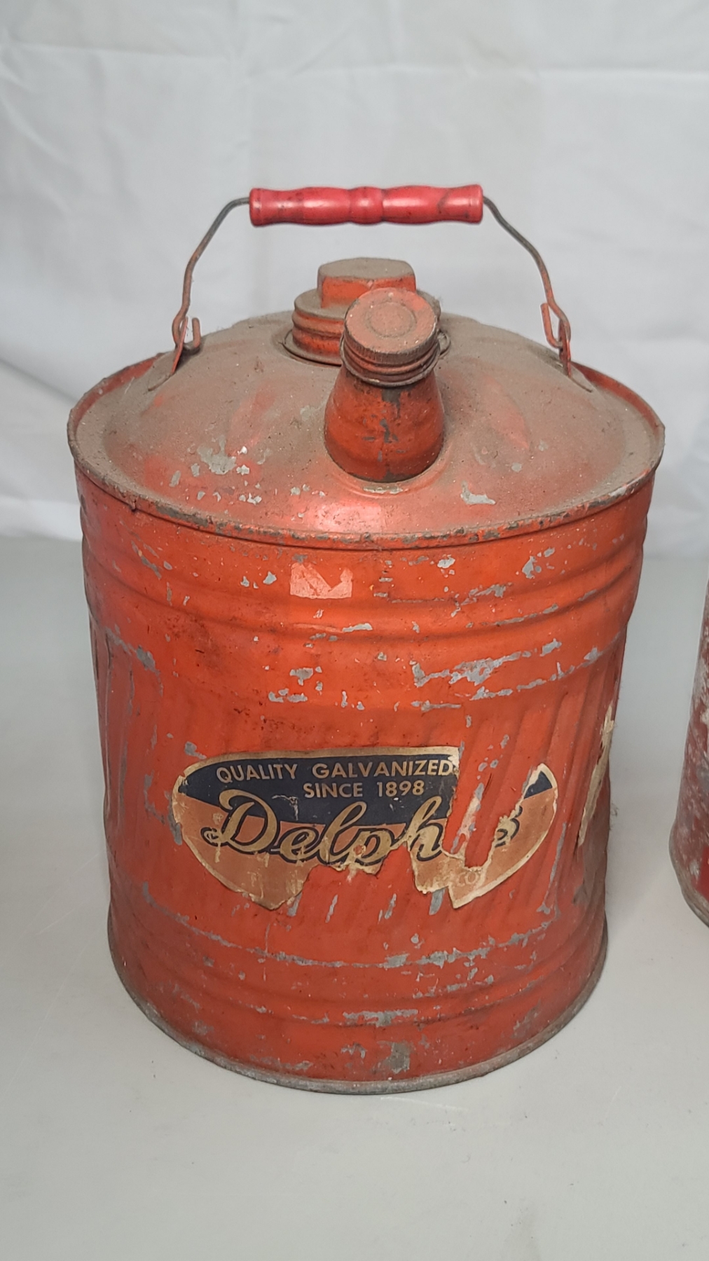 Vintage Delphos 2 Gallon Galvanized Steel Gas Can & Other Vintage Gas Can