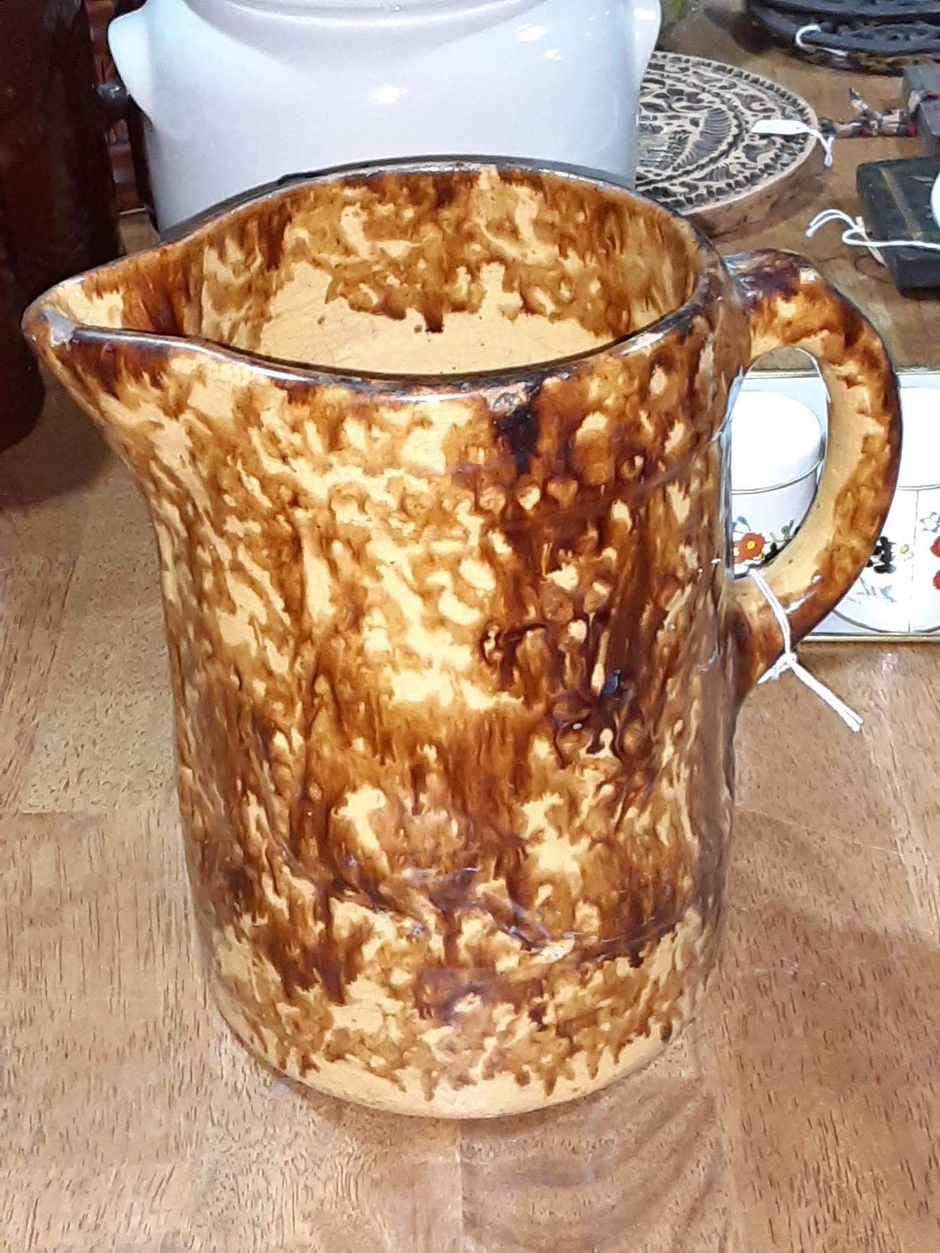 Vintage Early Spongeware Pitcher 9 Inces Tall - Exc Condition