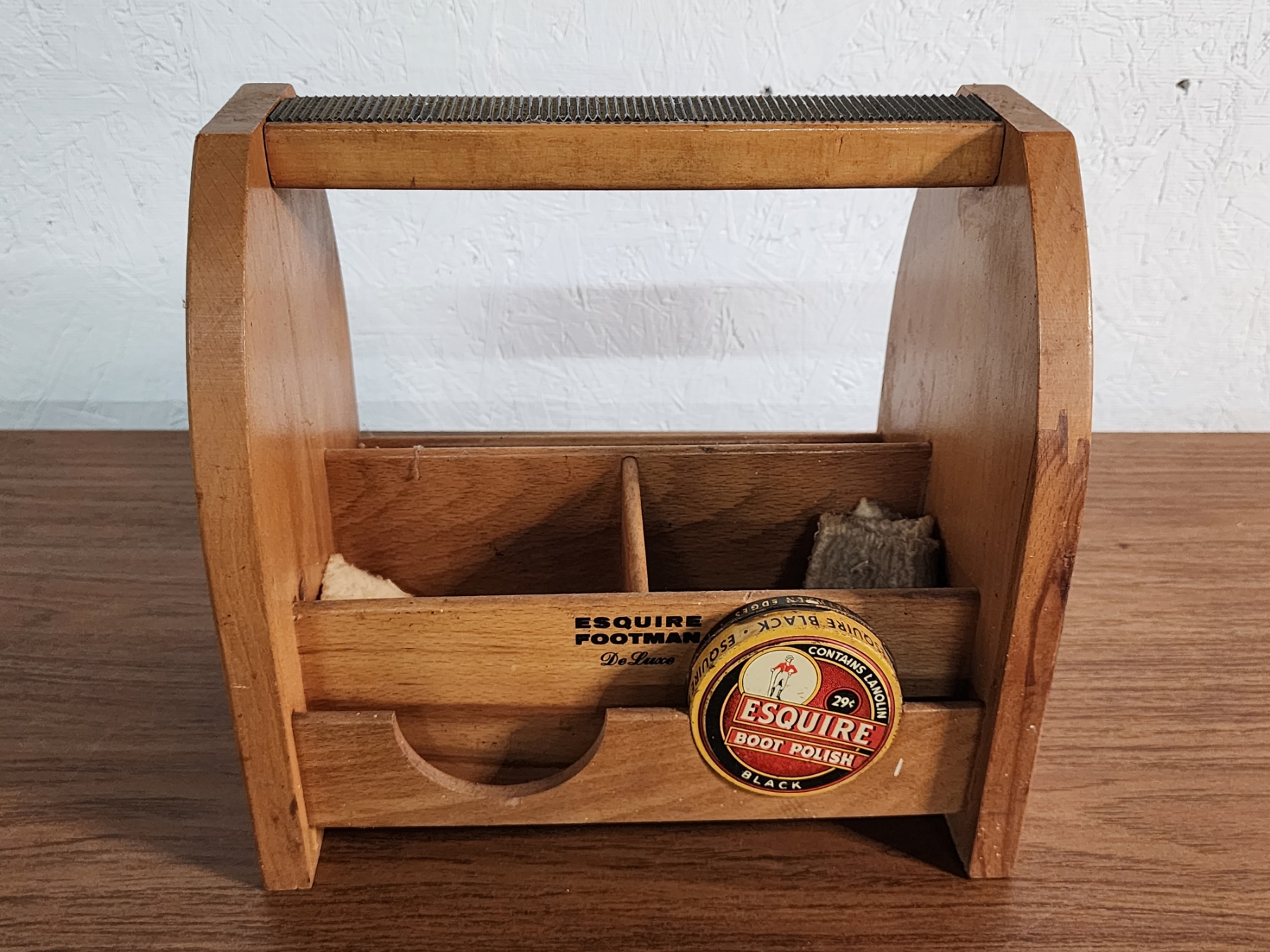 Vintage Esquire Footman Deluxe Shoe Shine Box & Metal Shoe Stretchers