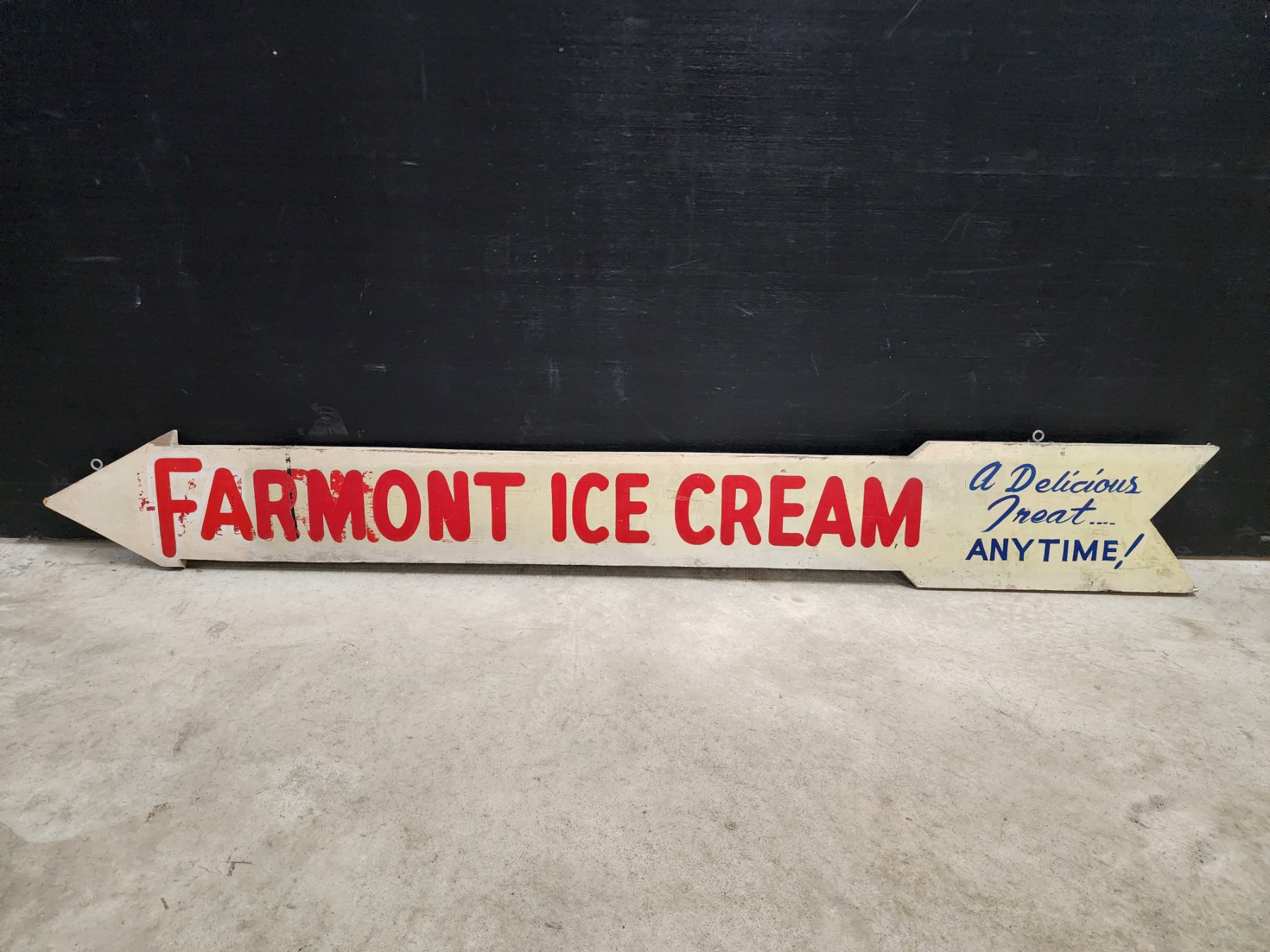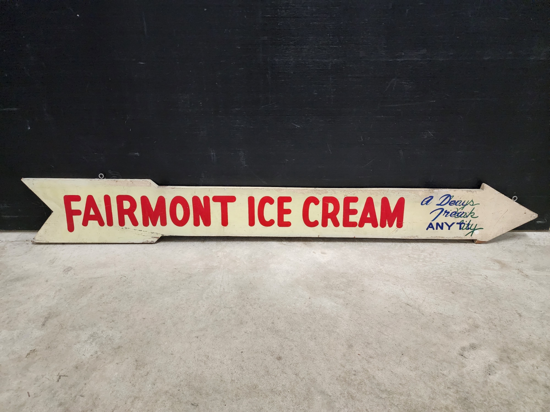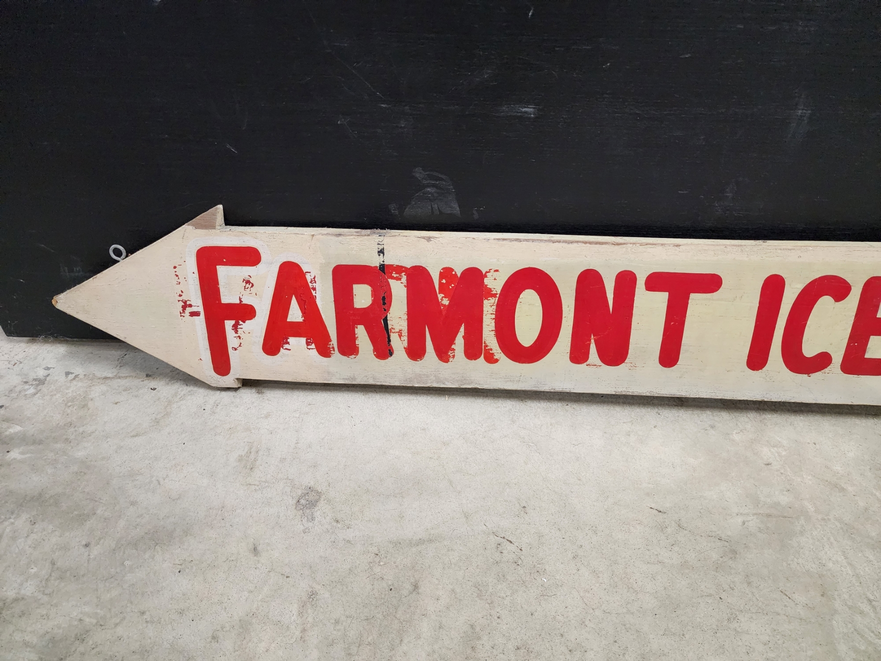 Vintage Fairmont/Farmont Ice Cream Wooden Arrow Sign Measuring About 60" Long - LOCAL PICKUP ONLY, NO SHIPPING OFFERED ON THIS LOT