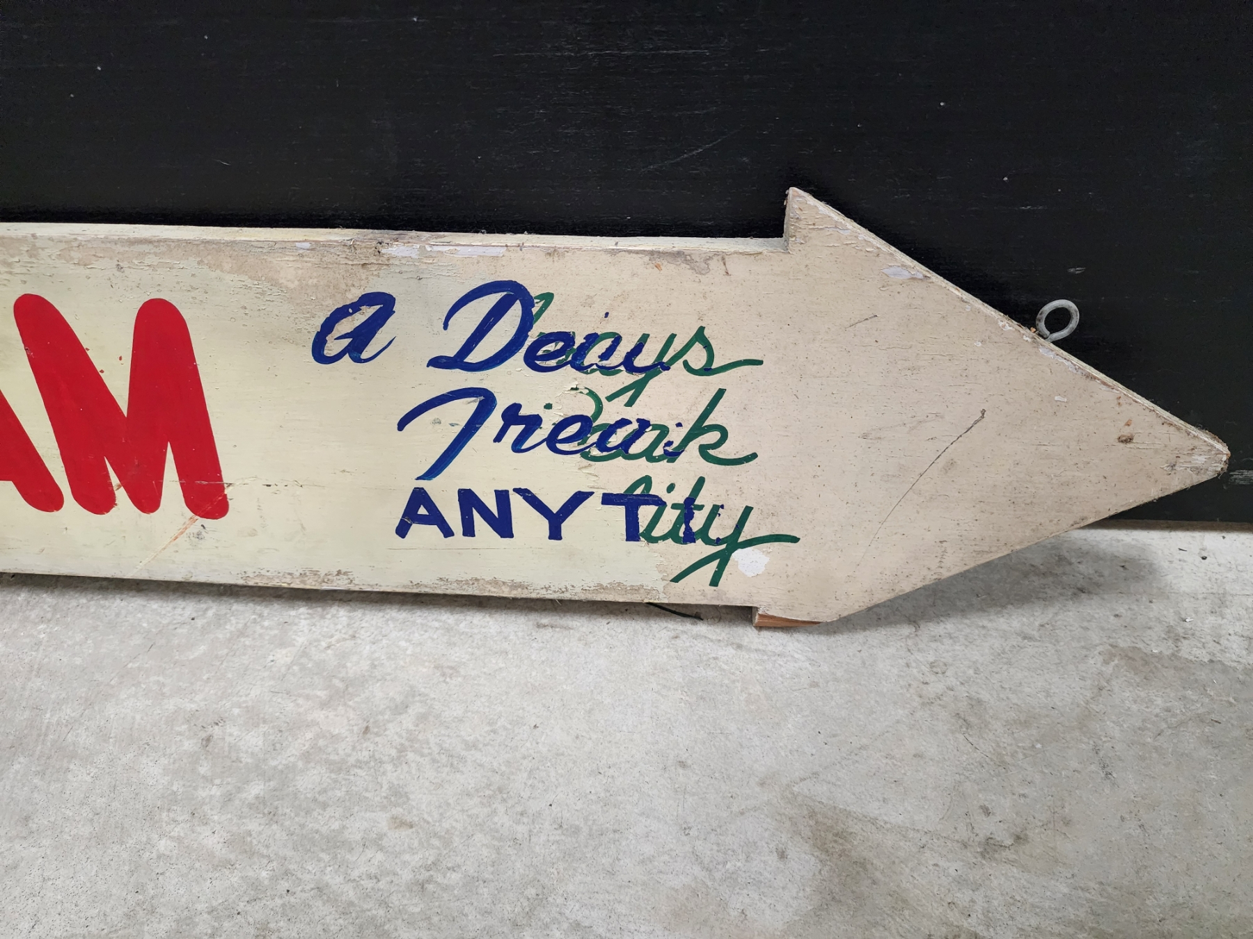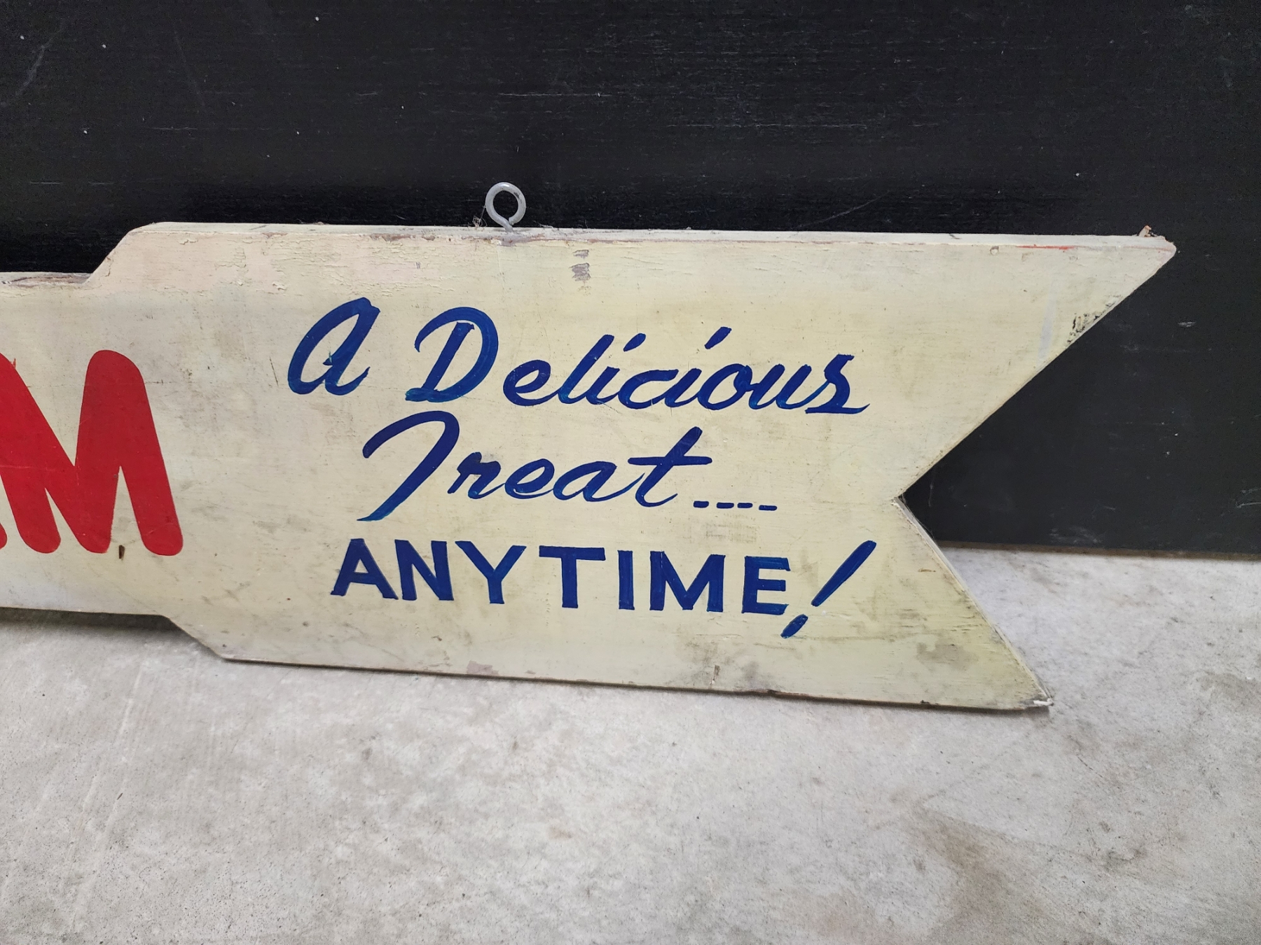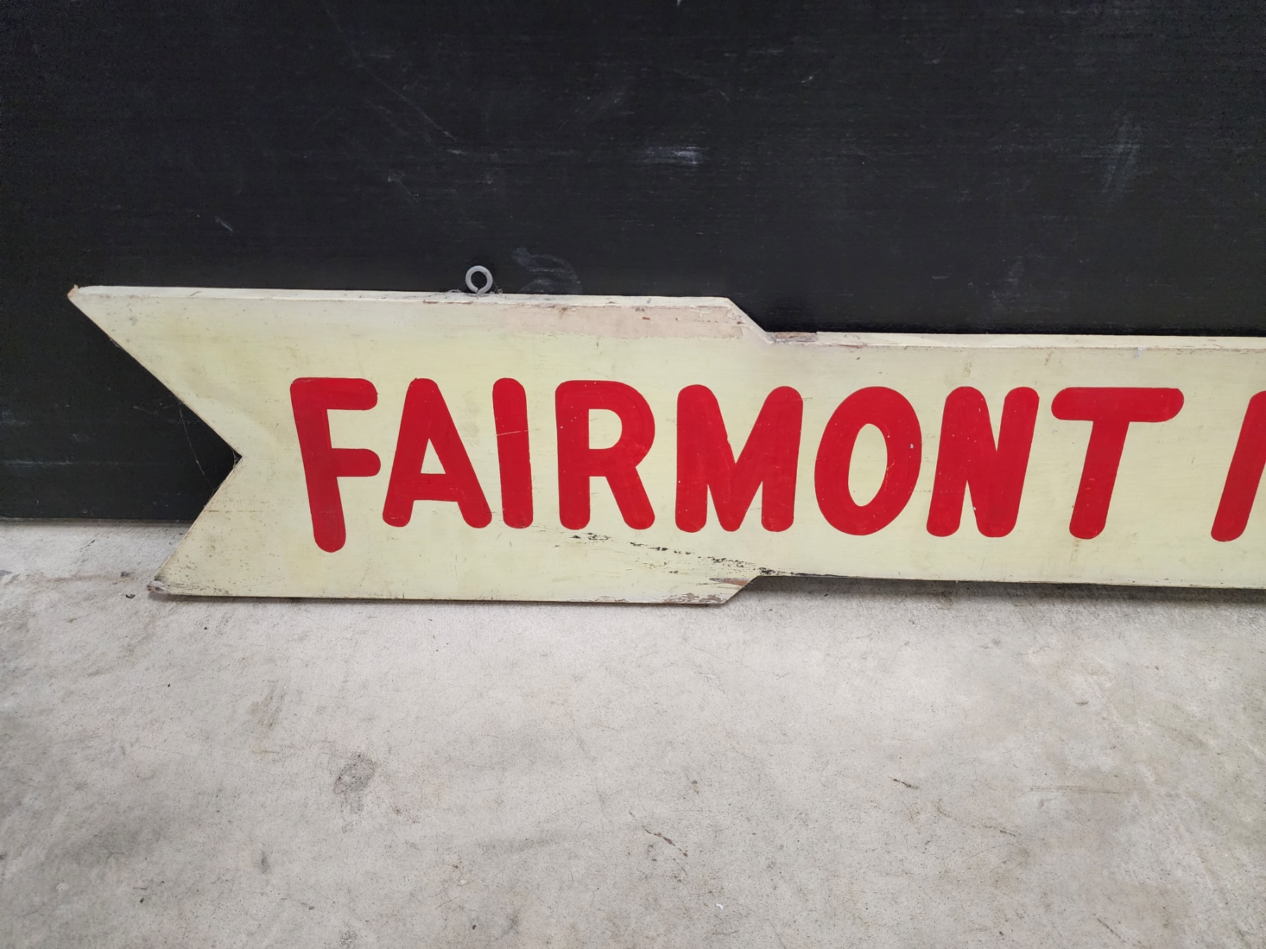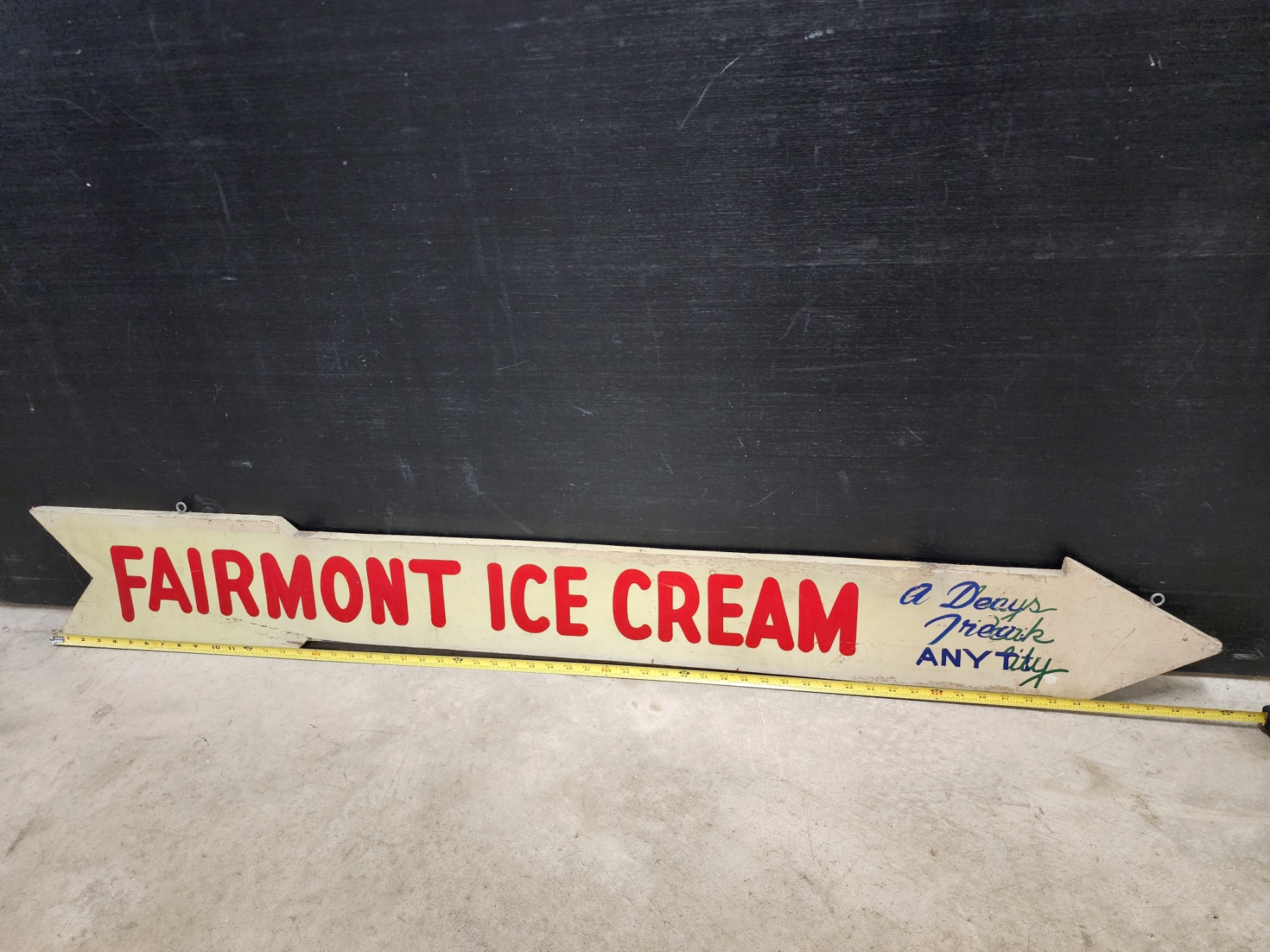Vintage Fairmont/Farmont Ice Cream Wooden Arrow Sign Measuring About 60" Long - LOCAL PICKUP ONLY, NO SHIPPING OFFERED ON THIS LOT