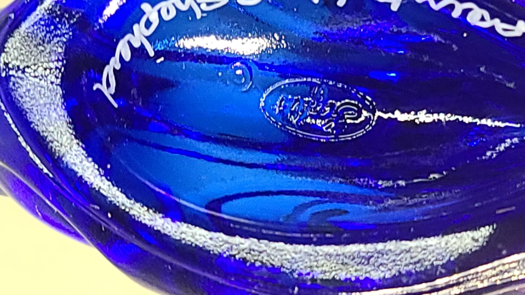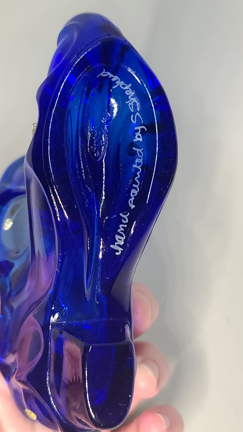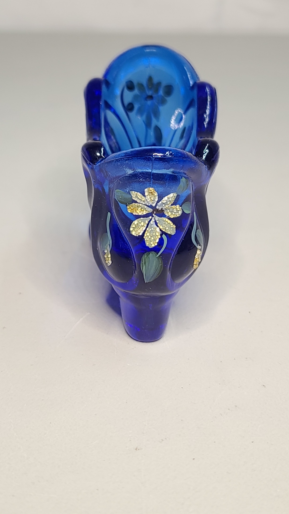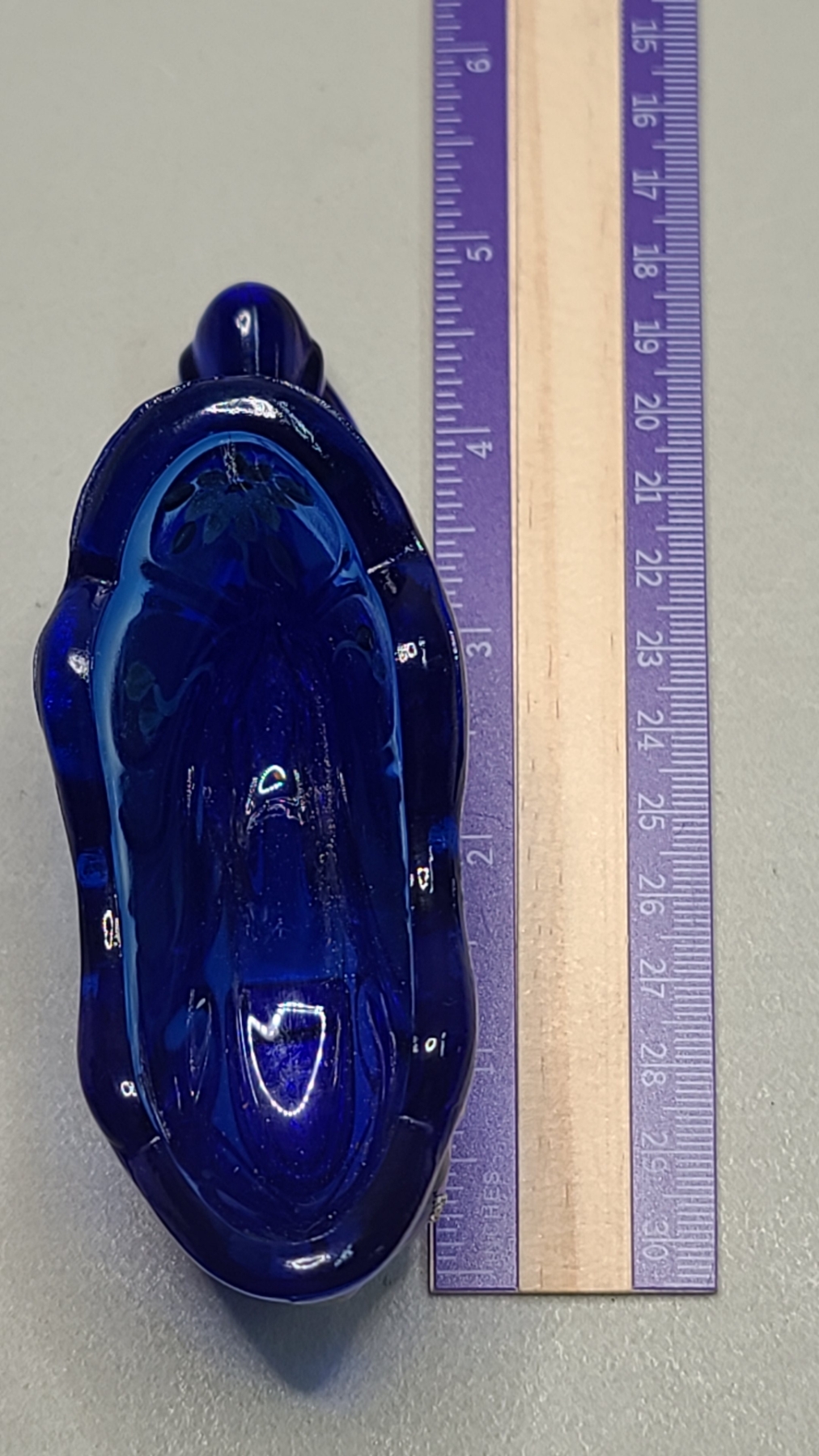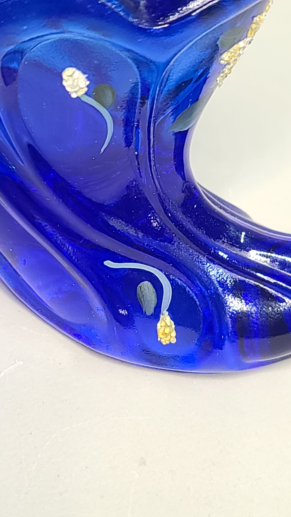 Vintage Fenton Cobalt Blue Hand Painted Artist Signed Glass Shoe