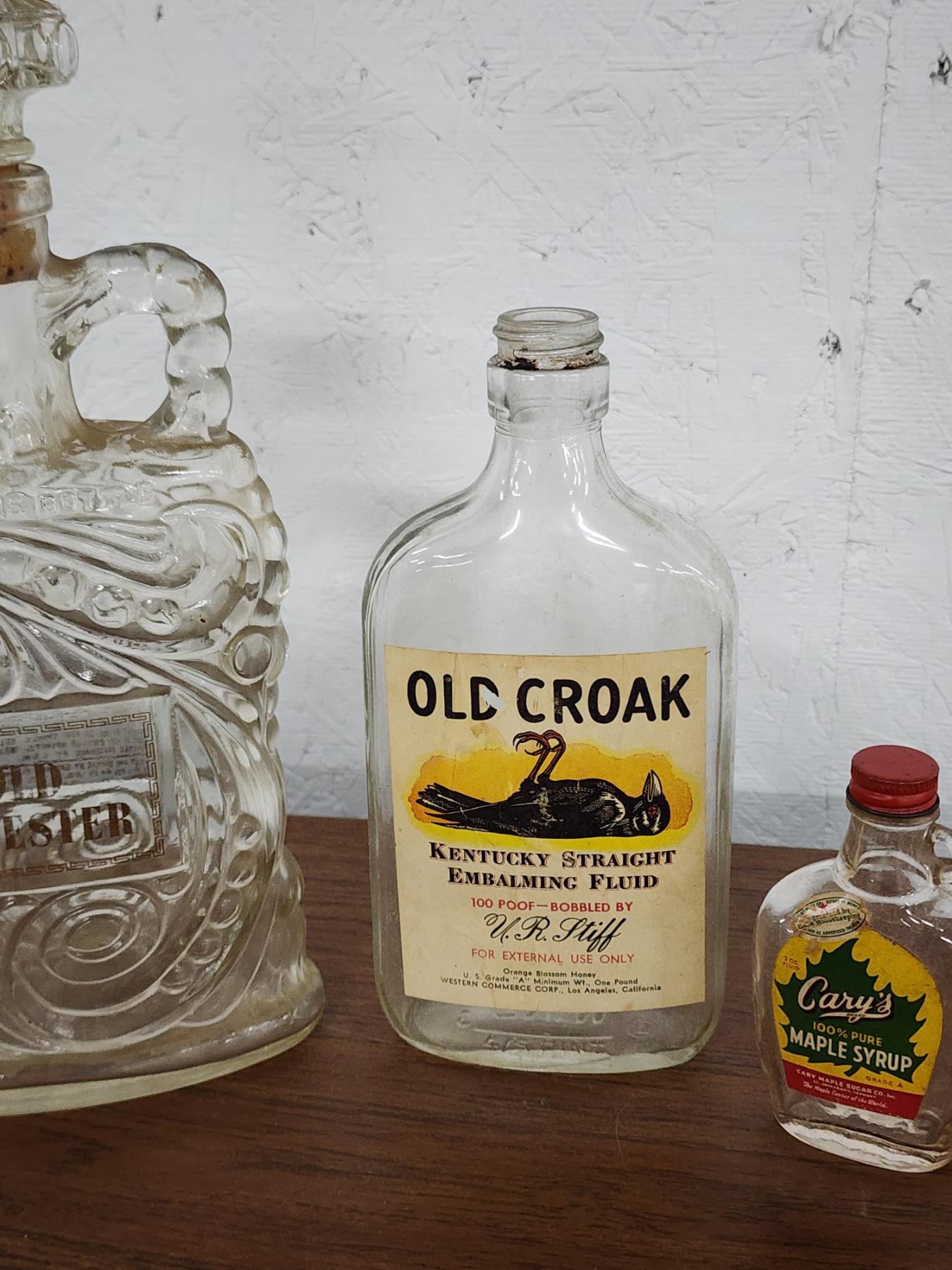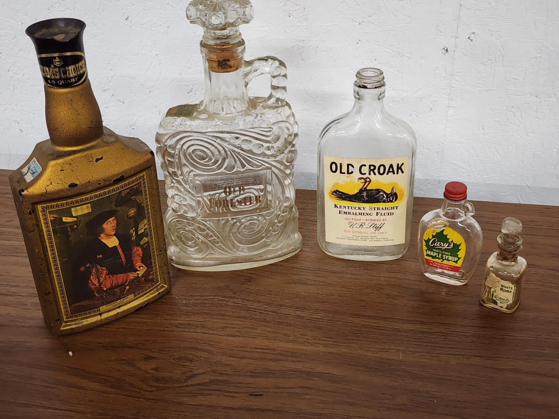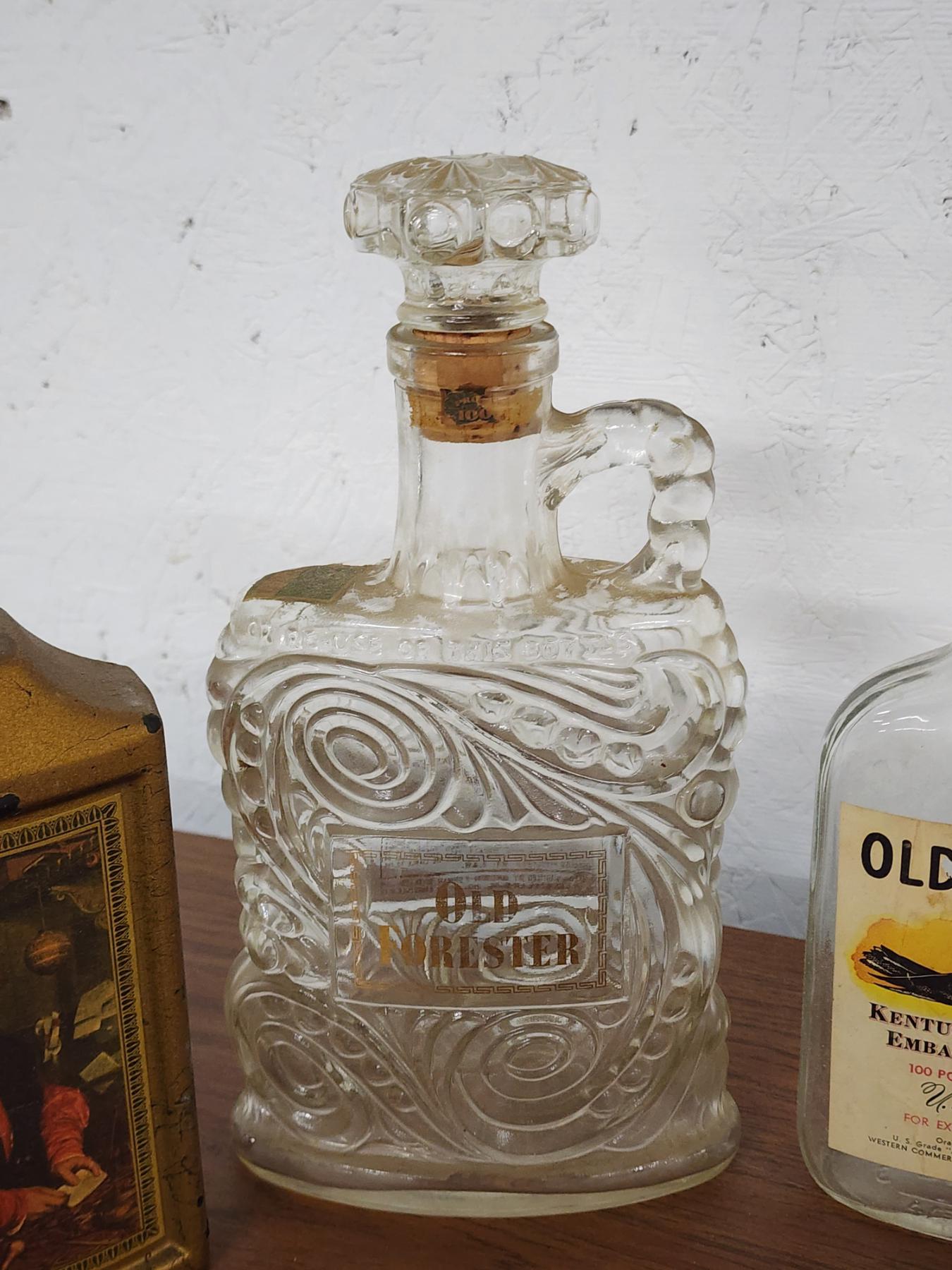 Vintage Glass Bottles Including Old Corak and Old Forester
