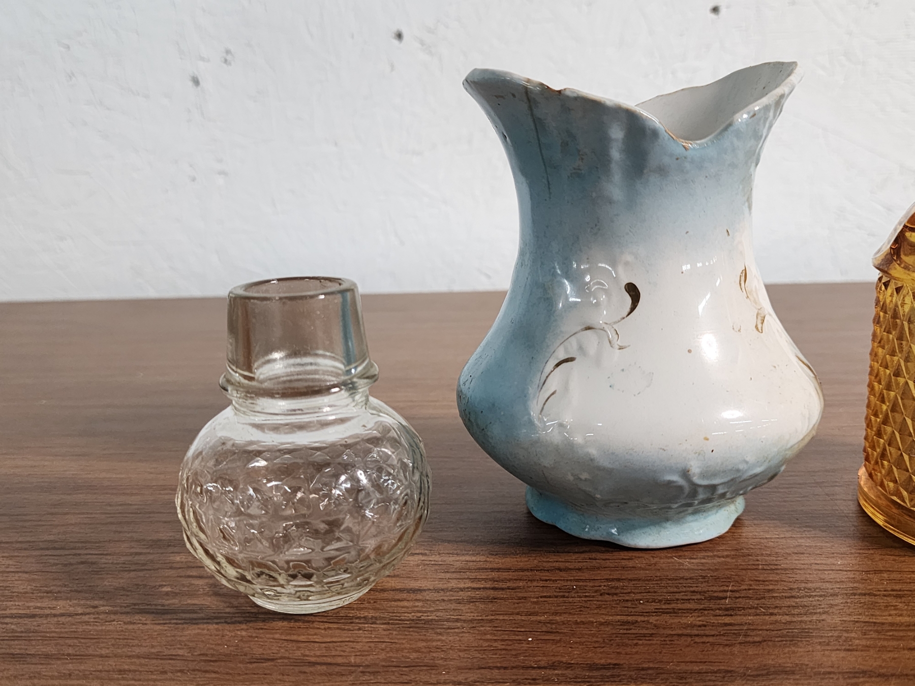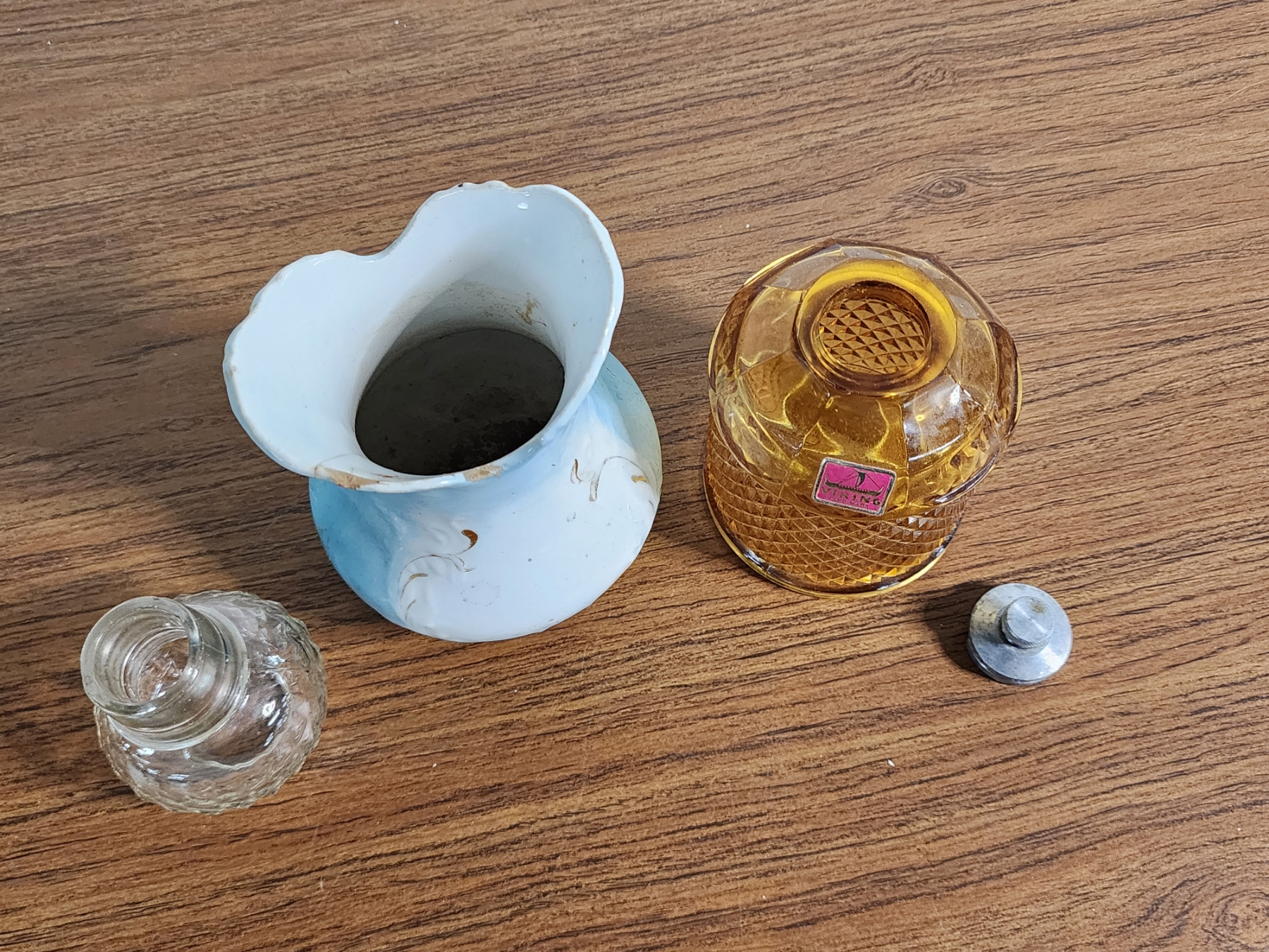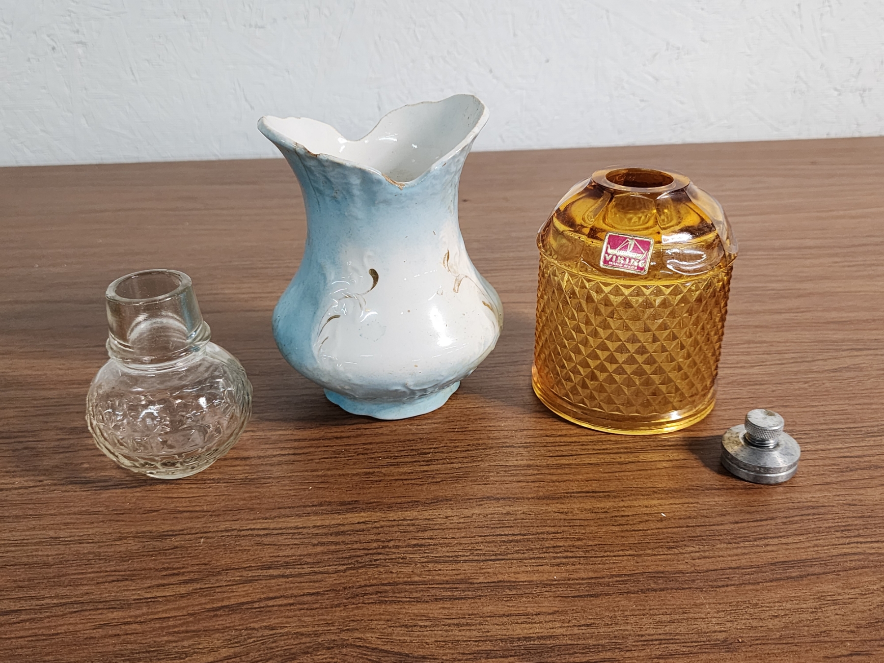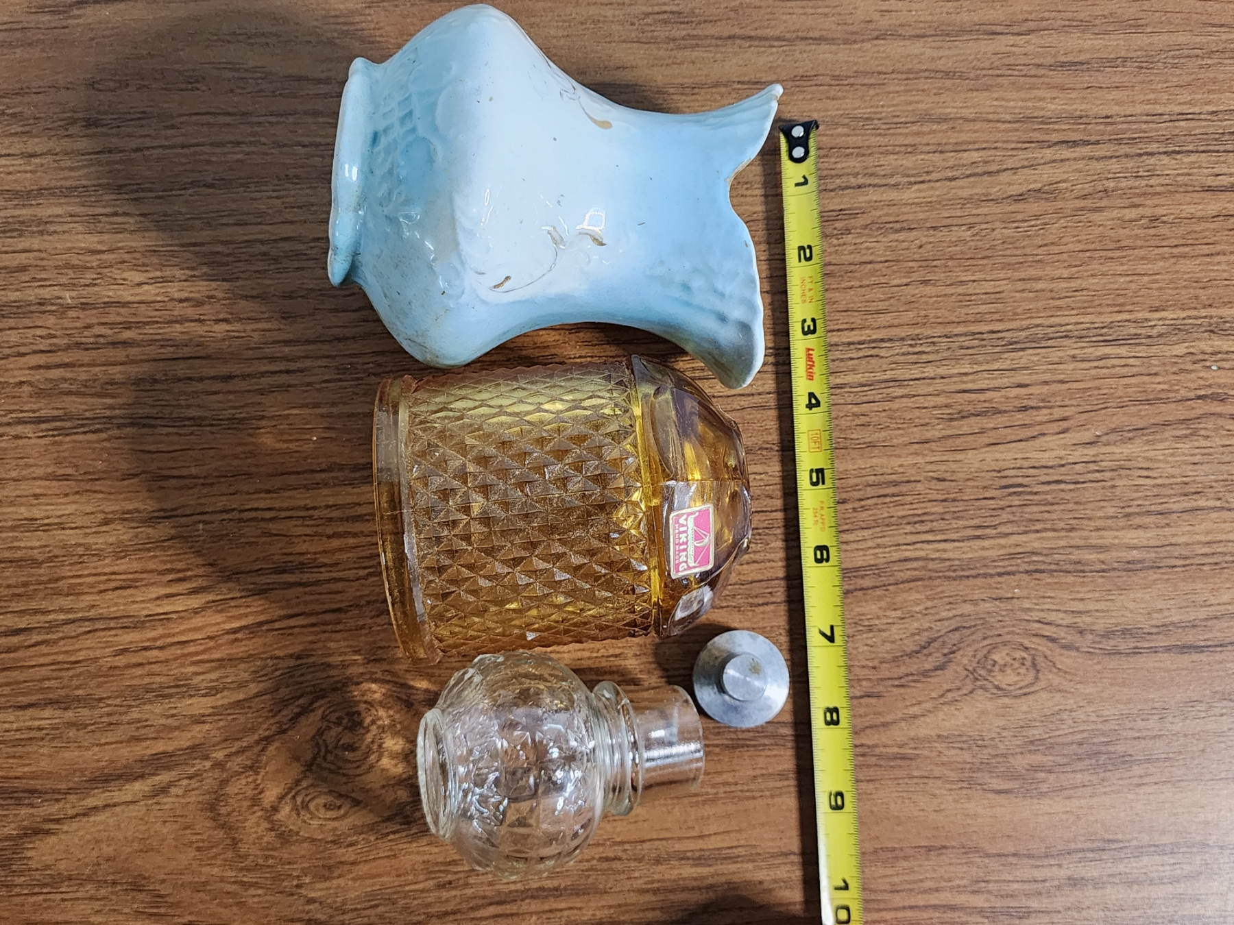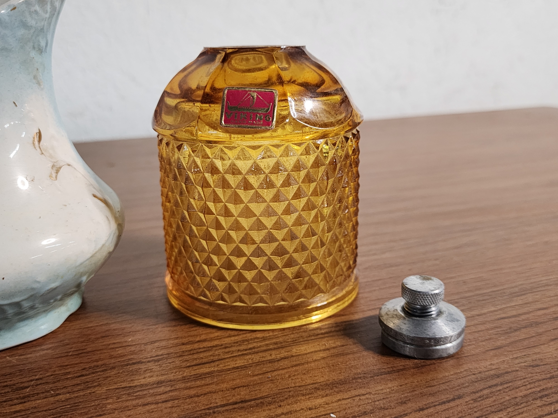 Vintage Glassware Including Viking Glass Amber Diamond Point Glimmer Fairy Lamp