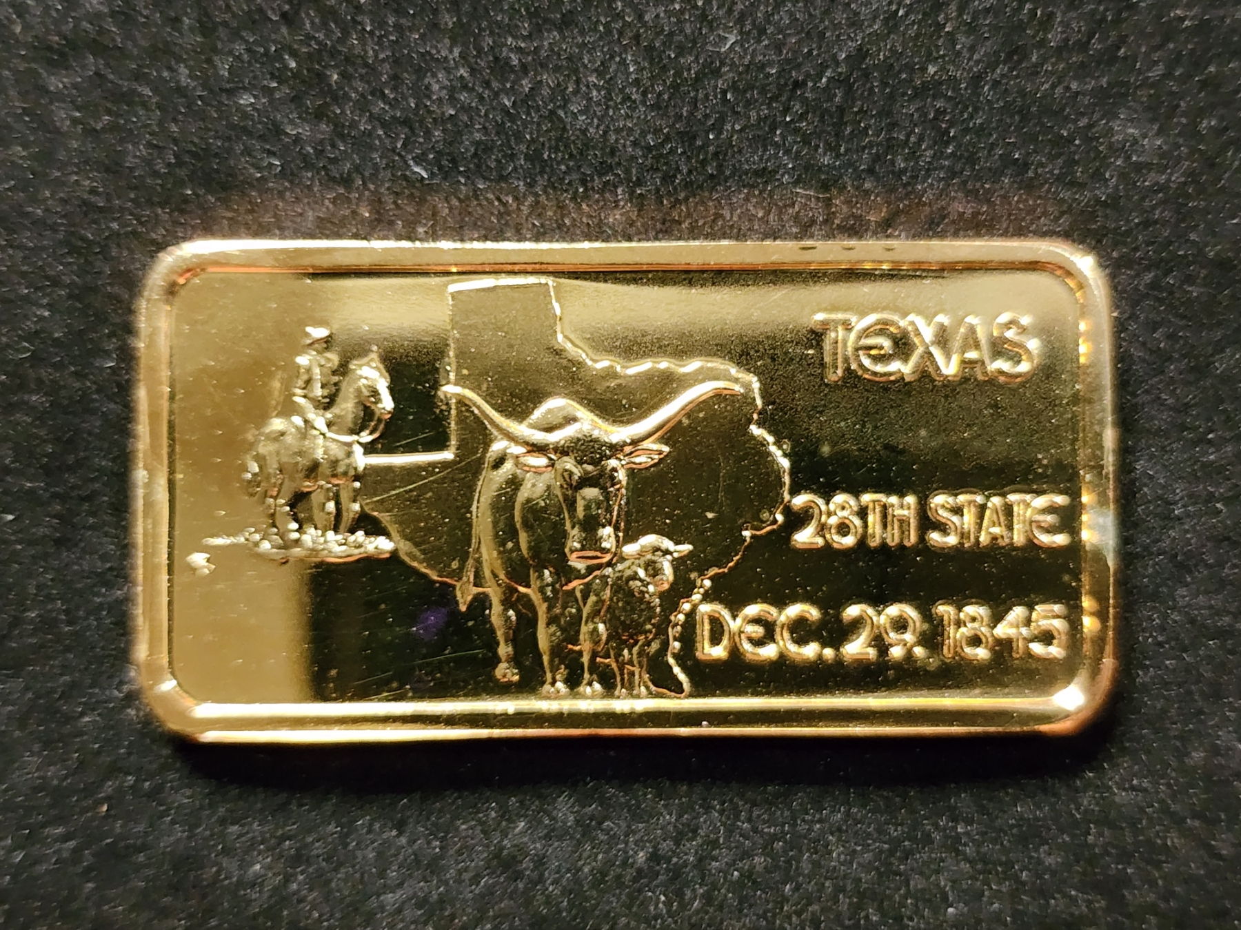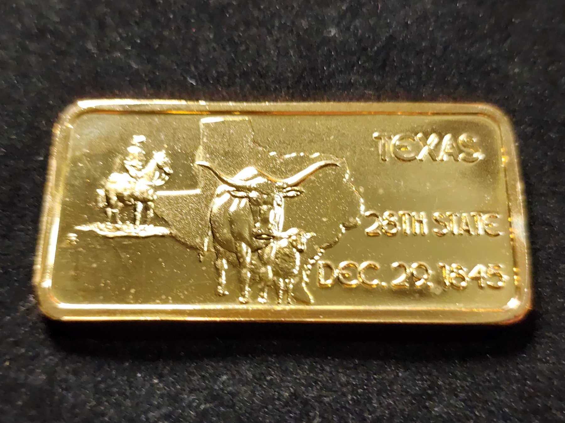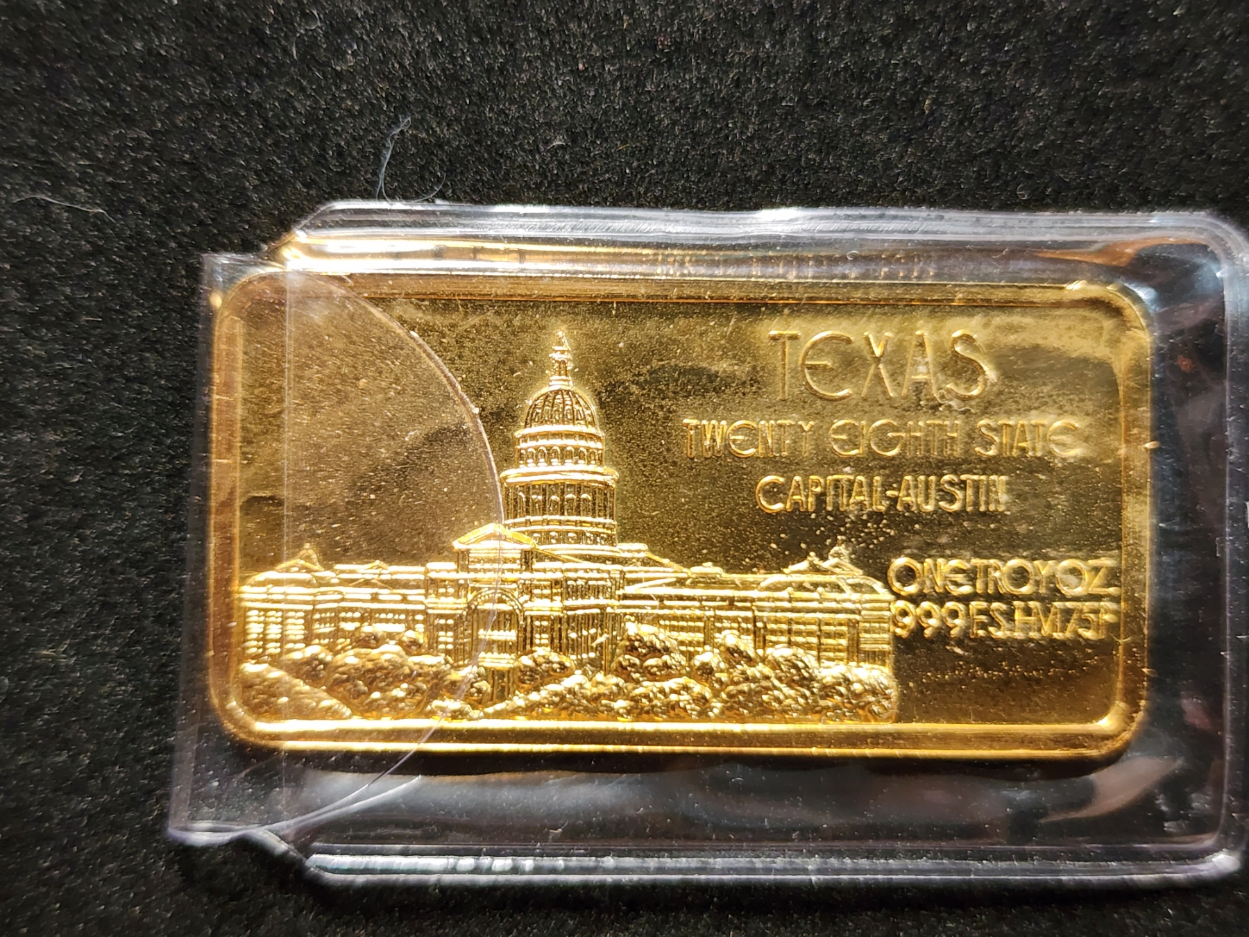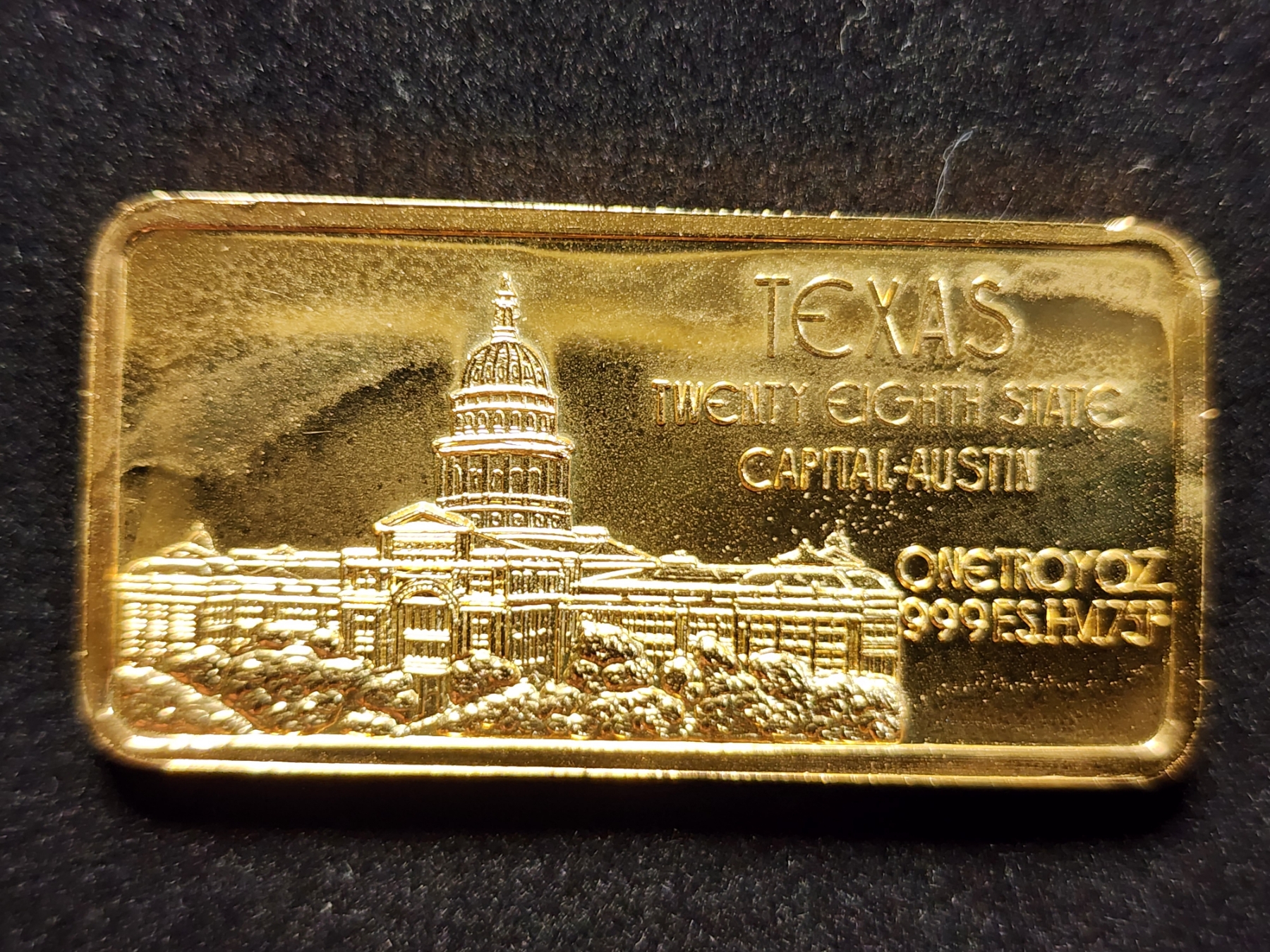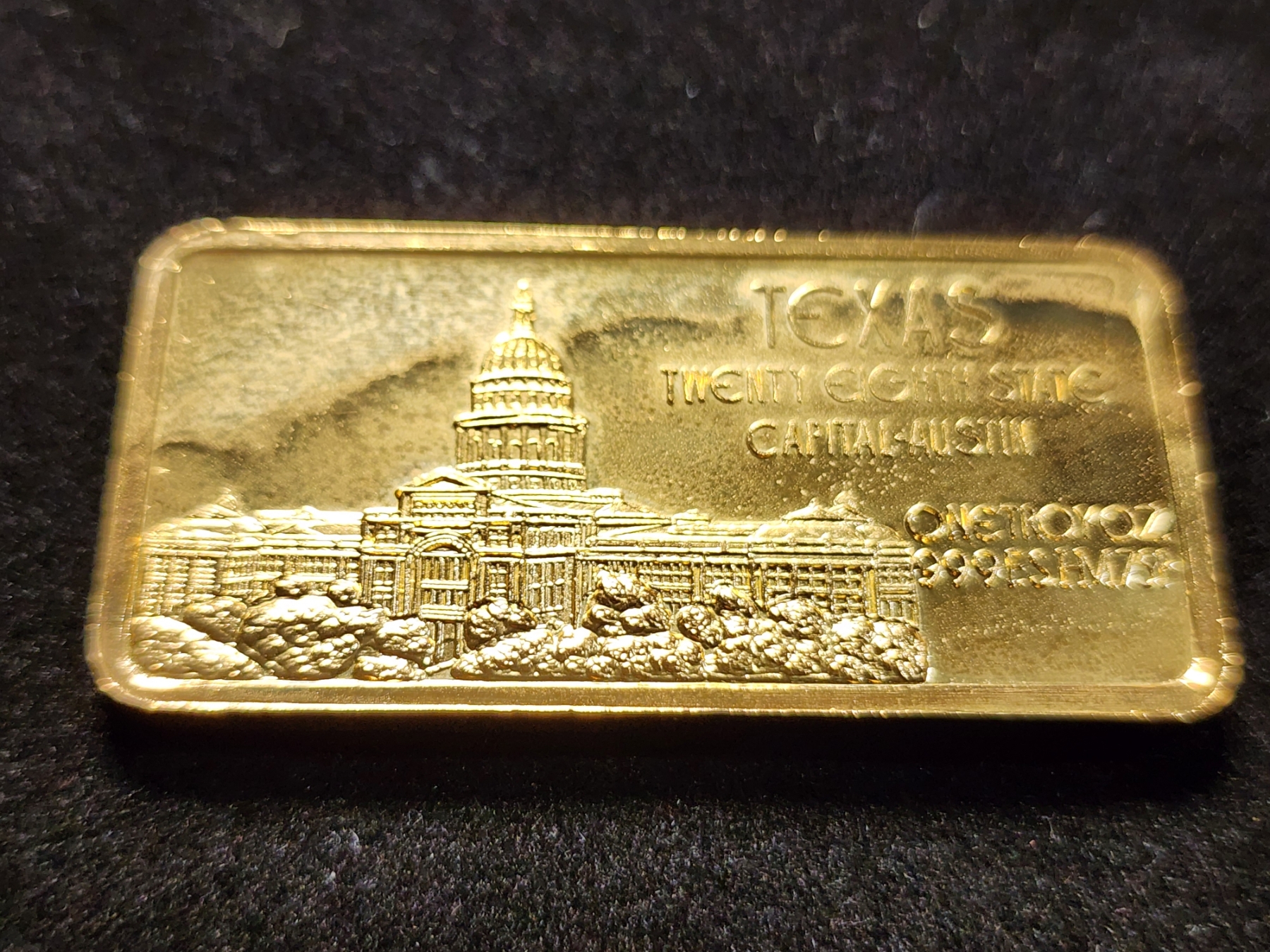 Vintage Gold Plated 28th State Texas One Troy Oz .999 Fine Silver Bar