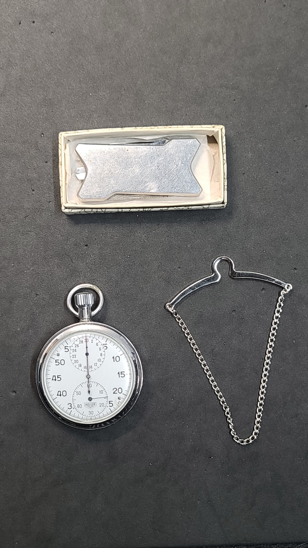 Vintage Heuer Stopwatch, Utility Knife & Tie Chain