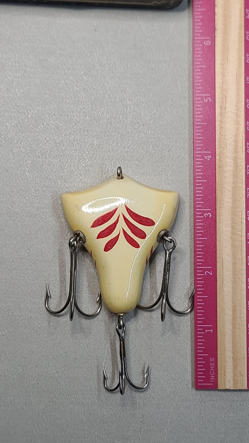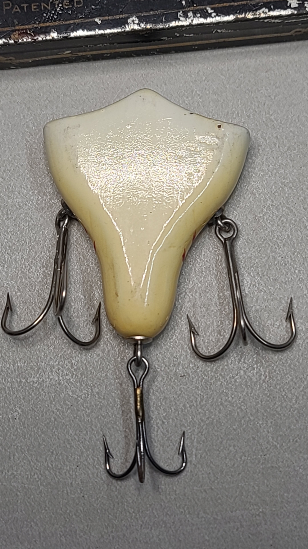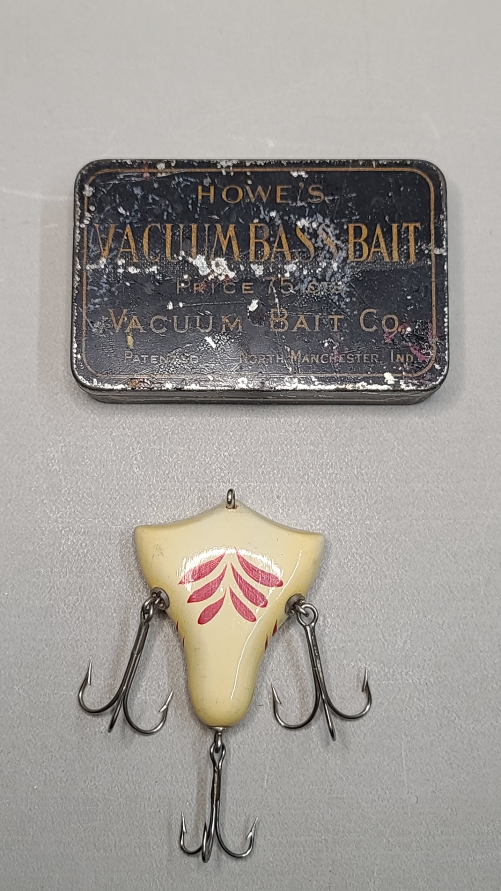 Vintage Howe's Red & White Vacuum Bait Fishing Lure With Tin
