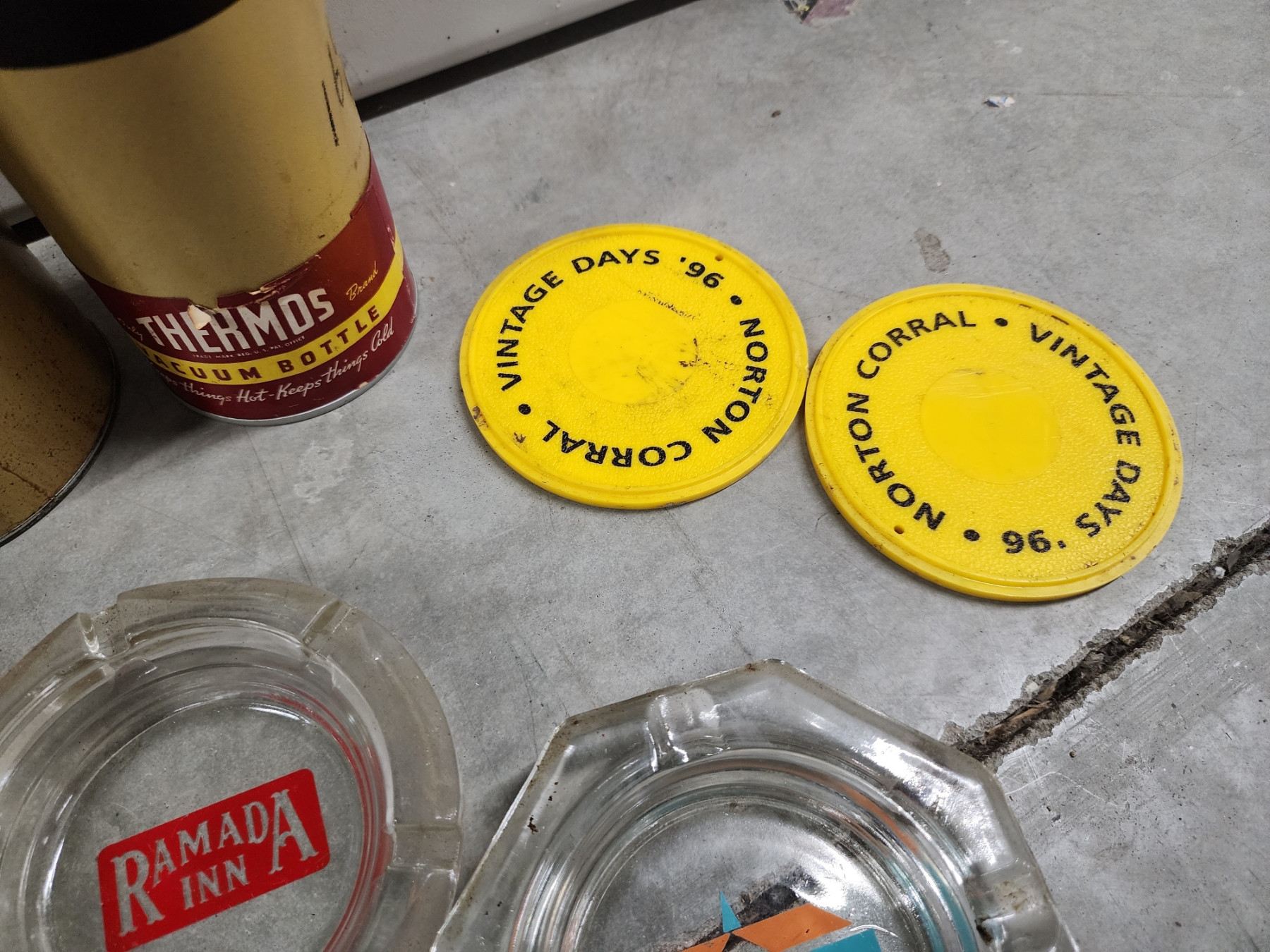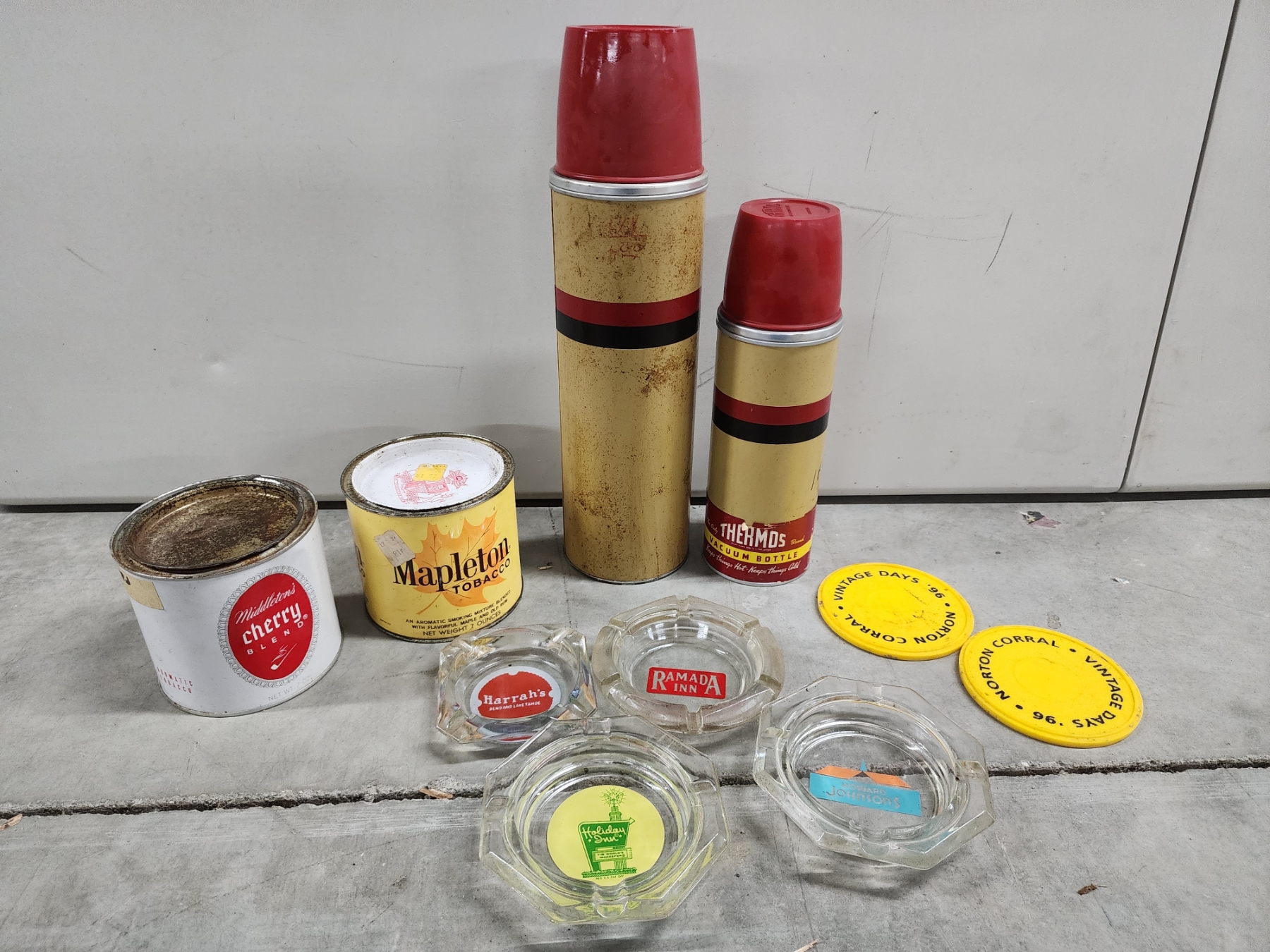 Vintage Items: Tobacco Tins, Thermos Bottles, Ashtrays