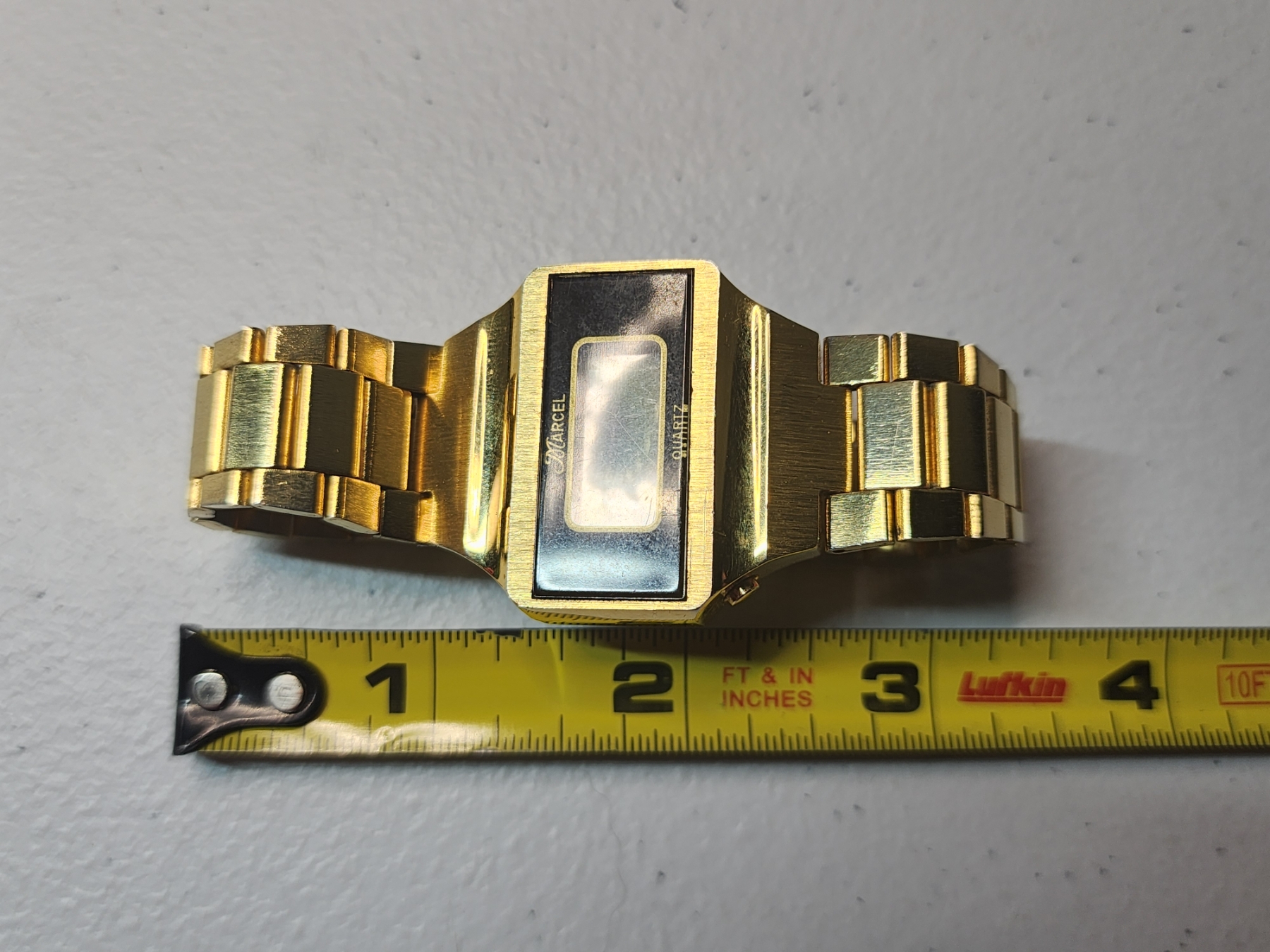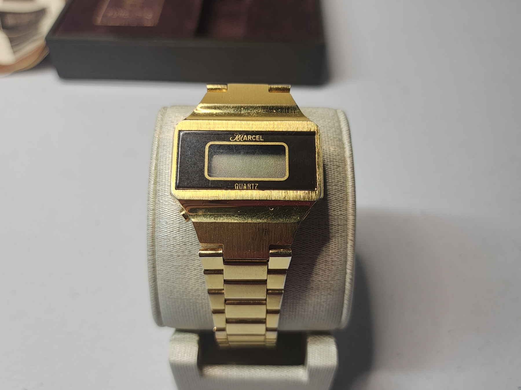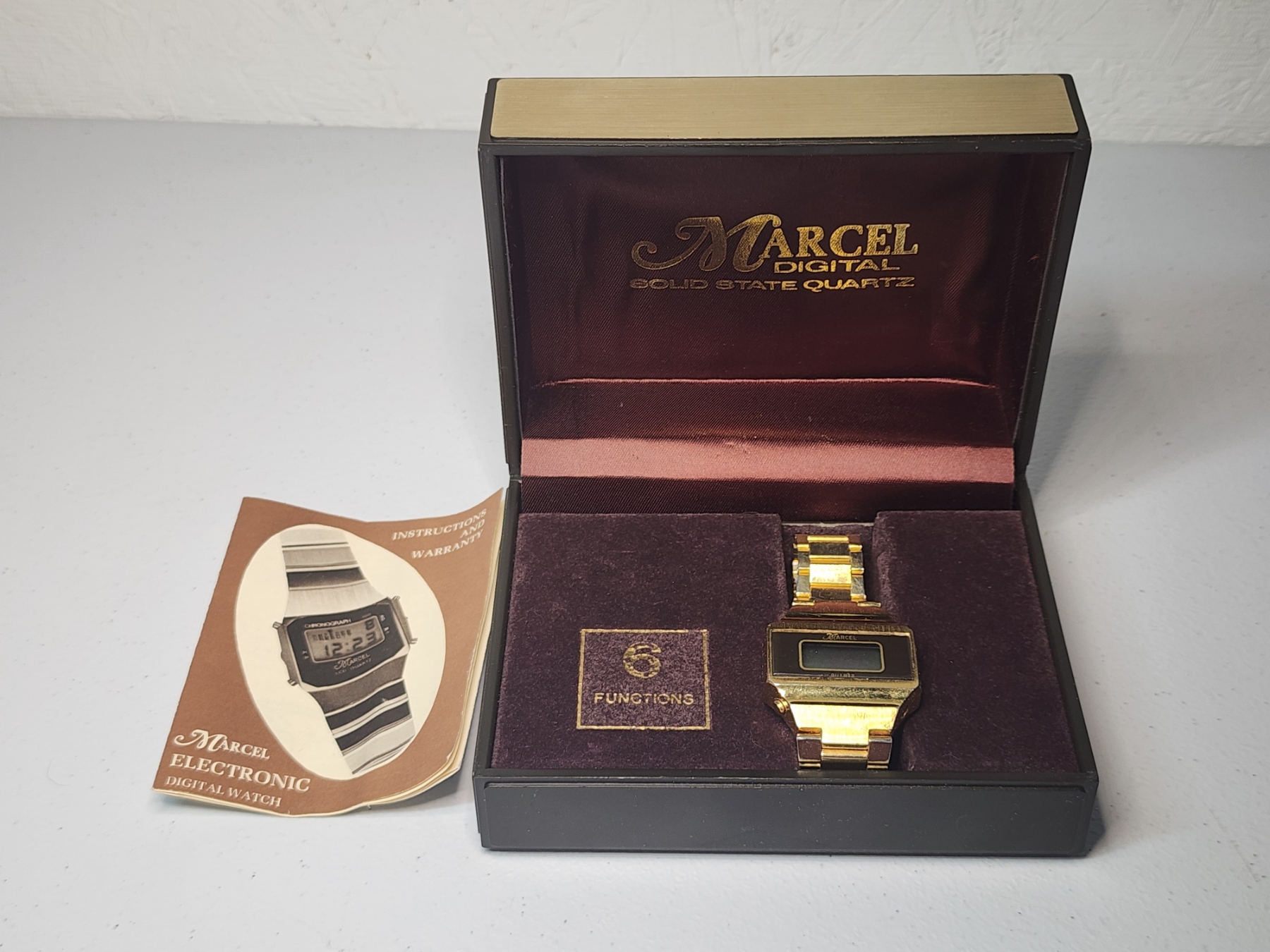 Vintage Marcel Digital Solid State Quartz Gold-Tone Watch with Original Box