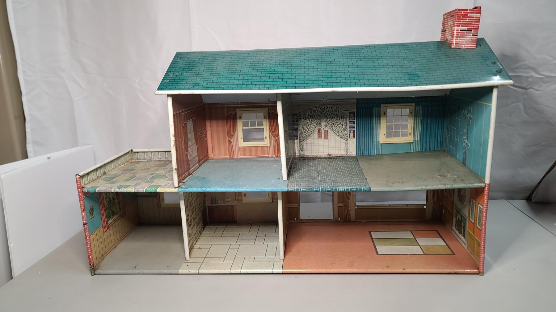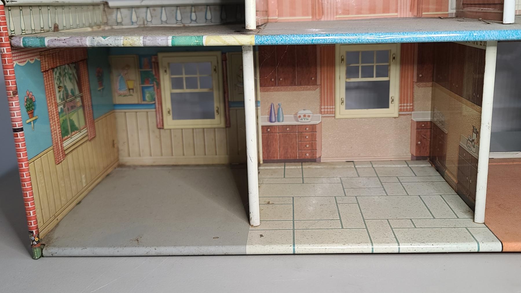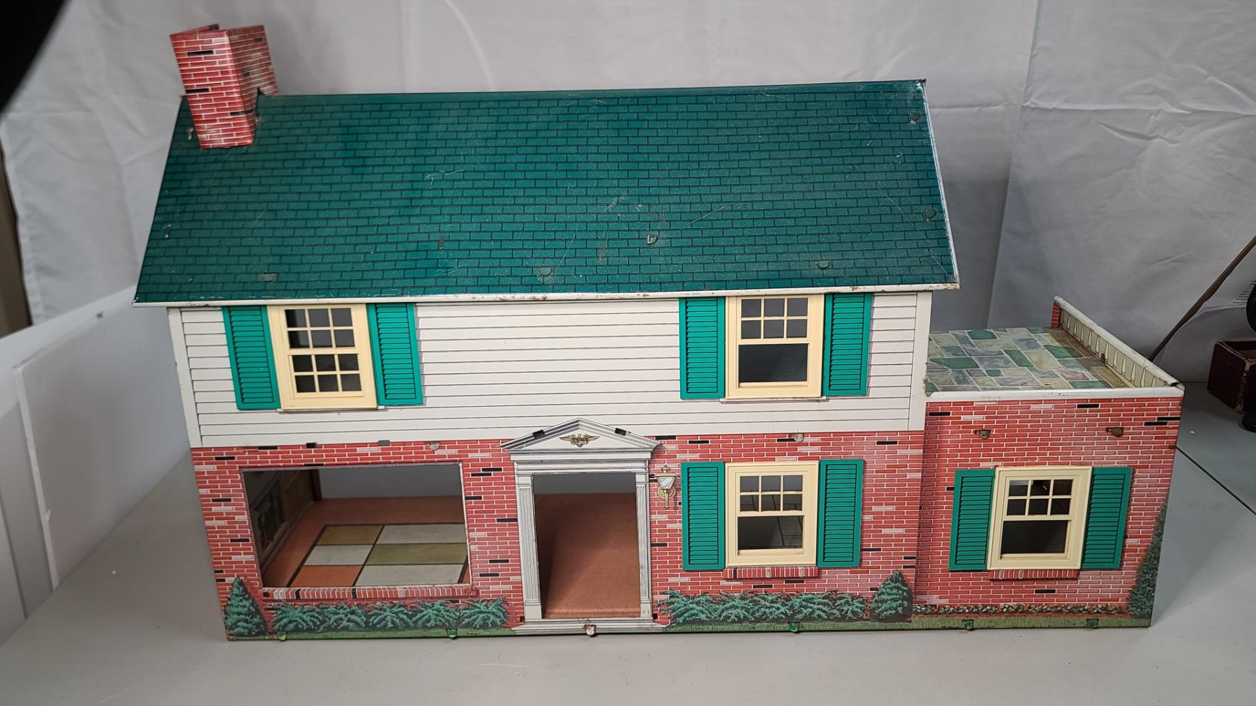 Vintage Marx Tin Litho Two Story Colonial Dollhouse