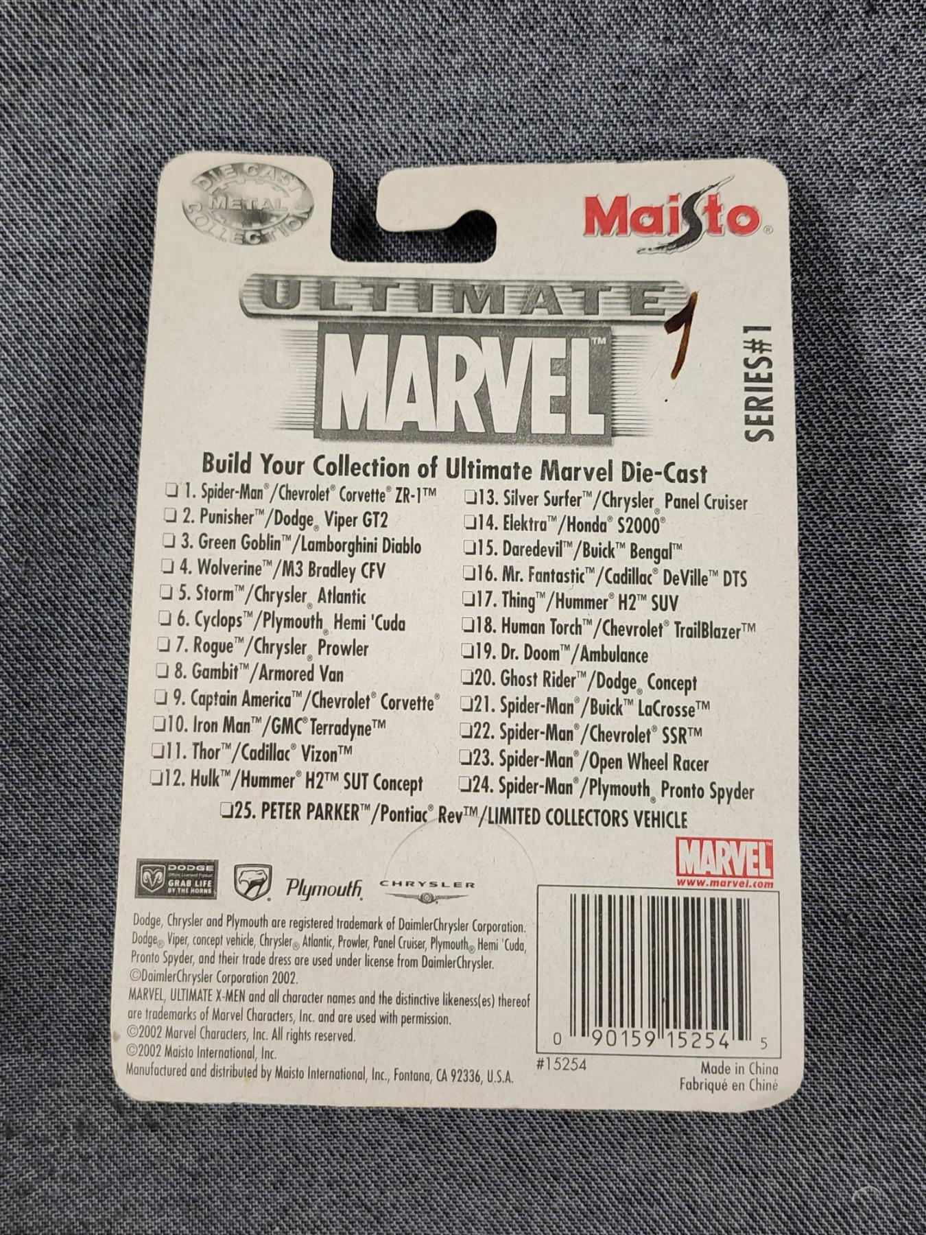 Vintage NEW IN THE BOX Maisto Ultimate Marvel Cyclops Die-Cast Plymouth Toy Car