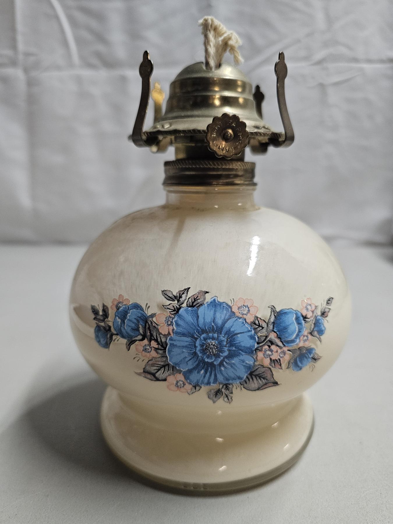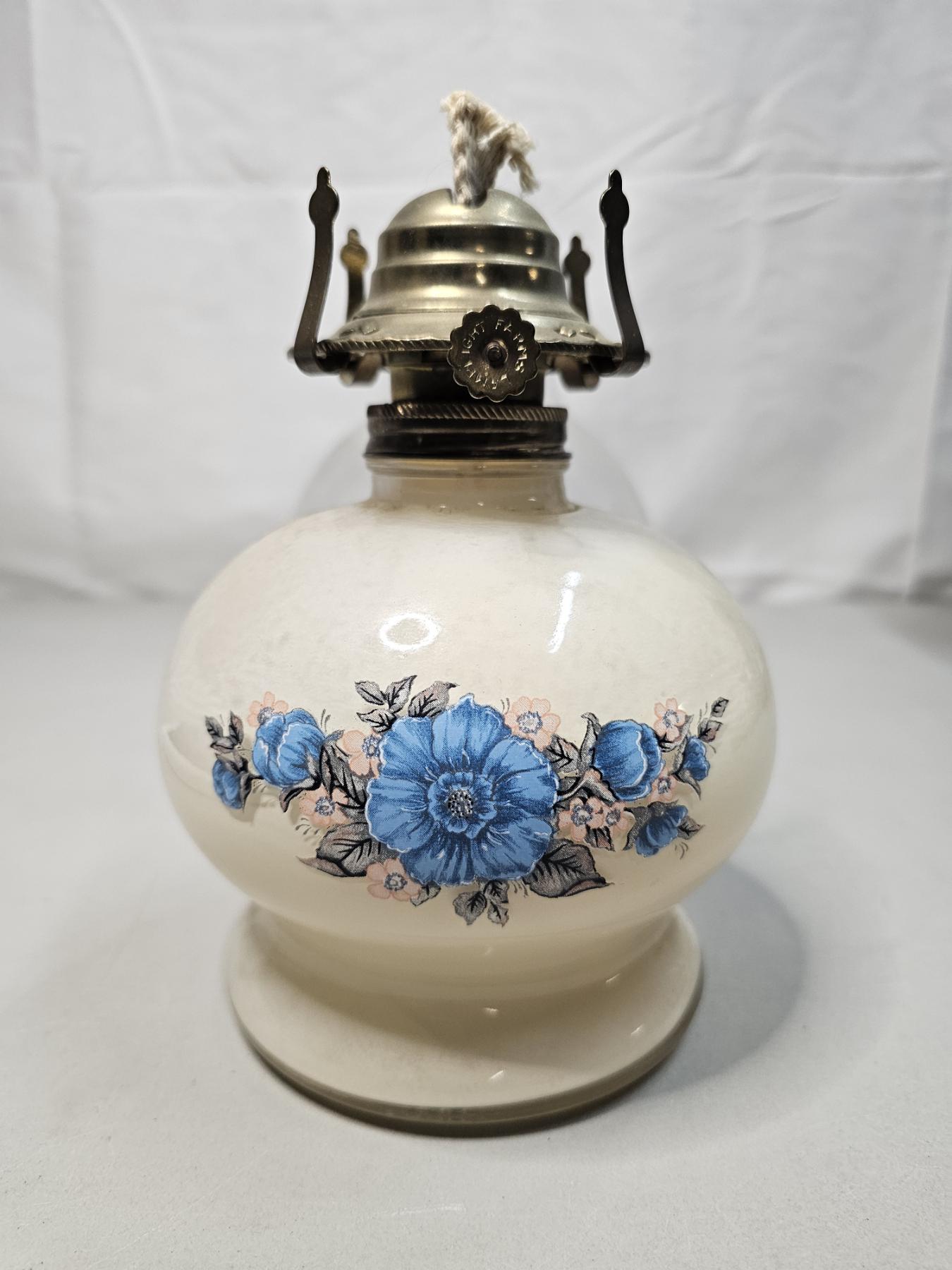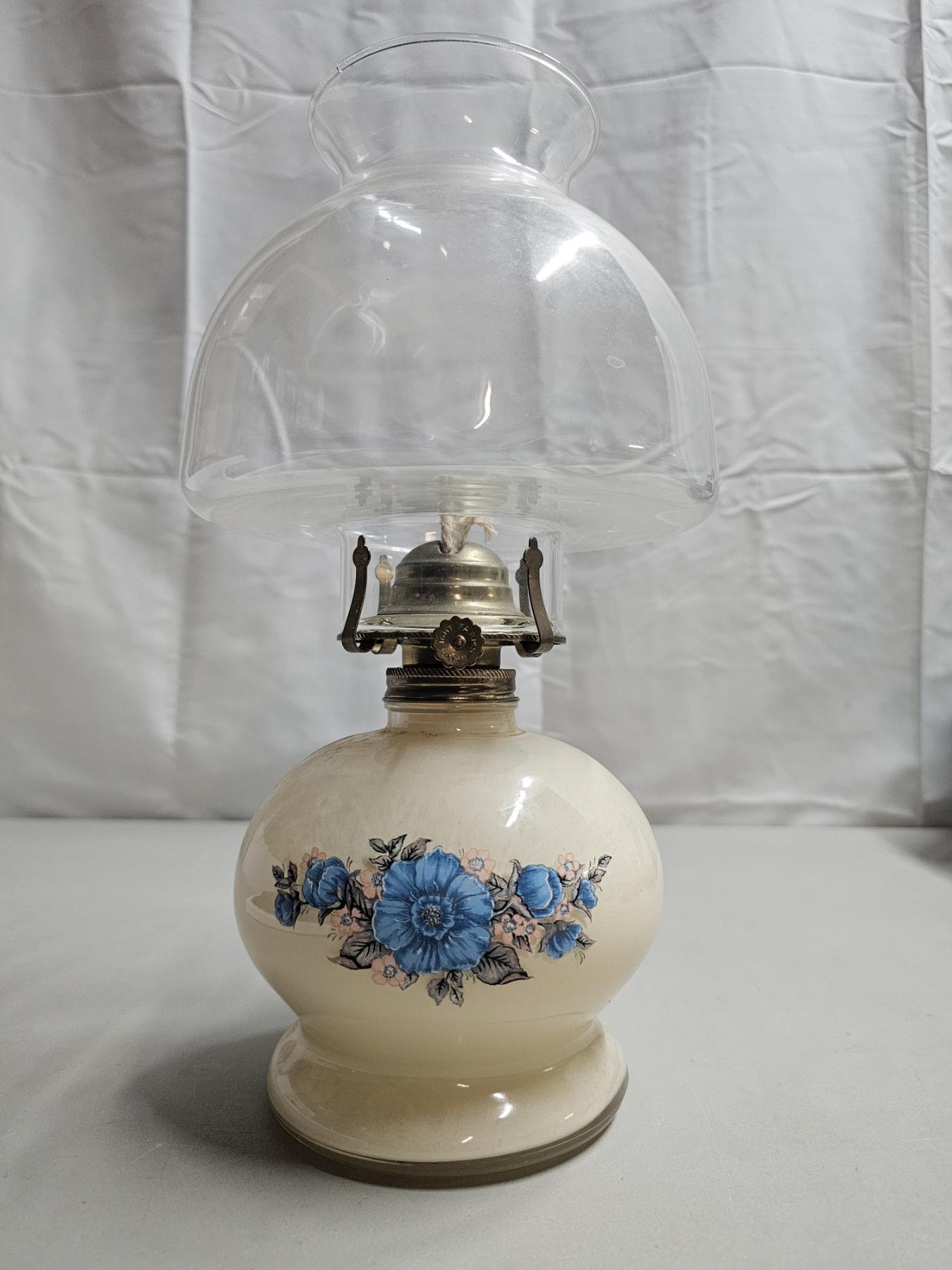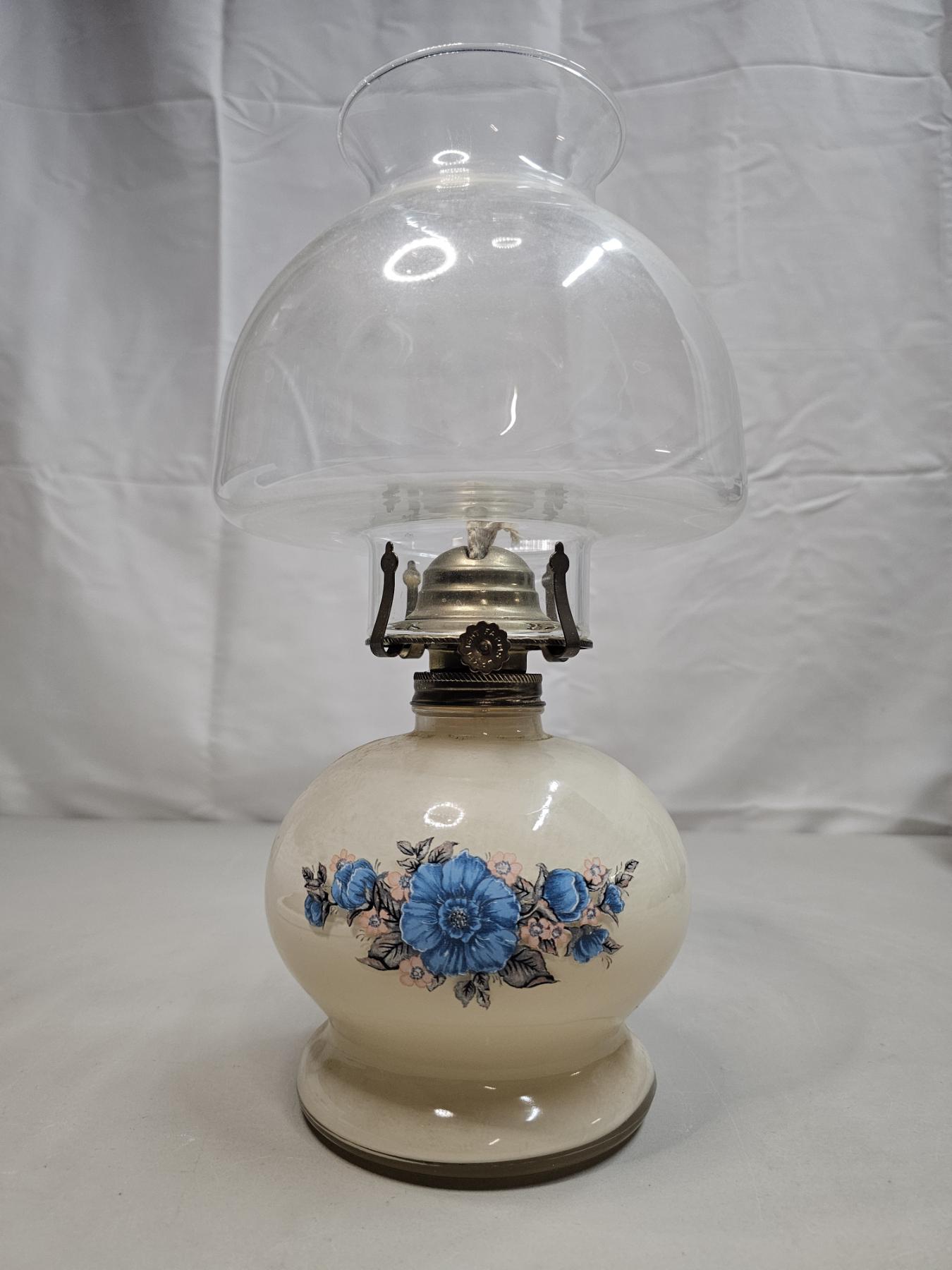 Vintage Oil Lamp - Lovely Flower Design (6" Base, 7" Chimney)