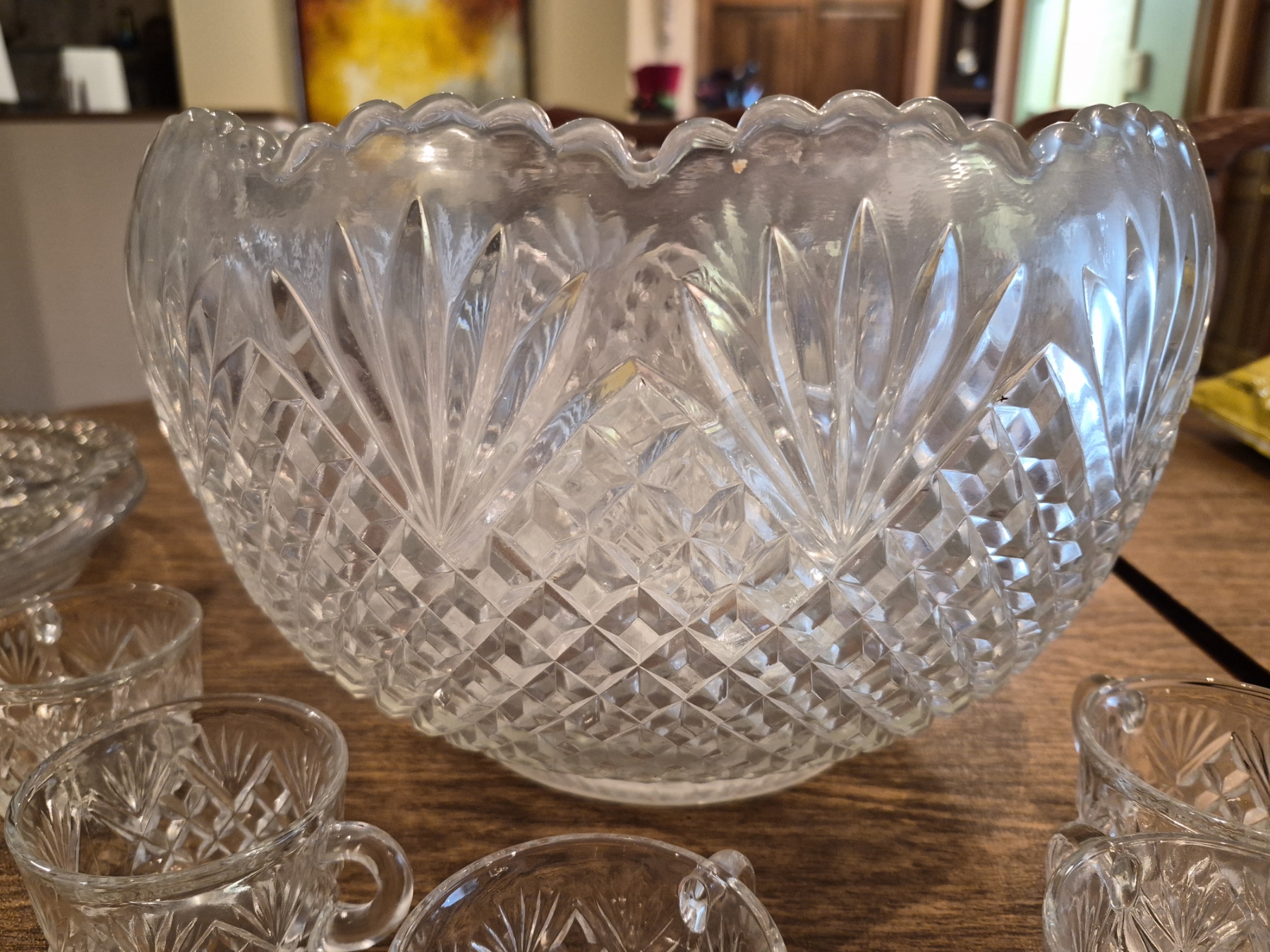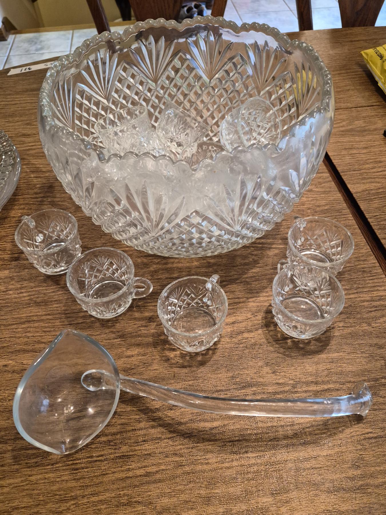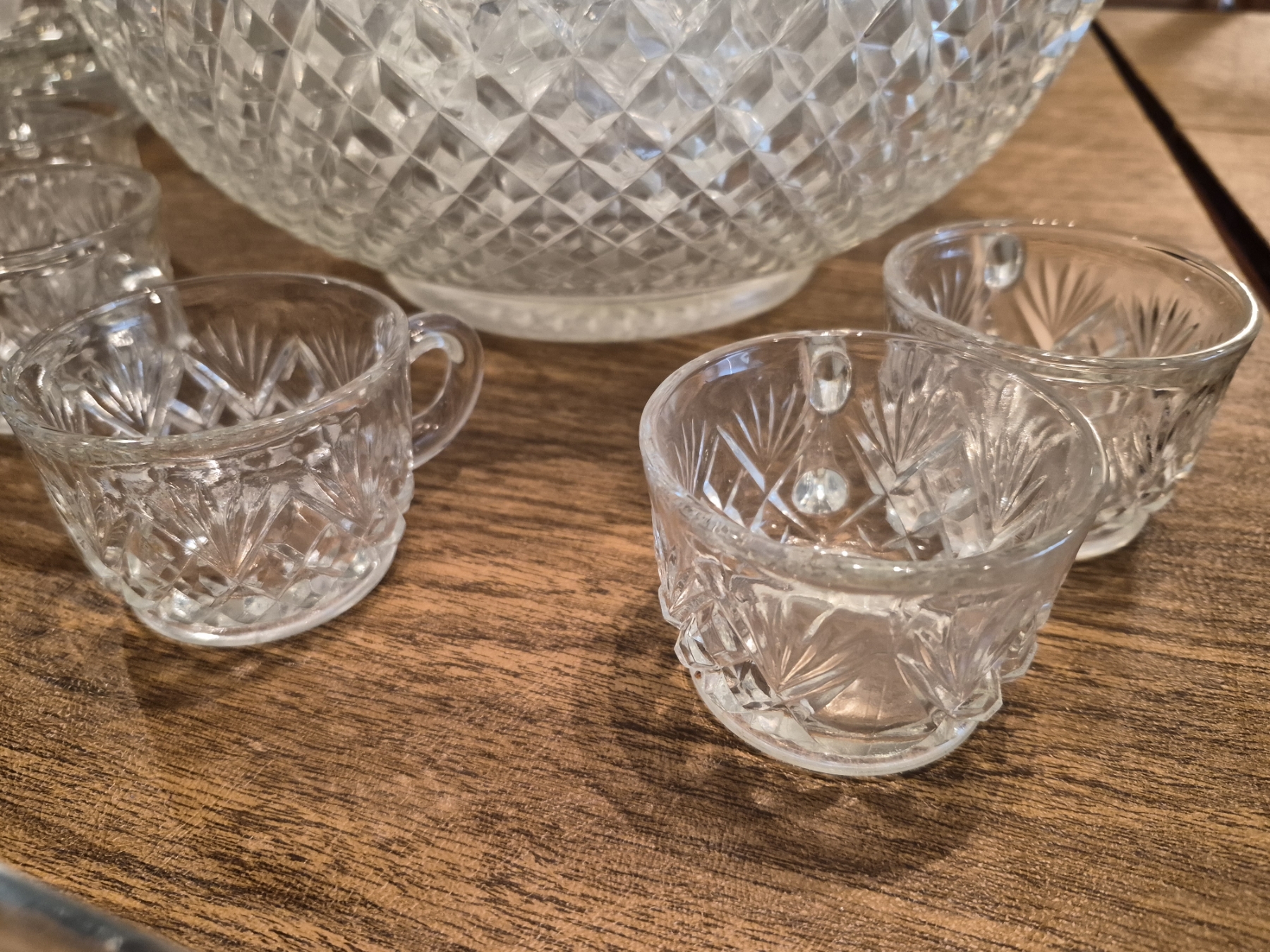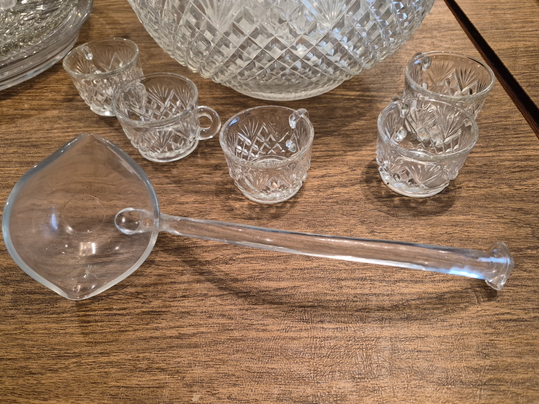 Vintage Pressed Glasss 14" Punch Bowl w 18 Cups & Ladel